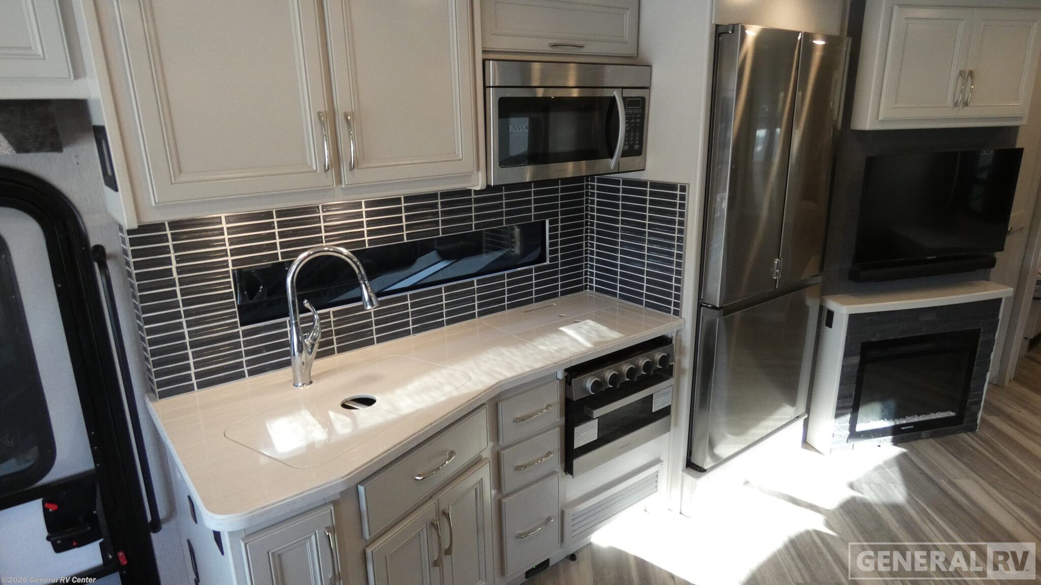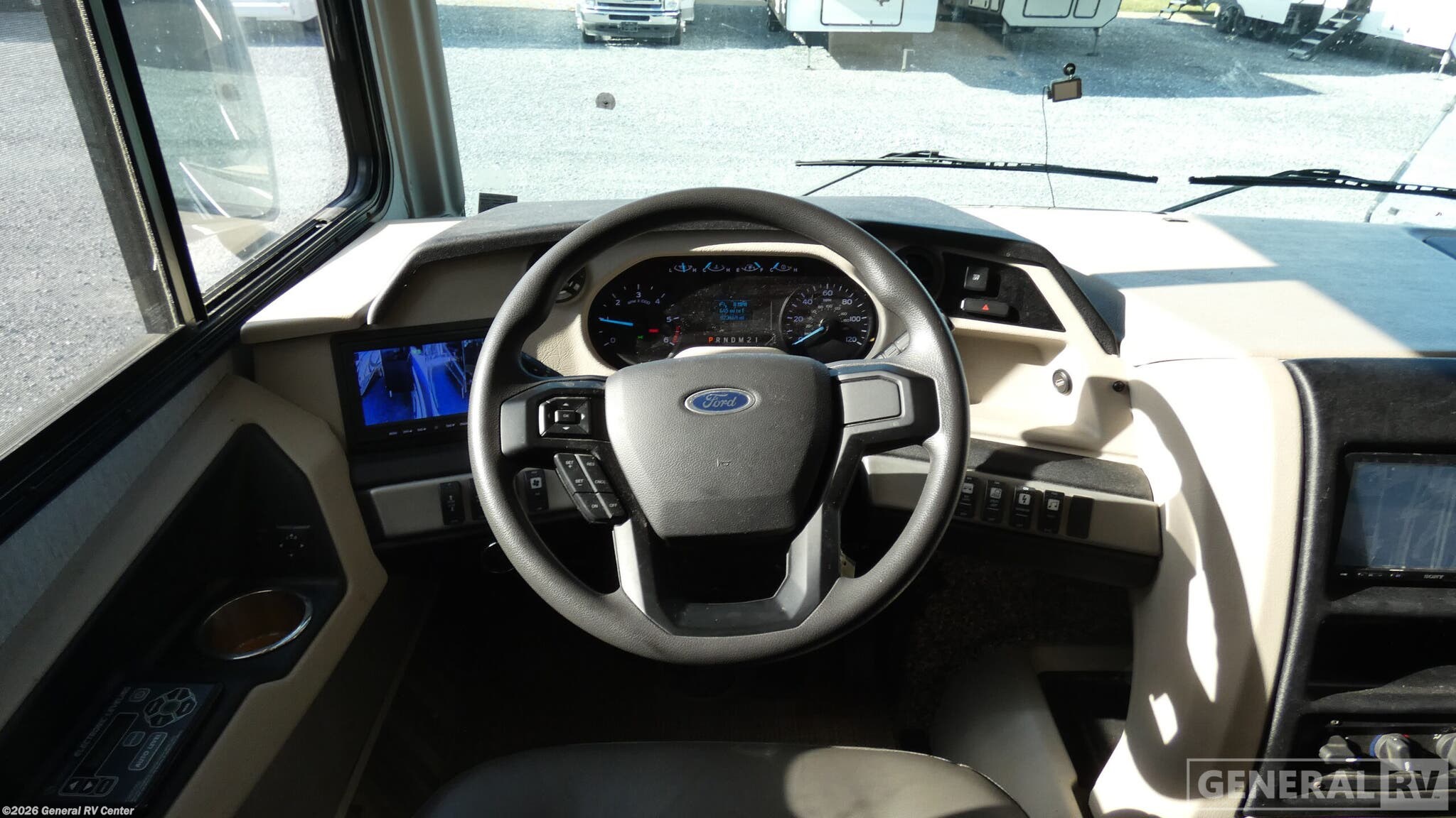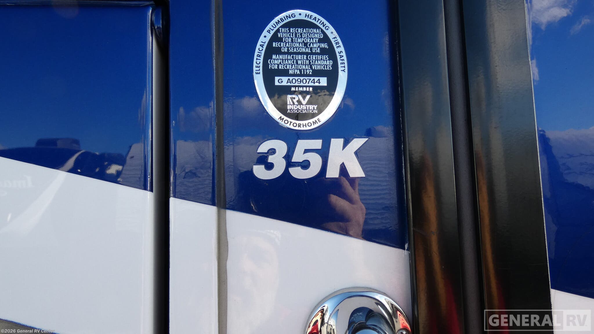 Step into the 2023 Fleetwood Bounder 35K and experience luxury on wheels. This RV is designed to accommodate up to eight guests, ensuring everyone has a place to rest with its queen and king beds, plus two convertible sleeping areas. The thoughtfully arranged floorplan features a front kitchen, center living area, and a rear/center bath, making it perfect for both entertaining and relaxation. The spacious interior is enhanced by two slides, expanding the living space for a more comfortable journey. The center living area is a true highlight, featuring a cozy fireplace and a jackknife sofa, perfectly complemented by the Rest EZ dinette. The residential refrigerator and convection microwave in the kitchen make meal prep a breeze, while the 3-burner cooktop offers versatility for all your culinary adventures. The full-size shower and dual lavatories provide convenience and luxury, making every trip feel like a home away from home. With a robust Ford F53 chassis, 350 horsepower, and an 8,000-pound towing capacity, this RV is not just about comfort—it's about capability. Visit your nearest General RV Dealership to explore this exceptional model in person.