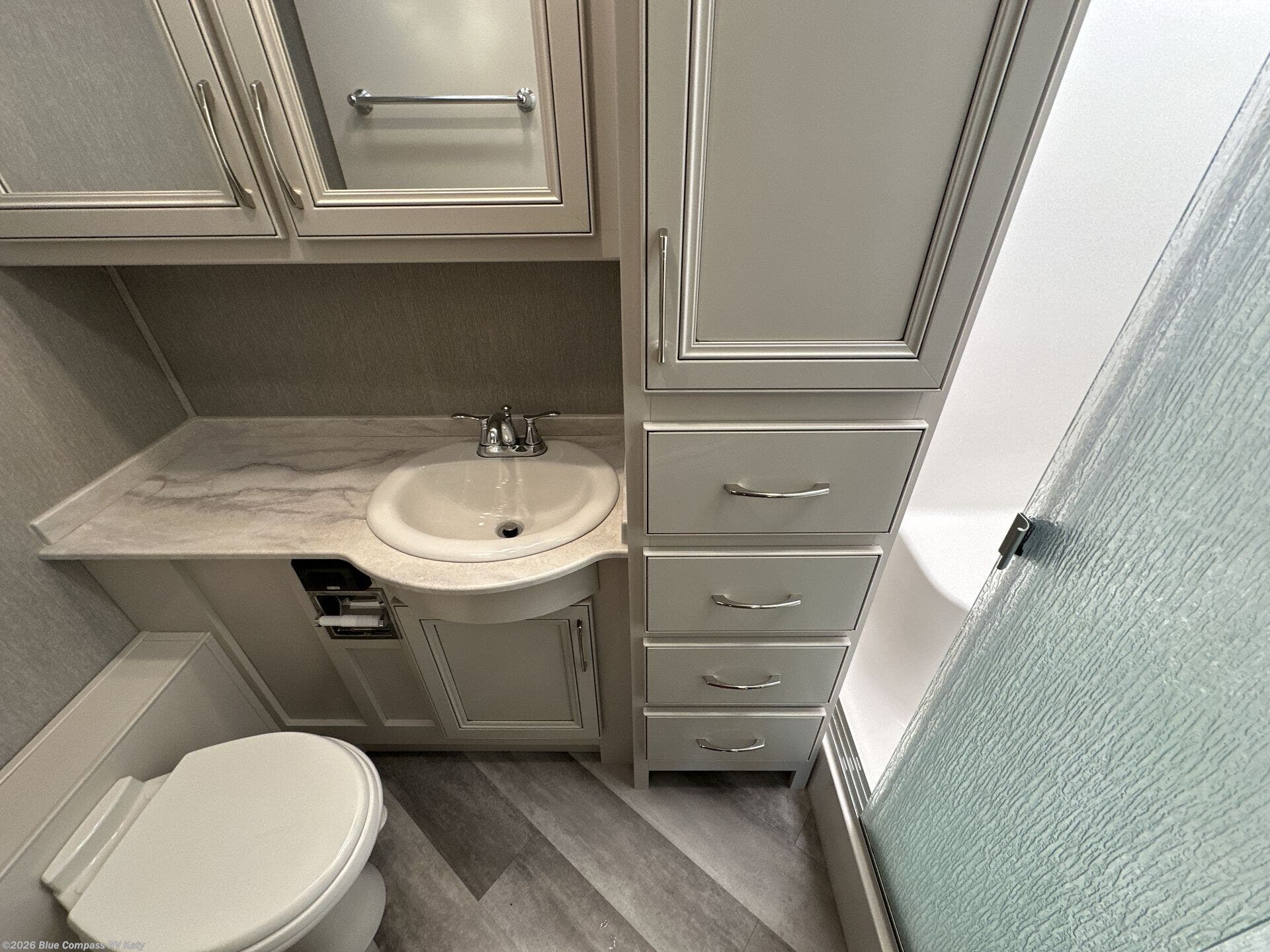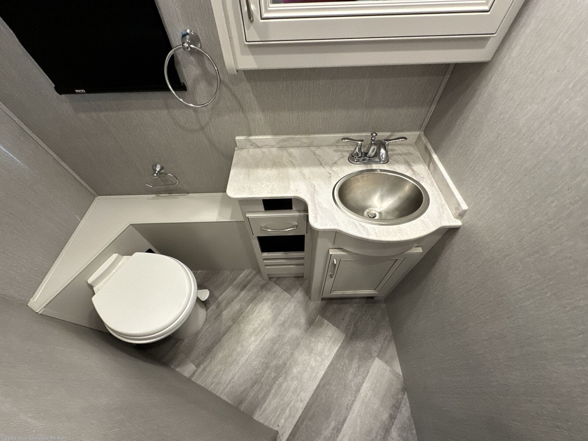 When you are ready to travel the countryside, this coach will get you there in comfort with luxury and residential features that you deserve. The driver and passenger will love the automotive style dash with color monitor and workstation, plus the pedestal table in between. Once you have setup for the evening, you might enjoy reclining back in the chairs or sitting on the jackknife sofa that offers guests a place to stay the night along with the rest EZ dinette and the optional Hide-A-Loft power drop-down overhead bunk if you added that feature. Your guests can use the mid-coach half bath while you have your own master suite with a king bed slide and storage, plus a full rear bathroom all to yourself.