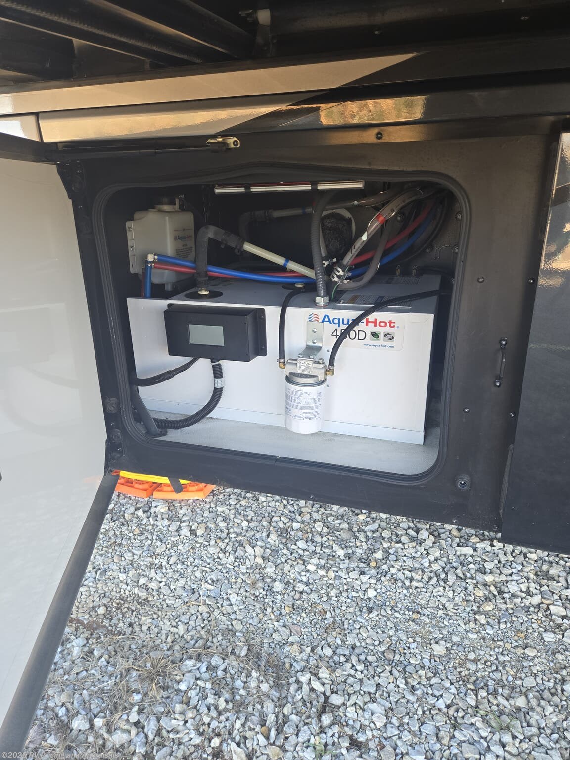 - · Heated, hand-laid porcelain tile throughout with Aquahot 400D for unlimited hot water and interior heat (no propane needed)