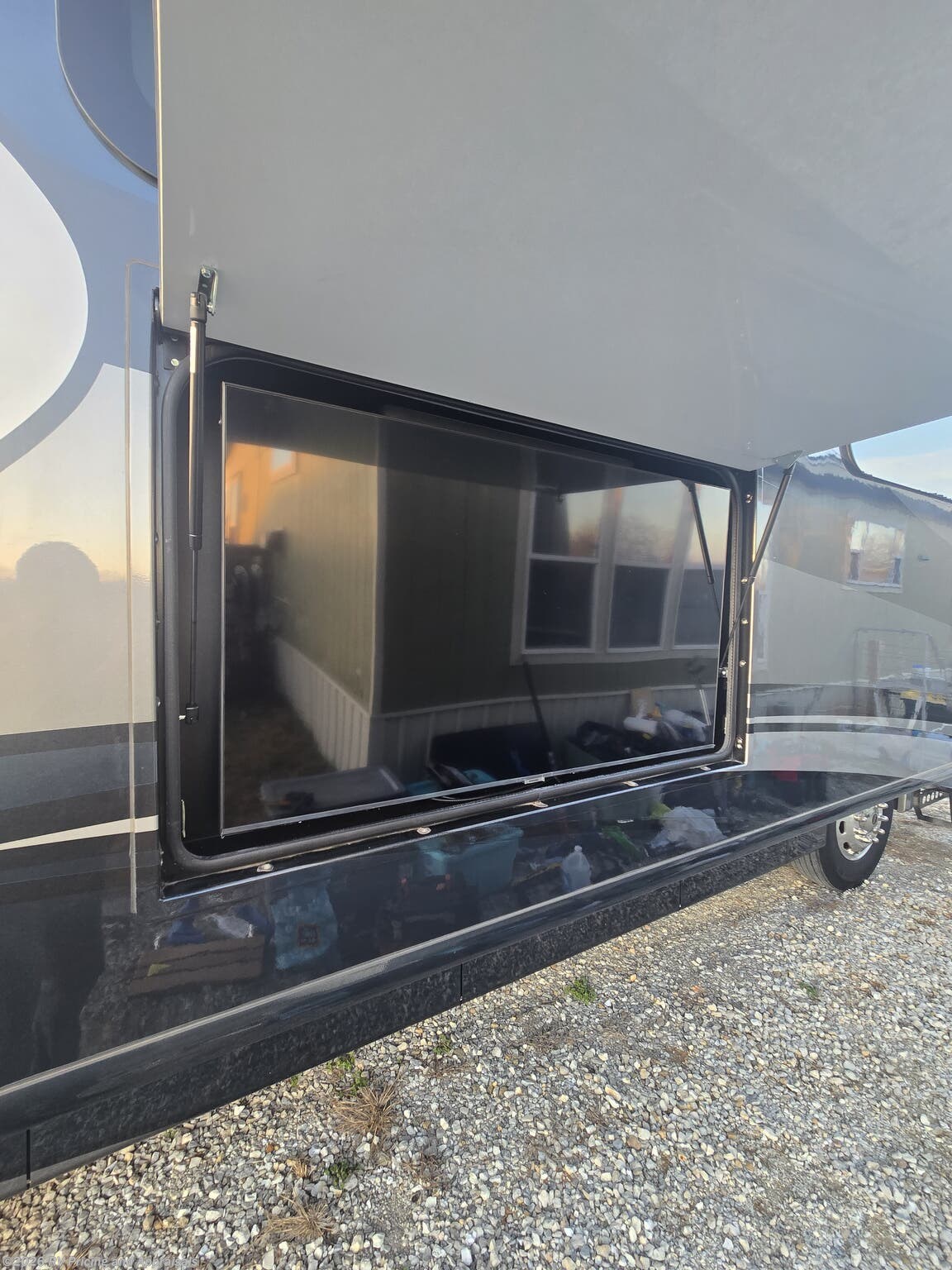 - Exterior entertainment area for tailgating or camp-side gatherings