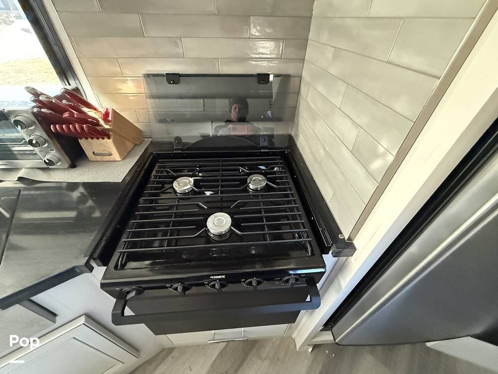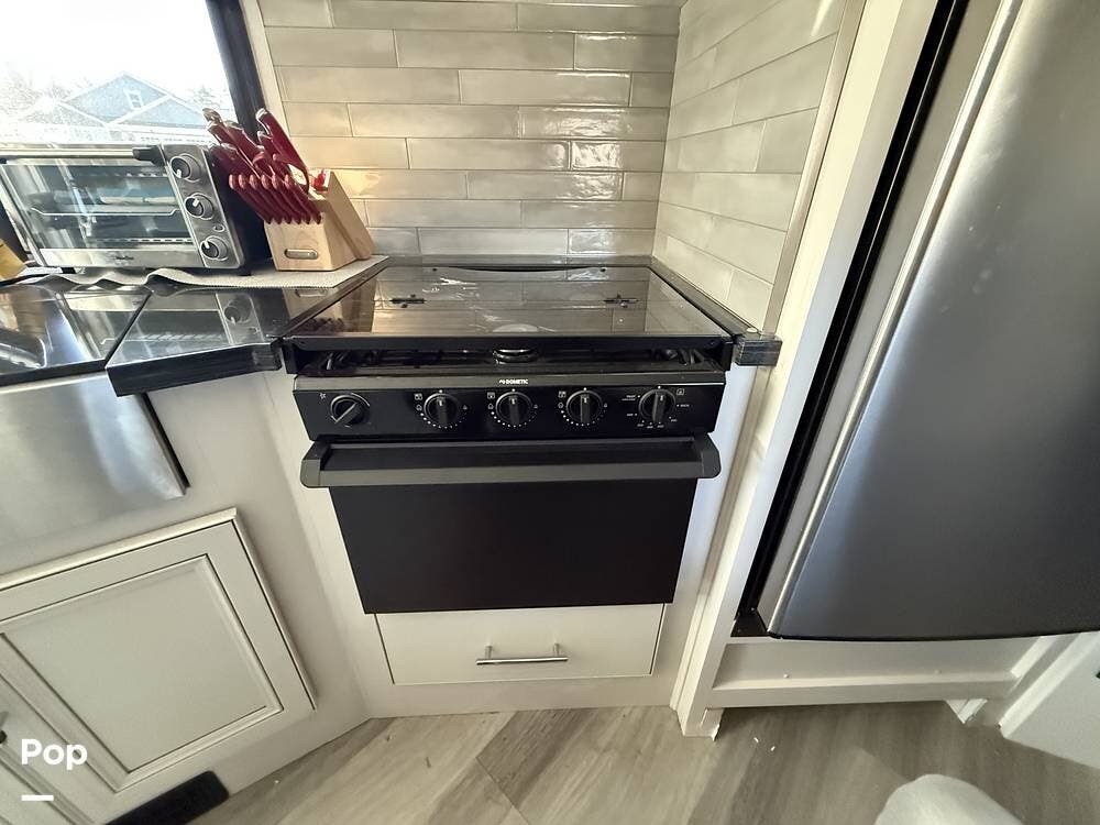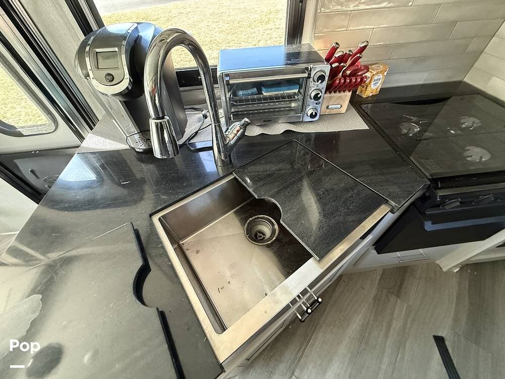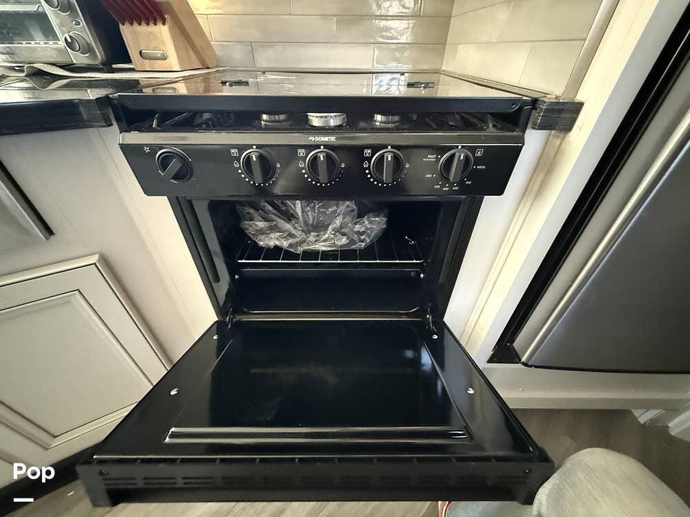 With two slides, the unit feels very spacious. The well-appointed kitchen blends seamlessly with the living area, featuring dinette theatre seating.