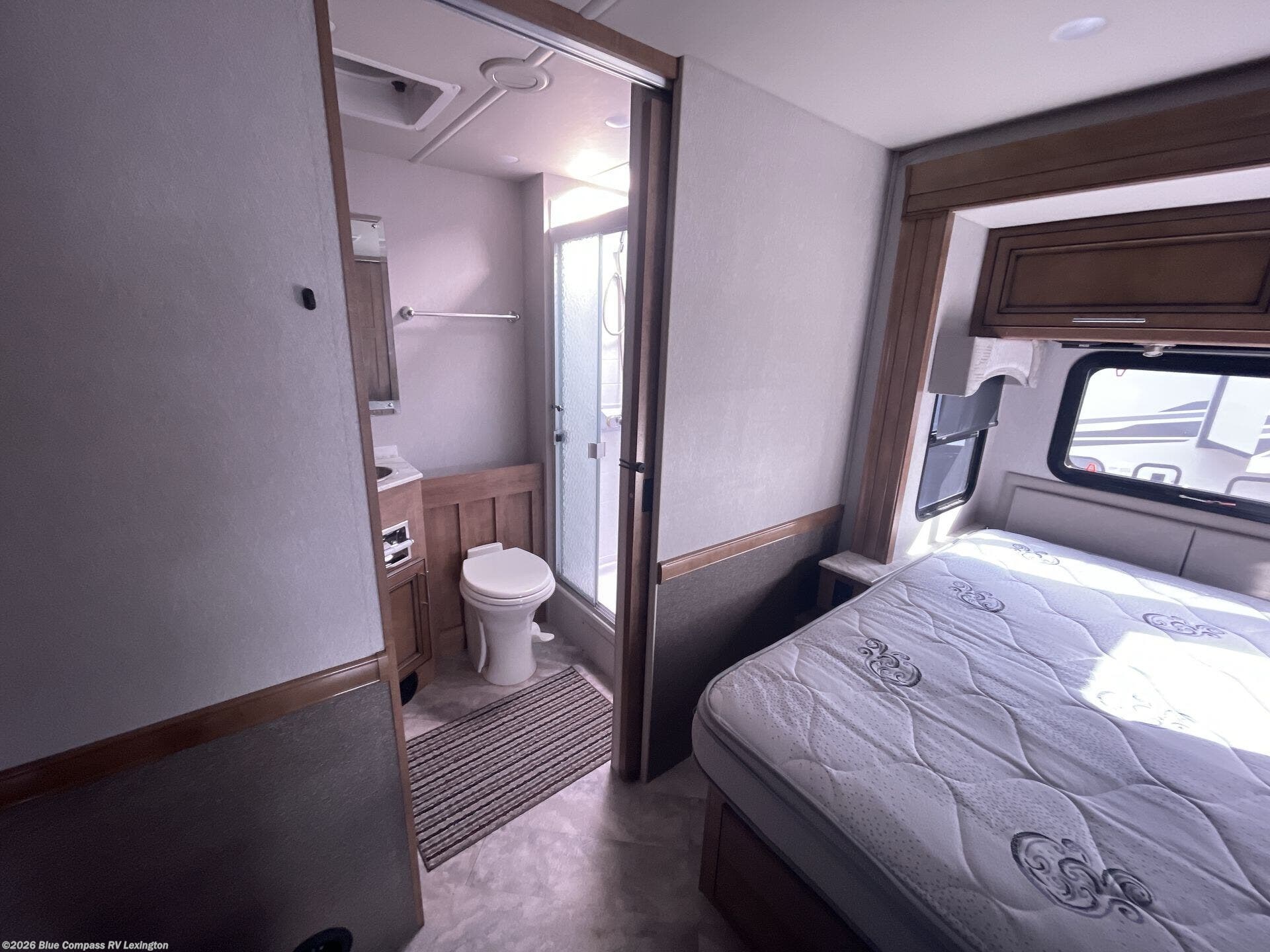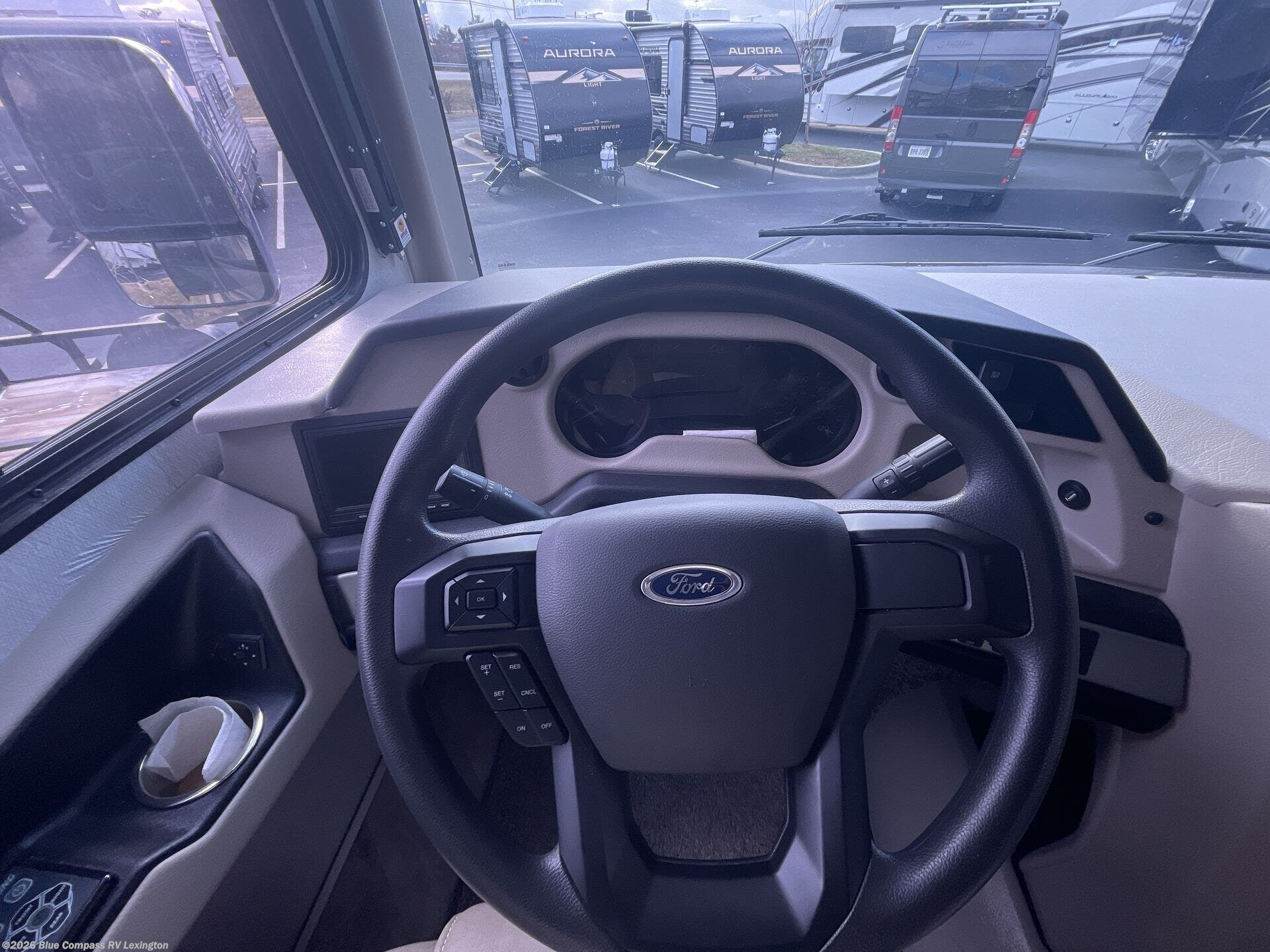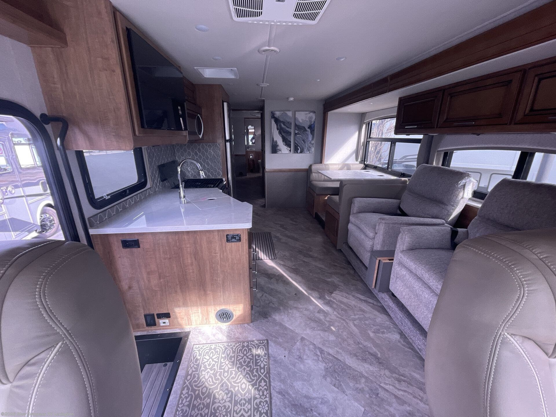 The Fleetwood Fortis Class A gas motorhome is a powerhouse of luxury and convenience, and it also is quite literally a powerhouse with its Ford 7.3L V8 350HP engine with 468 LB/FT of torque. The construction includes a Dryseal edge coating for all ceilings, walls, and floor, and the Powerlock System 2 has interlocking walls to the roof for stability. Automatic hydraulic leveling jacks make the set-up process easier, and the cab has excellent features, like a 9" stereo with AM/FM/Bluetooth, backup camera, reclining/swivel cab seats, driver/passenger center table, and an automotive-style dash with dual monitors and workstation. You will find vinyl tile flooring all throughout the interior, as well as full-extension drawer guides with latches, coordinating window treatments, and energy-efficient LED flush-mount ceiling lighting.