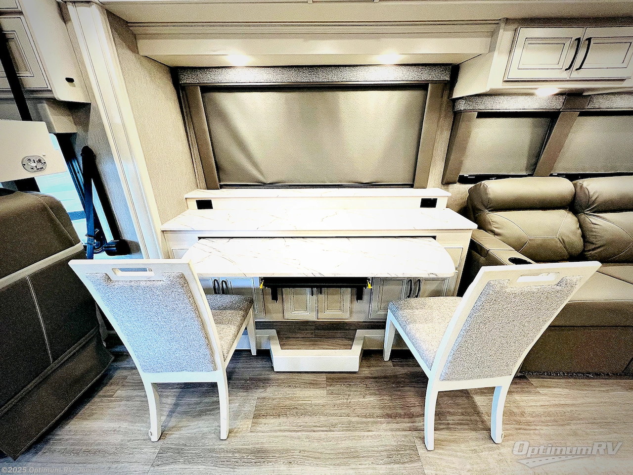 Whether you decide to travel with family or to see friends while you work along the way, this coach offers triple slide outs giving everyone plenty of space to relax, work, or sleep as well as have fun entertaining other RVers. The master suite offers a walk-around Encore Series king bed with double wardrobes/dressers and an LED TV plus a rear full bathroom including a large 50" x 28" shower with a seat. The kids or your guests will have a half bath conveniently located mid-coach. In the main living area you all can watch the LED TV with a cozy fireplace below while sitting on the sofa with two theater seats and the Adap-table dinette and breakfast bar which you might decide to work from as well. And the cook will have full amenities including a convection microwave and residential refrigerator to keep everyone fed. There are several options to choose from to customize your Frontier such as adding a side-by-side washer/dryer, a Hide-A-Loft drop down bunk with LED TV, a central vacuum system, and/or the King Universal Stationary Satellite, plus more!