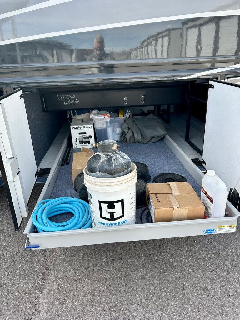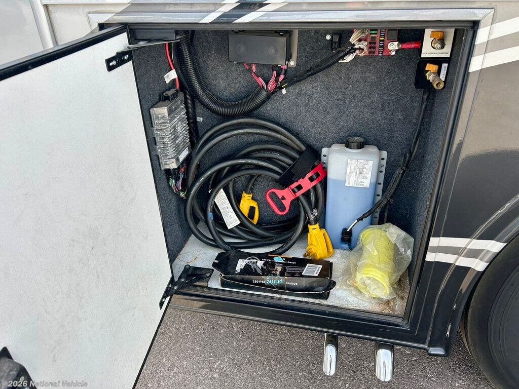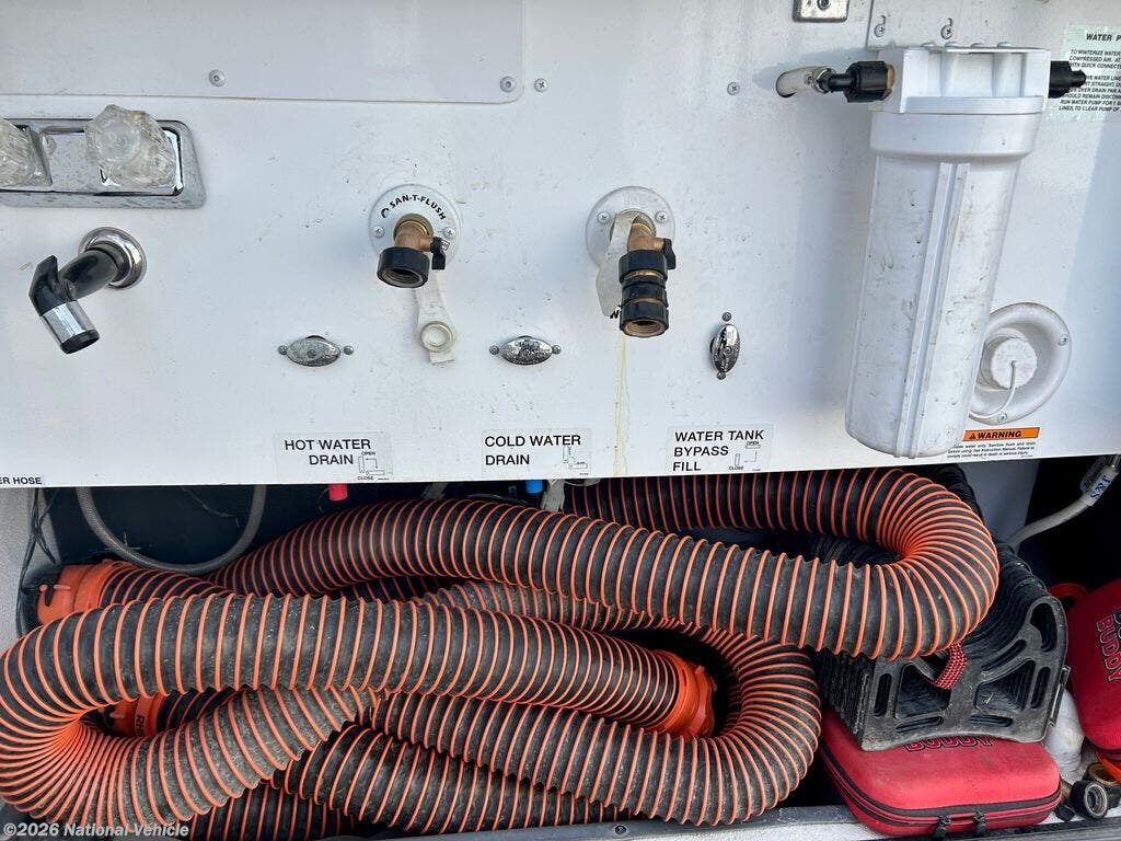 Southwire 3490 Surge Protector with a Lifetime Guarantee, Tire pressure gage, 25 ft of sewer hose, fresh and toilet water hoses, 25 ft heated hose, leveler support tubs, upgraded pads for the leveling jacks with snap pads, 25 ft power cord extension, paint kit from the factory all included!
