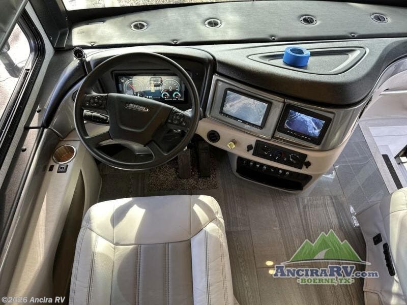 The Fleetwood RV Frontier GTX Class A diesel motorhome is built on a Freightliner custom chassis featuring V-Ride technology and a Freedom Sport foundation. The Cummins 6.7L diesel engine provides plenty of power to get you where you need to go. An exterior service station includes an exterior shower, city water hookup, water pump switch, and towel holder. No matter where you go, you'll stay connected with the Wifi Ranger Sky 4 Pro plus cellular booster.