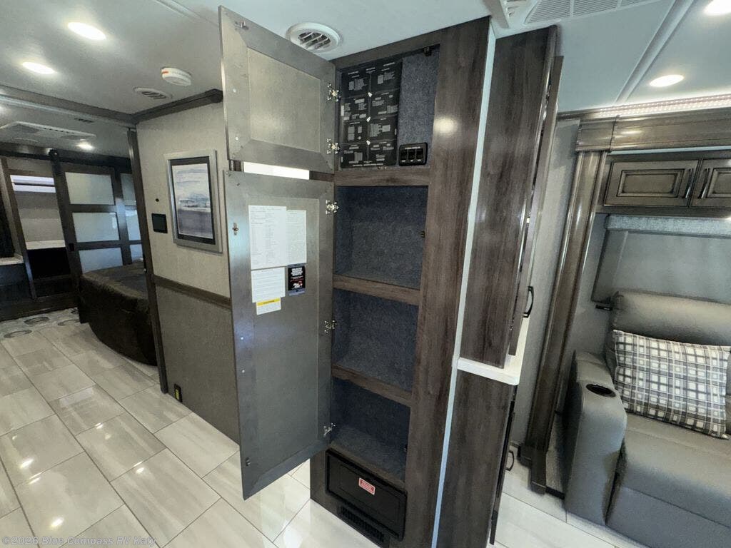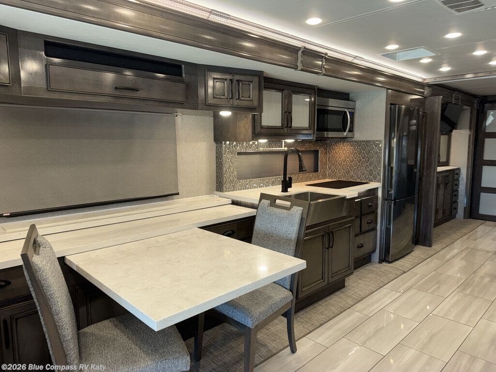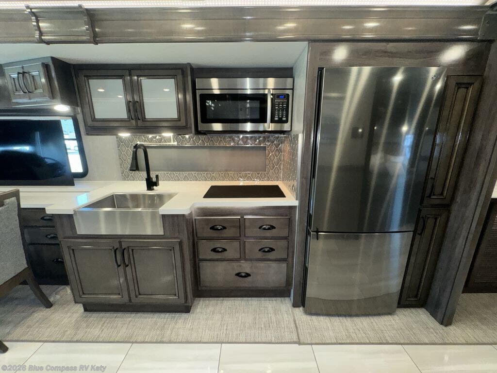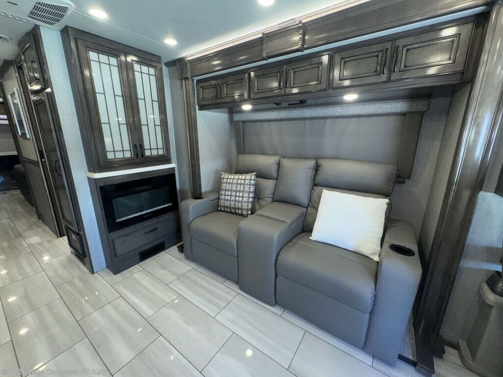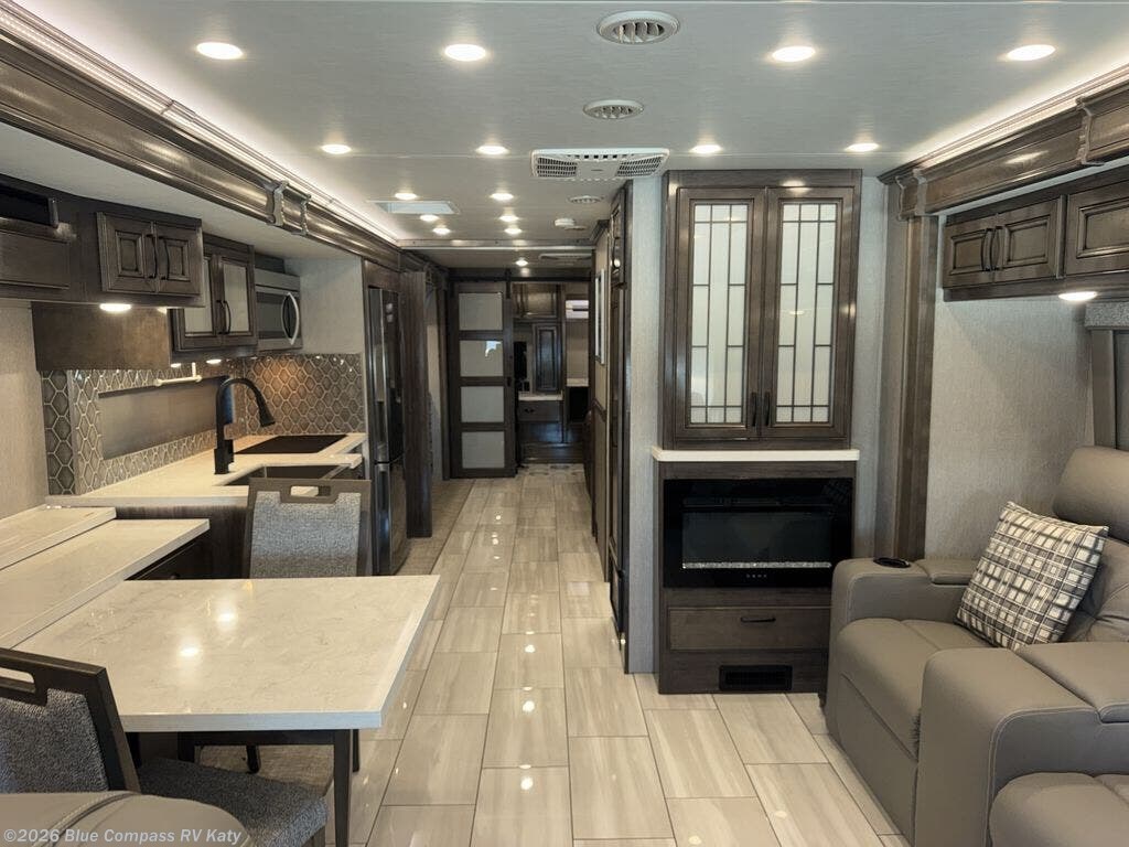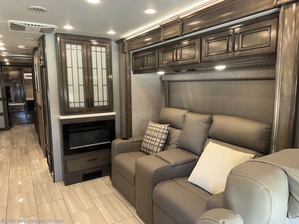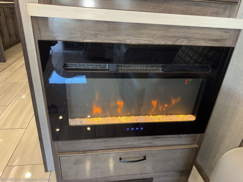 So much room to relax in this coach with triple slides! A spacious front living area offers a cozy fireplace with a sofa sleeper with queen mattress plus a Dream Dinette. Mid-coach you'll find a full bath with shower across from a well-equipped kitchen with a residential refrigerator, convection microwave, induction cooktop, and a pantry to hold all of your supplies. At night you'll sleep well on the king bed, with dedicated CPAP storage overhead. Bedroom storage abounds with a dresser unit with overhead storage plus an LED TV. This model comes standard with a rear walk-in closet with tons of storage, two dressers, a bench, and a pull-out hamper, all behind sliding doors.
