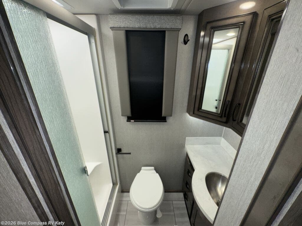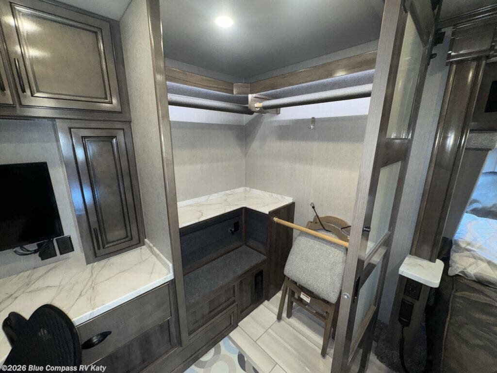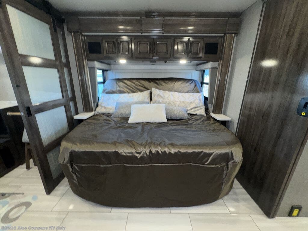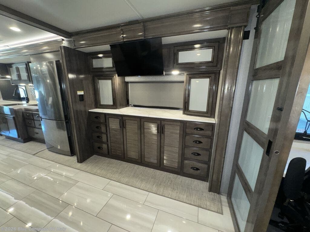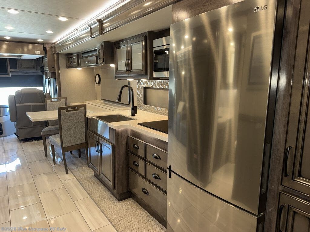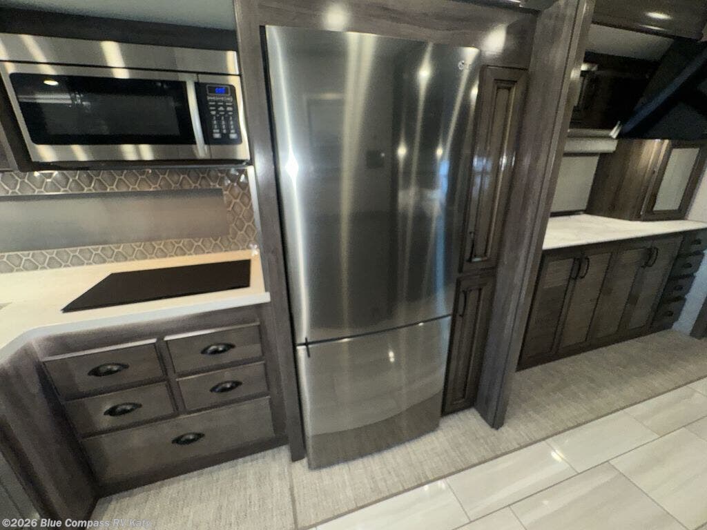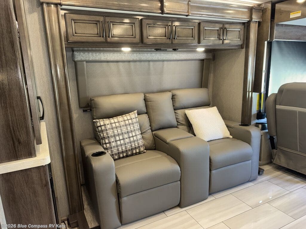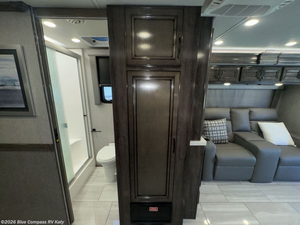 So much room to relax in this coach with triple slides! A spacious front living area offers a cozy fireplace with a sofa sleeper with queen mattress plus a Dream Dinette. Mid-coach you'll find a full bath with shower across from a well-equipped kitchen with a residential refrigerator, convection microwave, induction cooktop, and a pantry to hold all of your supplies. At night you'll sleep well on the king bed, with dedicated CPAP storage overhead. Bedroom storage abounds with a dresser unit with overhead storage plus an LED TV. This model comes standard with a rear walk-in closet with tons of storage, two dressers, a bench, and a pull-out hamper, all behind sliding doors.
