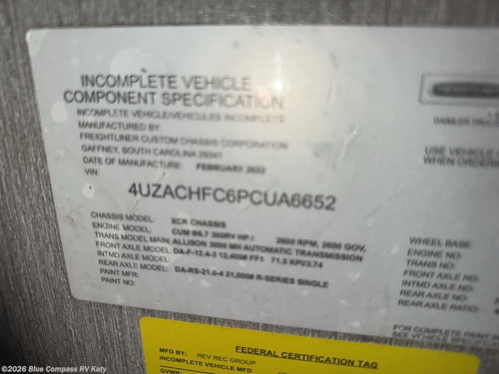 The Fleetwood RV Frontier GTX Class A diesel motorhome is built on a Freightliner custom chassis featuring V-Ride technology and a Freedom Sport foundation. The Cummins 6.7L diesel engine provides plenty of power to get you where you need to go. An exterior service station includes an exterior shower, city water hookup, water pump switch, and towel holder. The full coverage heavy duty undercoating, the vacu-bond aluminum framed constructed sidewalls, roof, and floor, and the painted steel frame chassis construction is sure to hold up for years to come. Heads will turn down the highway when they see the premium gel exterior Vetrosina fiberglass skin. Come find your favorite one today!