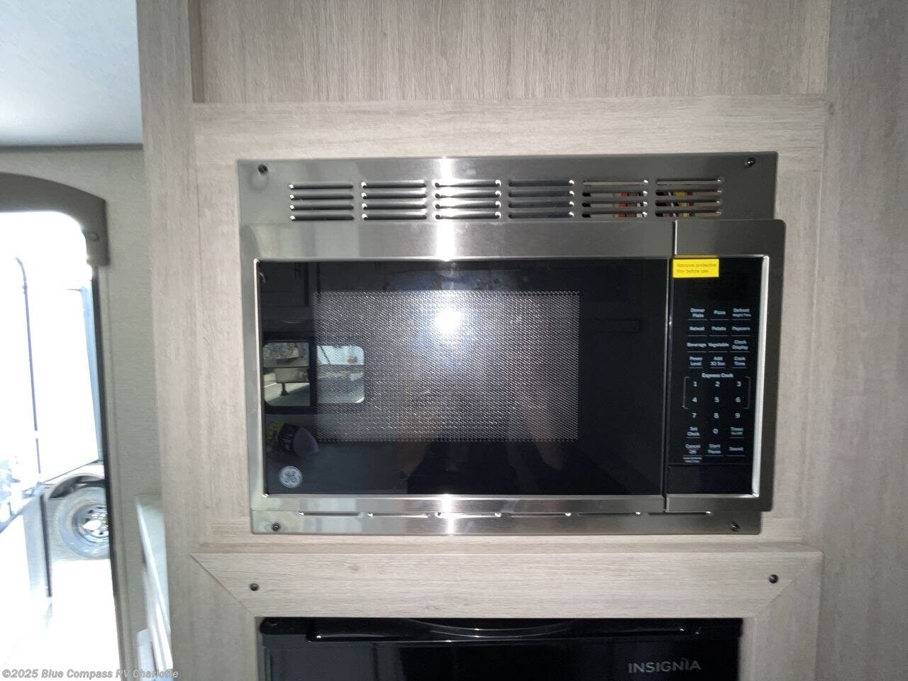 This value price point Aurora Light allows you versatility as you camp! You can sleep comfortably each night on the Murphy bed up front, then fold it away in the morning to relax on the sofa. There are dual nightstands for your things, plus overhead storage. This Aurora kitchen includes a 12V 10 cu. ft. refrigerator, a two burner cooktop, plus a microwave oven to easily make meals each day, and the full rear bath will come in handy after a day at the lake. After dinner, relax on the sofa, or head outdoors to relax under the 10' awning!