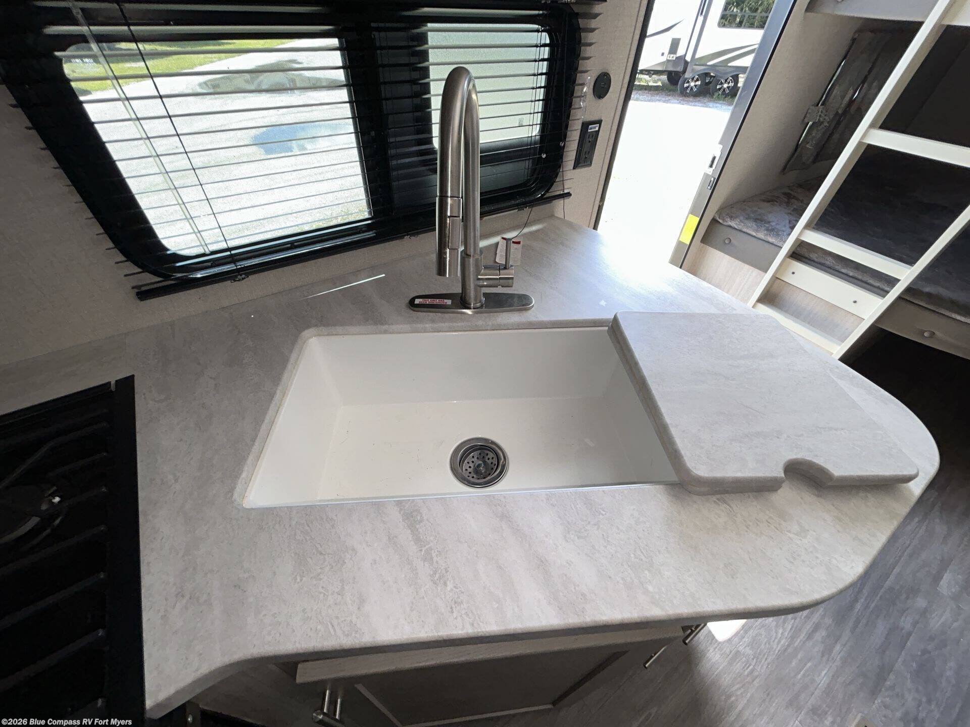 Comfortability, usability, and quality is what you will find in each one of these Forest River Aurora travel trailers or toy haulers! They are designed with a superior build and packed full with industry leading, functional, and distinctive standard features. SolidStep entrance steps and an XL swing arm grab handle help you to safely enter and exit the unit. The diamond plate rock guard will protect your unit from road debris and the nitrogen filled radial tires, which keep their pressure longer, offer better fuel economy. You will also find upgraded JBL Elite exterior speakers outside, a Carefree awning with multicolor lights and remote, plus flush mount baggage doors for easy packing. The interiors are beautifully designed with a deep undermount farm style sink, stainless steel appliances, and linoleum flooring throughout which will be easy to clean. Come find your favorite model today!
