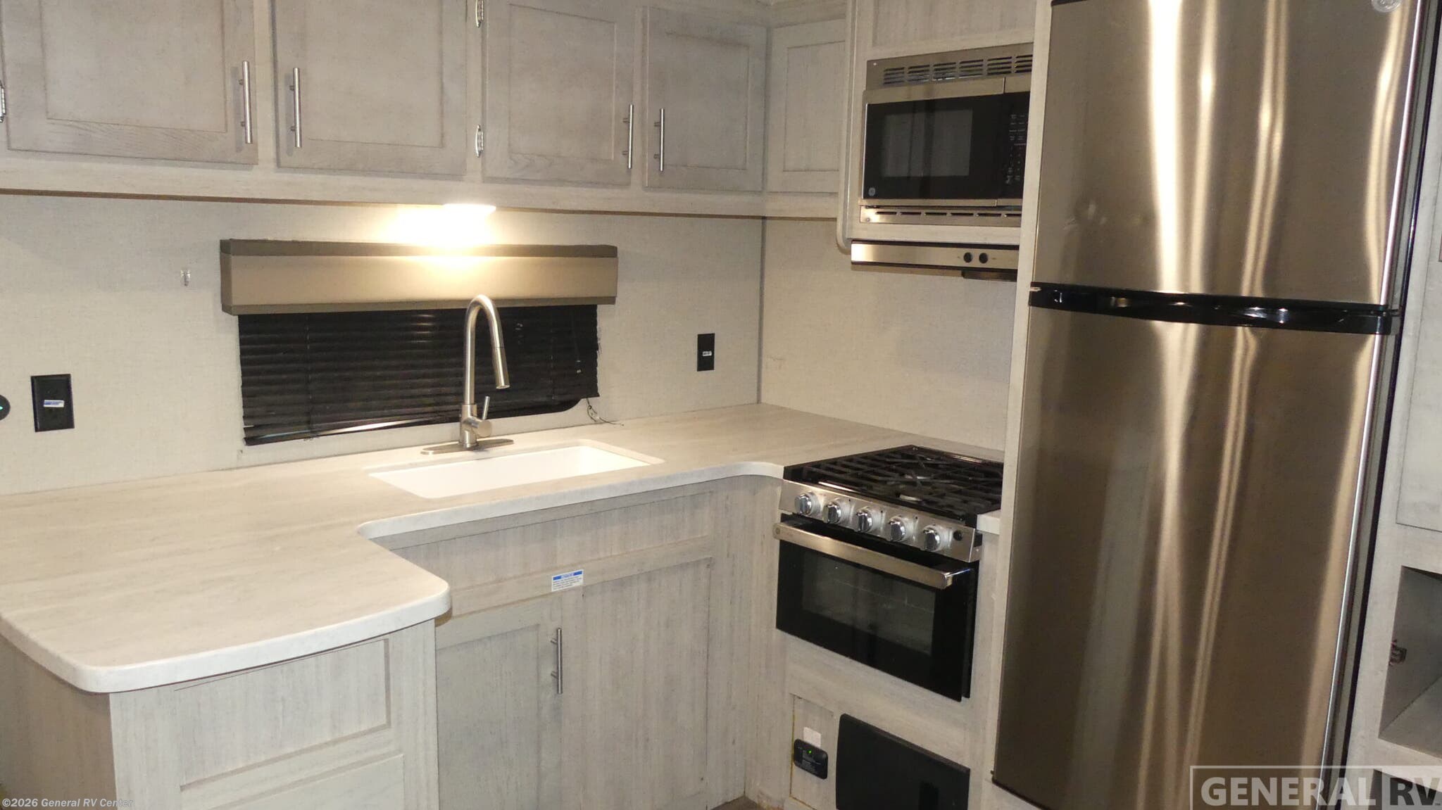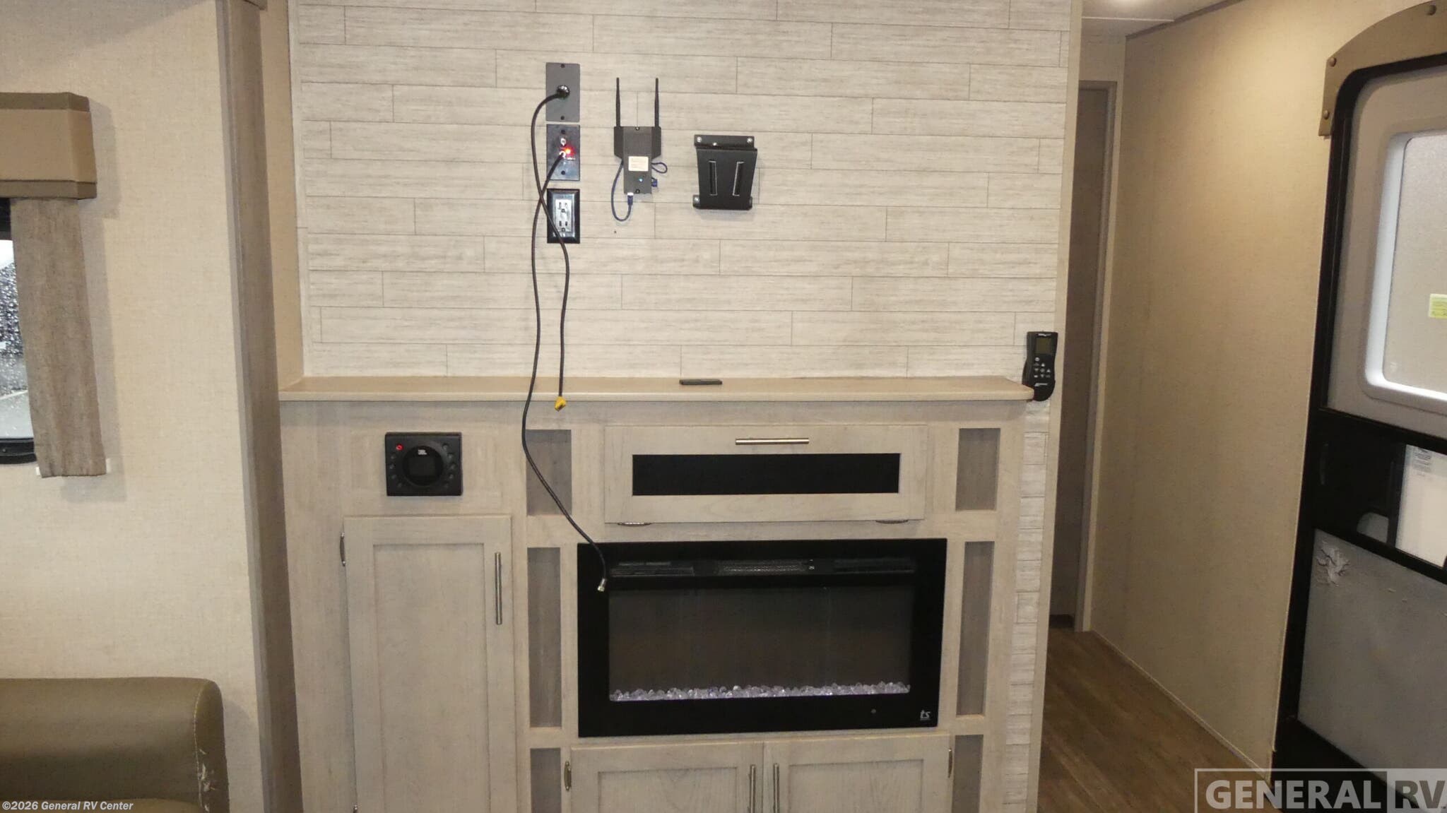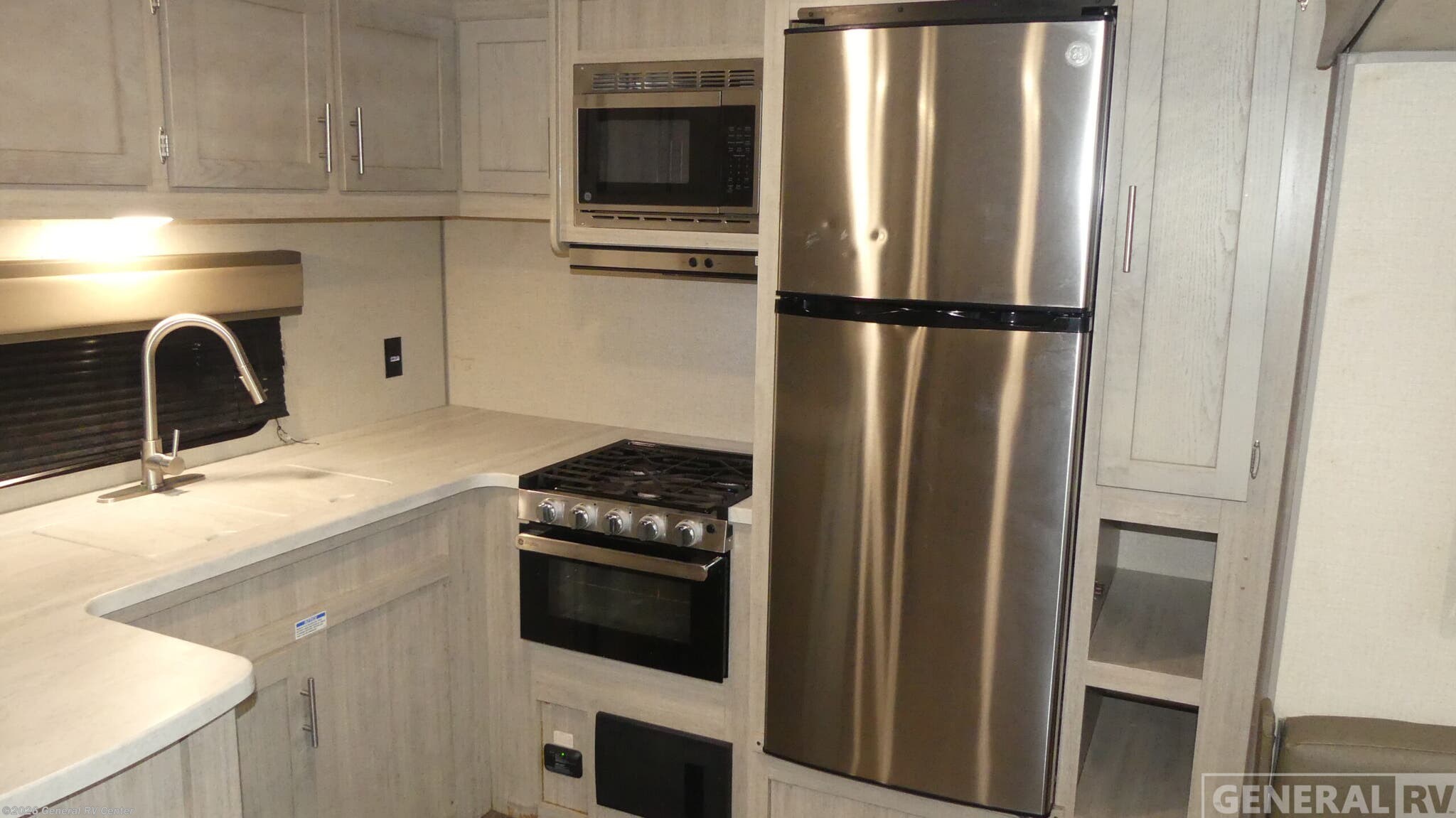 Forest River Aurora Sky Series travel trailer 310KDS highlights: Rear Kitchen Two Fireplaces RV Queen Bed Outside Mini Fridge Pass-Through Storage Outside Shower Smooth Fiberglass Siding The chef will love cooking in the rear kitchen of this travel trailer! You will feel right at home in the front private bedroom with the RV queen bed slide across from the entertainment center and fireplace, and the front closet. There is also a second fireplace and entertainment center in the living area in between the recliner lounge chair and the jiffy sofa with an arm rest/cupholder. Stay clean and fresh with a 36" x 30" shower pan including an overhead skylight which brings in more natural lighting as you get ready in the full bathroom. An 18' Carefree awning has multicolor lights for you to choose your favorite color as you enjoy a refreshing beverage from the mini fridge! Comfortability, usability, and quality is what you will find in each one of these Forest River Aurora Sky Series travel trailers! They are designed with a superior build and packed full with industry leading, functional, and distinctive standard features. SolidStep entrance steps and an XL swing arm grab handle help you to safely enter and exit the unit. The diamond plate rock guard will protect your unit from road debris and the nitrogen filled radial tires, which keep their pressure longer, offer better fuel economy. You will also find upgraded JBL Elite exterior speakers outside, a Carefree awning with multicolor lights and remote, plus flush mount baggage doors for easy packing. The interiors are beautifully designed with a deep undermount farm style sink, stainless steel appliances, and linoleum flooring throughout which will be easy to clean. Come find your favorite model today!