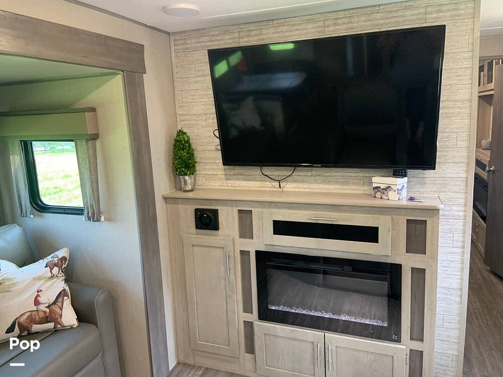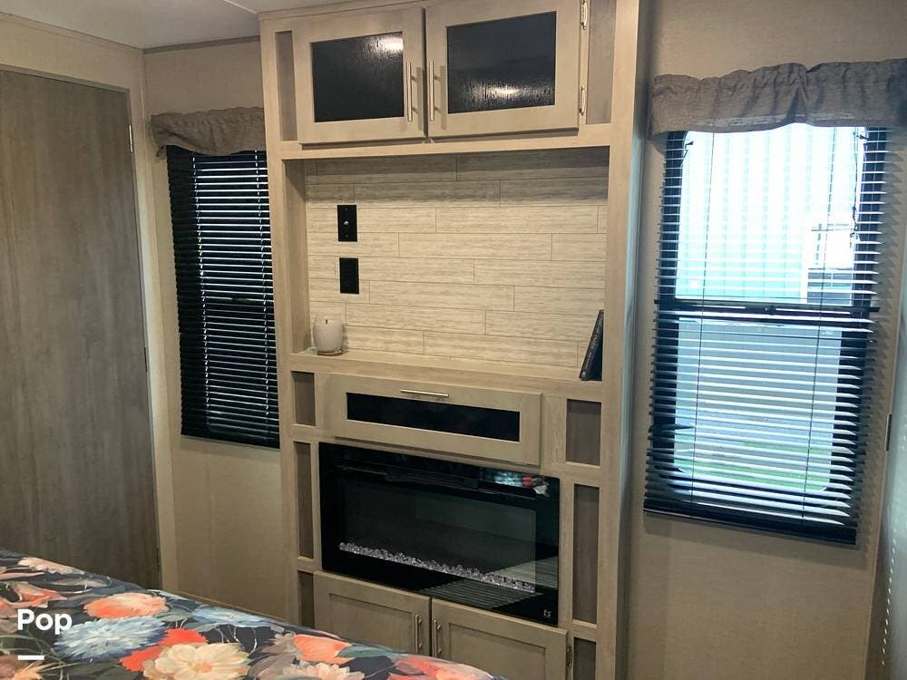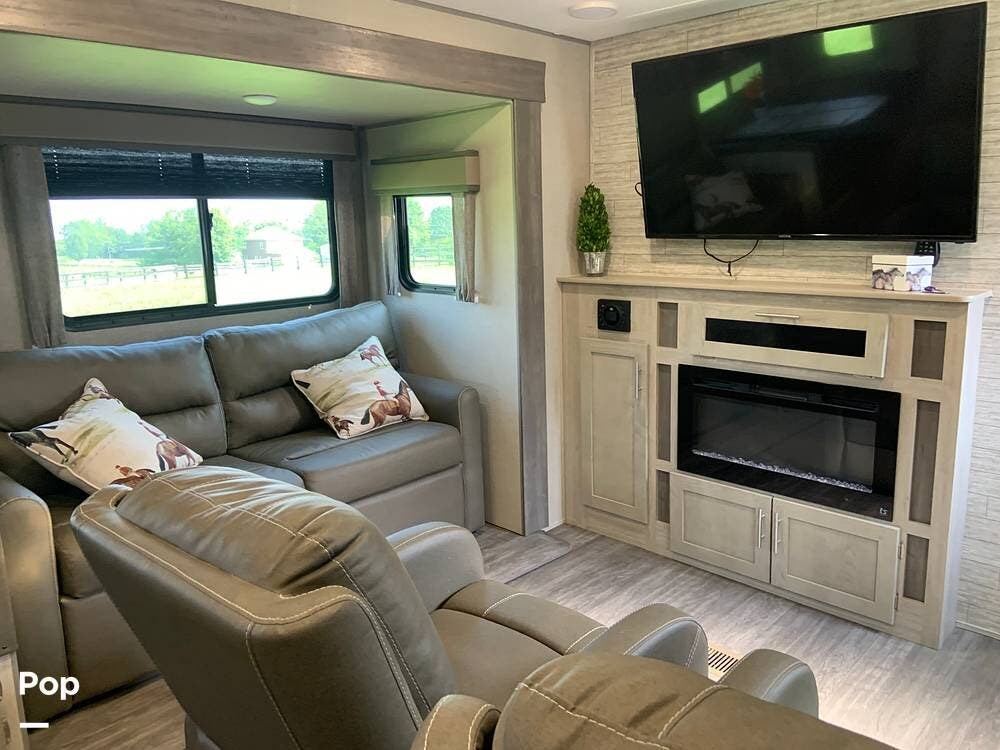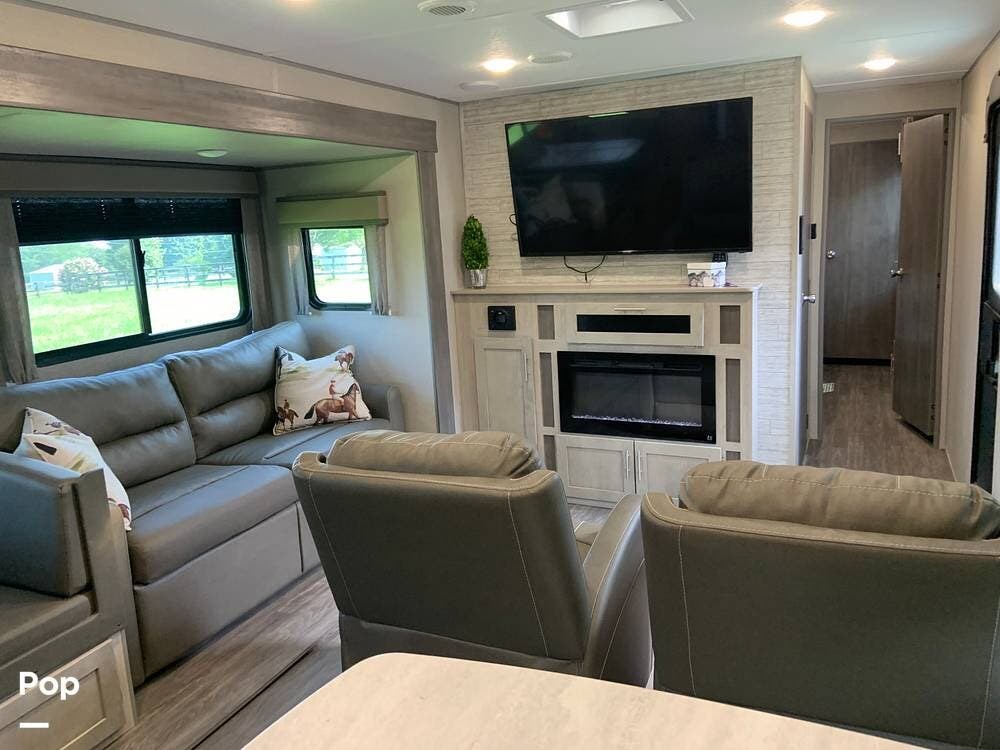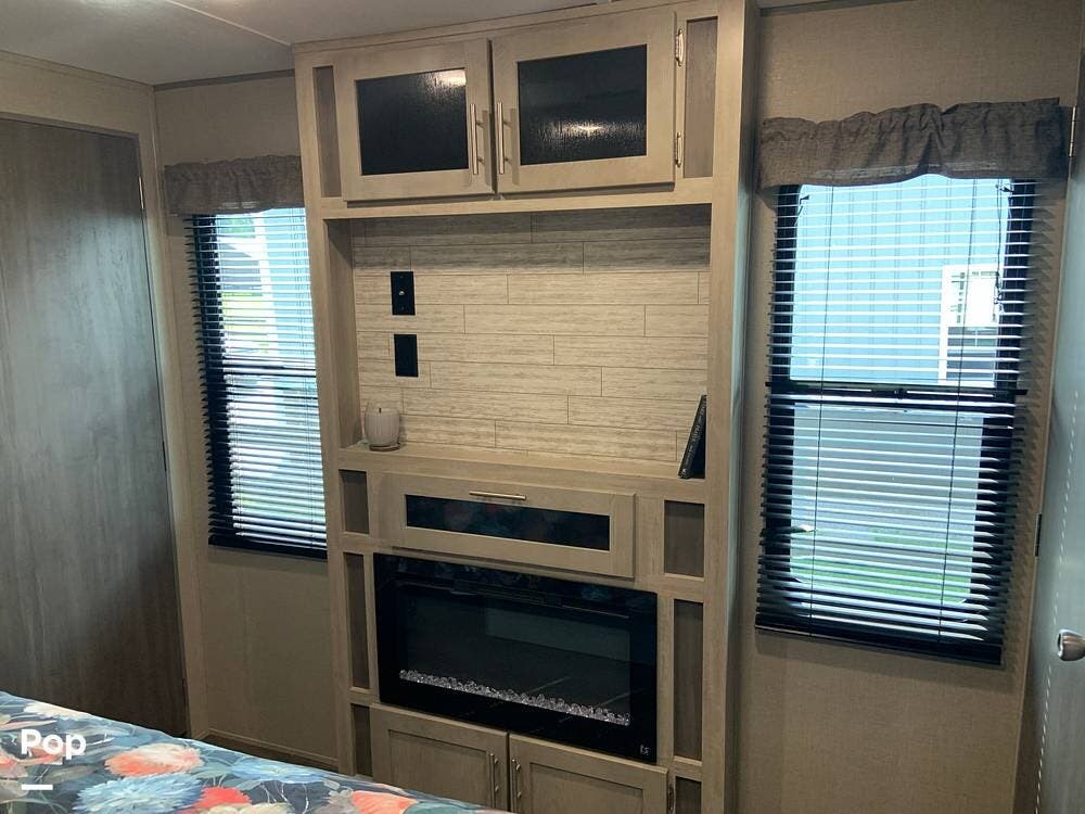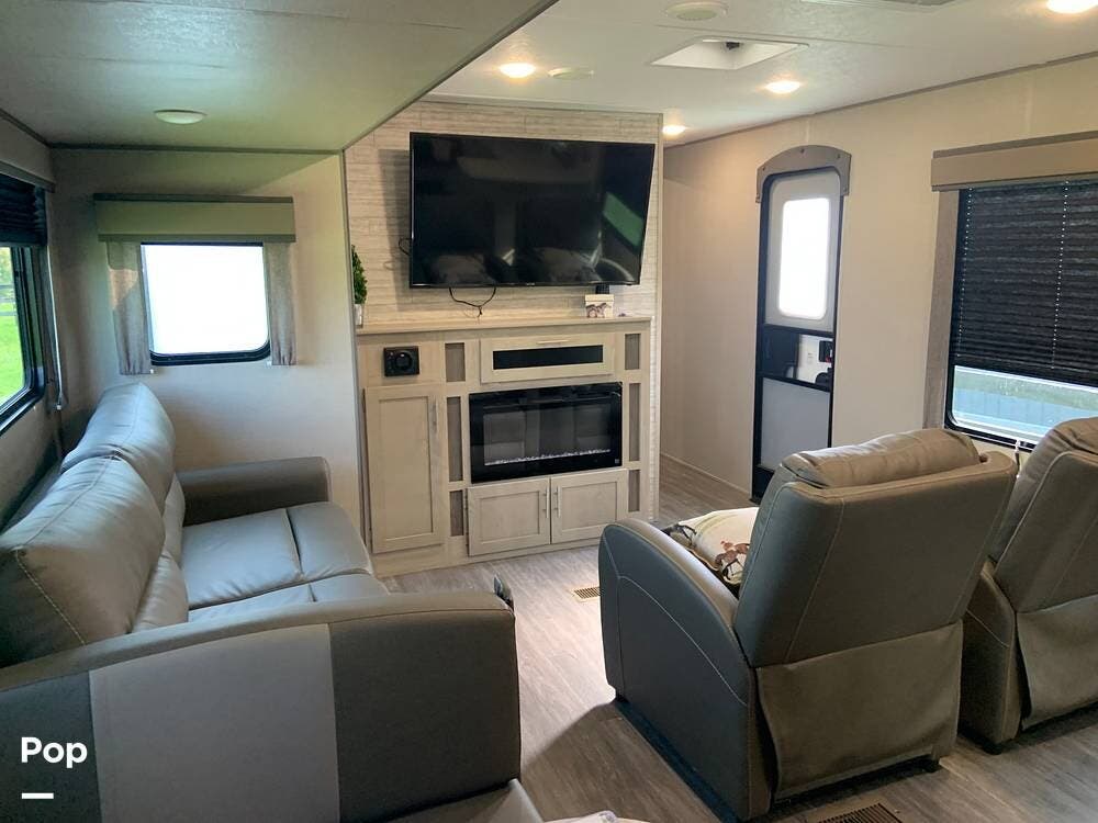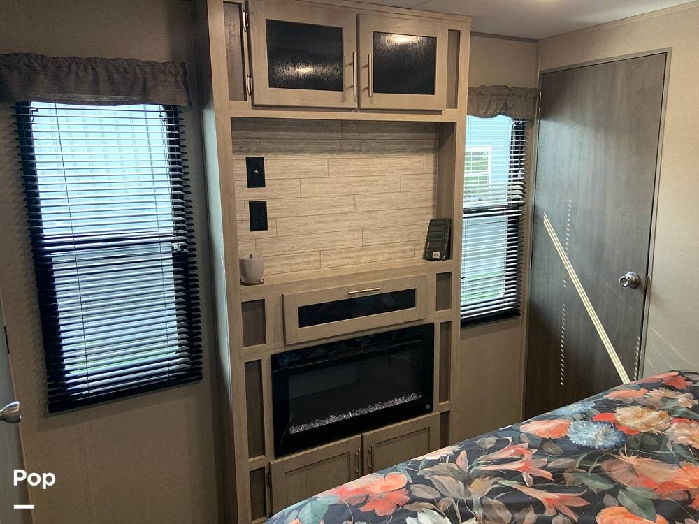 This very lightly used 310KDS will delight with its light, bright, and spacious interior featuring a rear kitchen floorplan, a queen master, two fireplaces, and an exterior kitchen.
