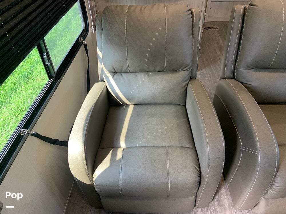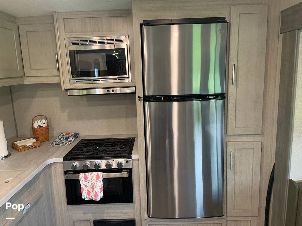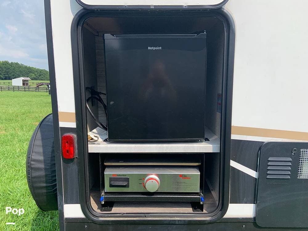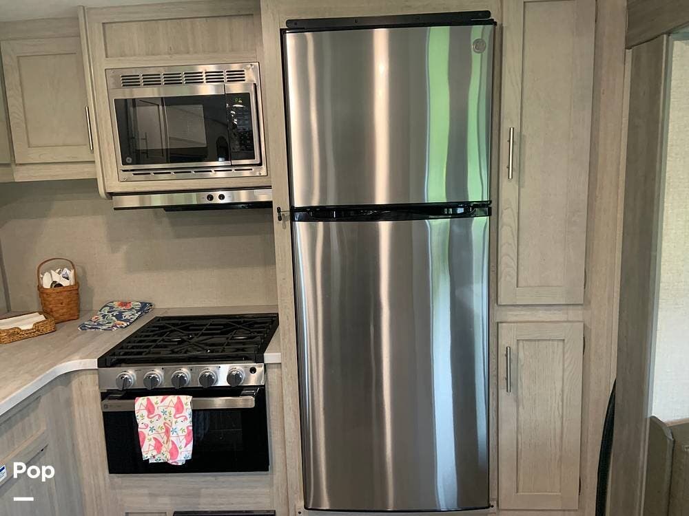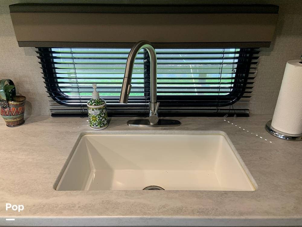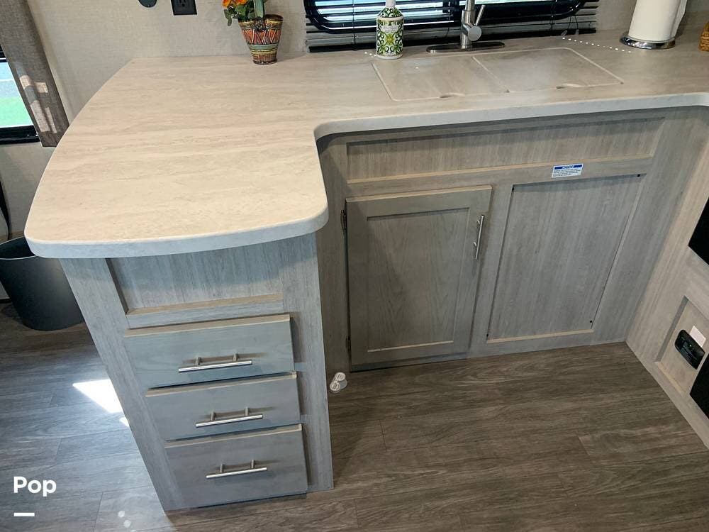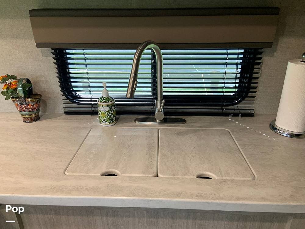 This very lightly used 310KDS will delight with its light, bright, and spacious interior featuring a rear kitchen floorplan, a queen master, two fireplaces, and an exterior kitchen.