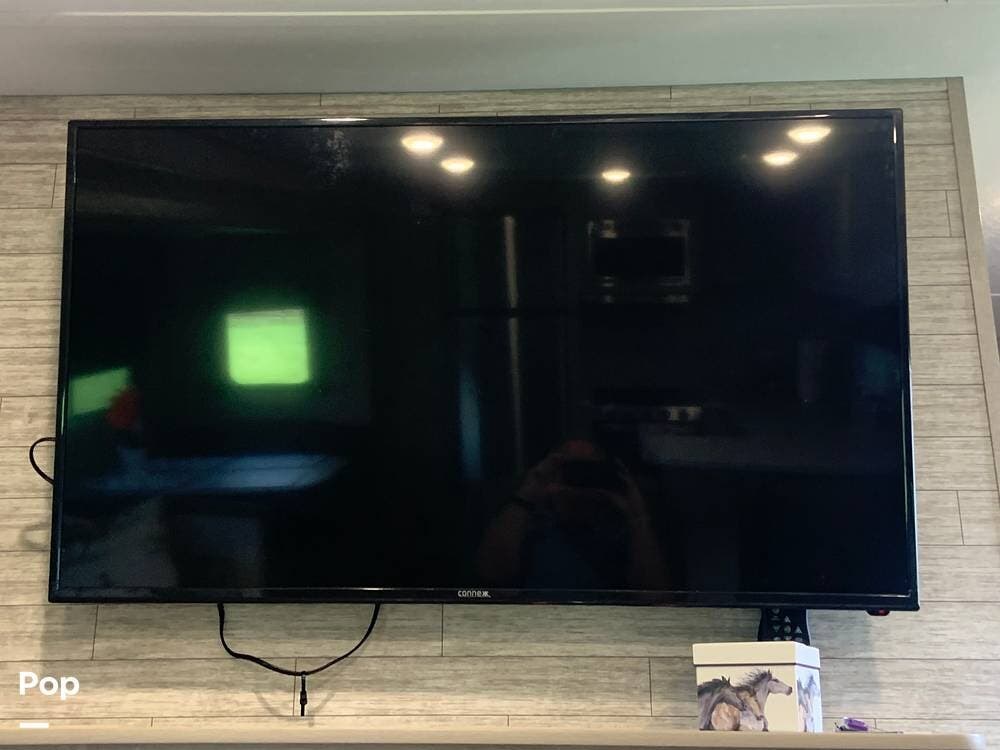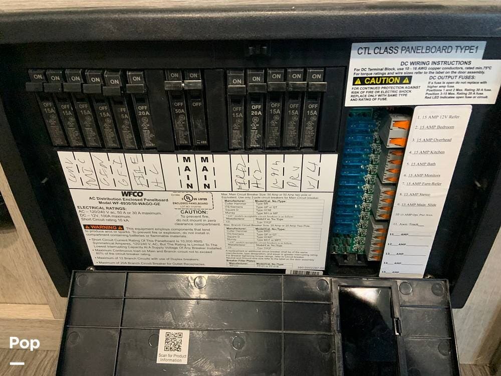 The camper is equipped with a 50-amp electrical service and features two AC units and central heat to ensure your comfort.