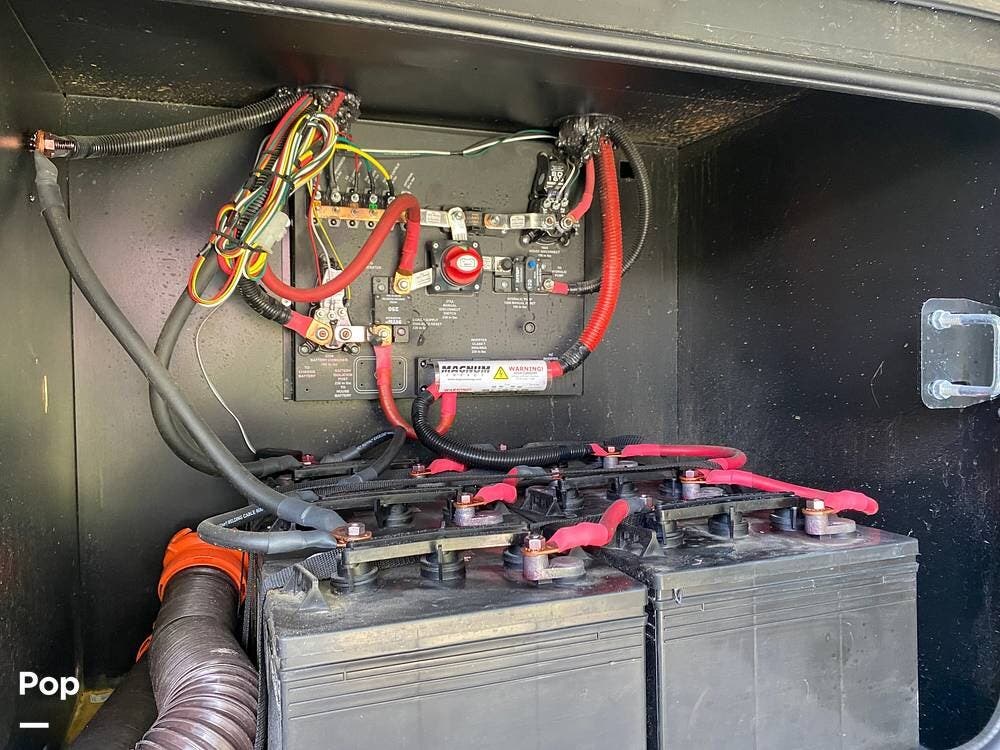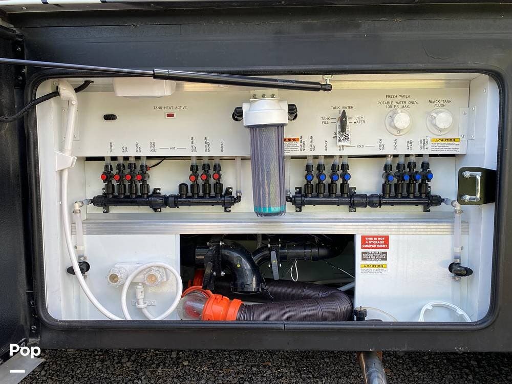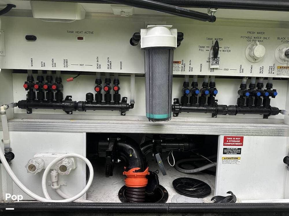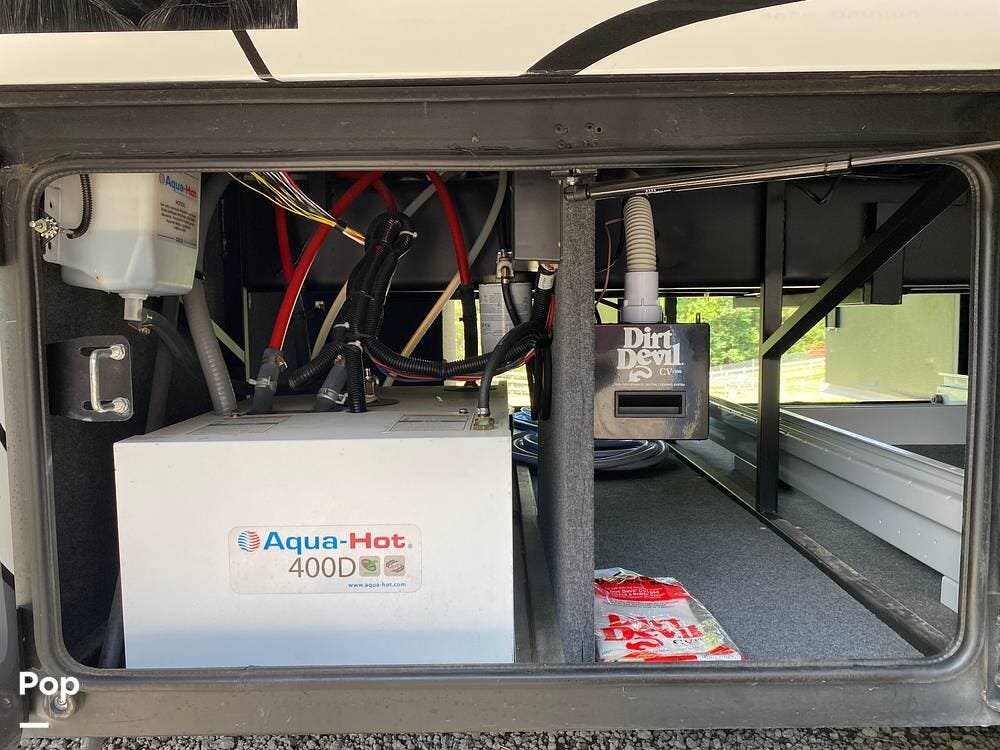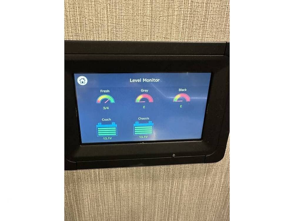 This Berkshire is an all-electric house. No propane is required; the 10.0kW generator powers the coach and its three air conditioning units while away from plug-in access. This unit also includes an Aqua Hot water heating system.