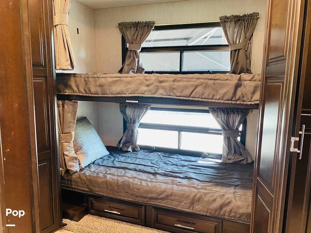Bring the whole family or enjoy the extra space and storage for yourselves. This Berkshire sleeps up to 10 with a private bedroom suite, a drop-down bed over the driver, a dinette sleeper, bunks, and a sleeper sofa.
