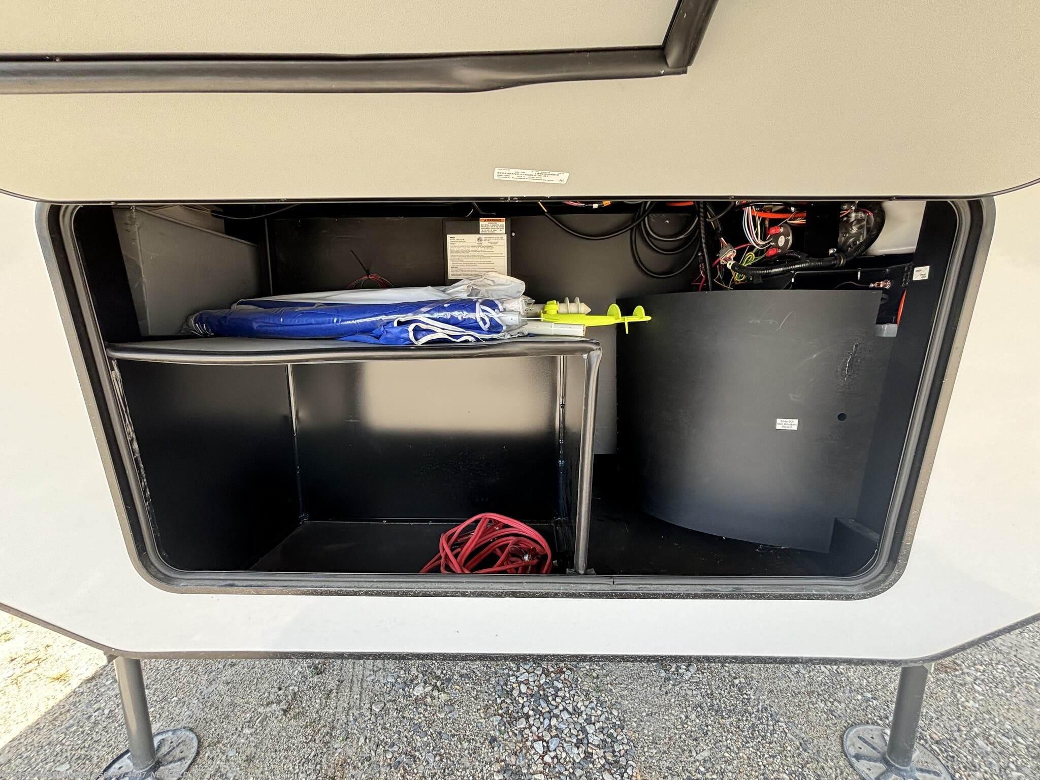 Awning, Exterior Speakers, External Shower, Ladder, Leveling Jacks, Power Roof Vent, Skylight, Slideout -