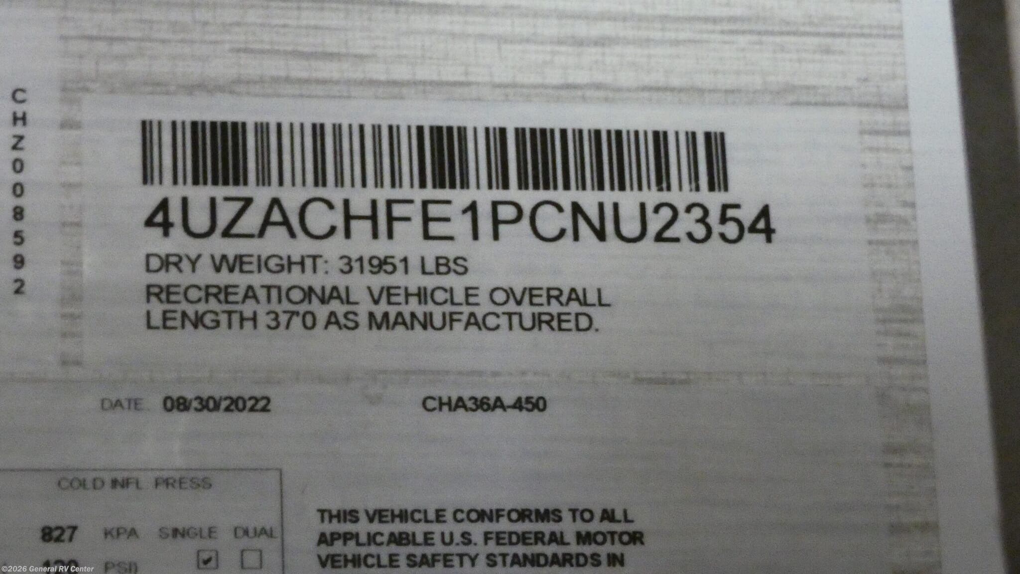 - VIN4UZACHFE1PCNU2354