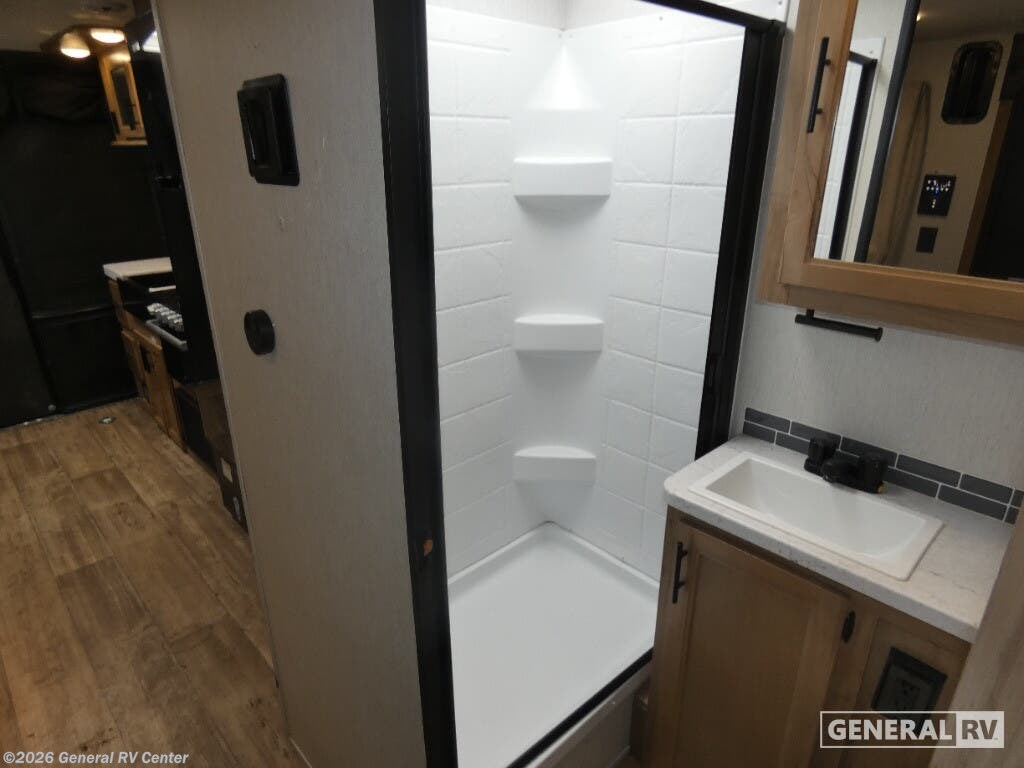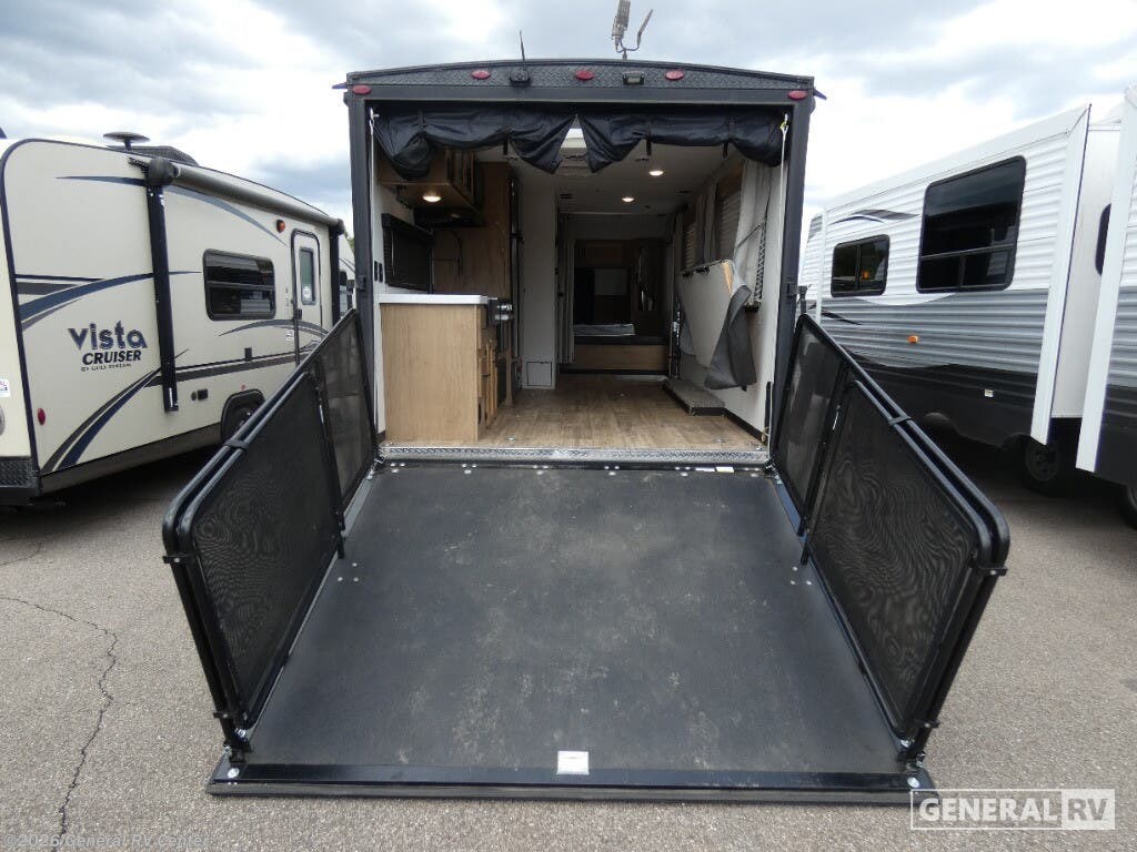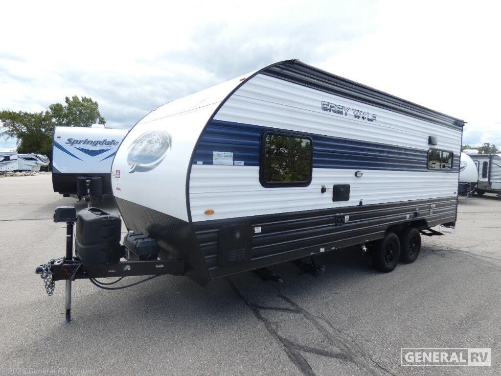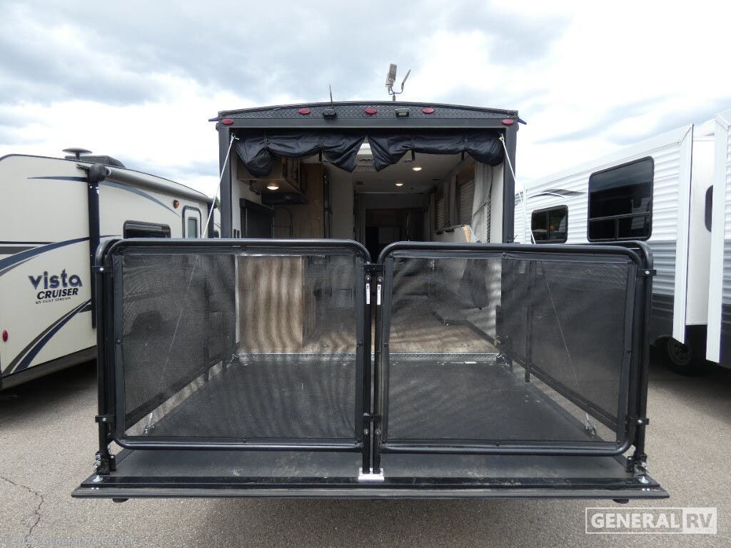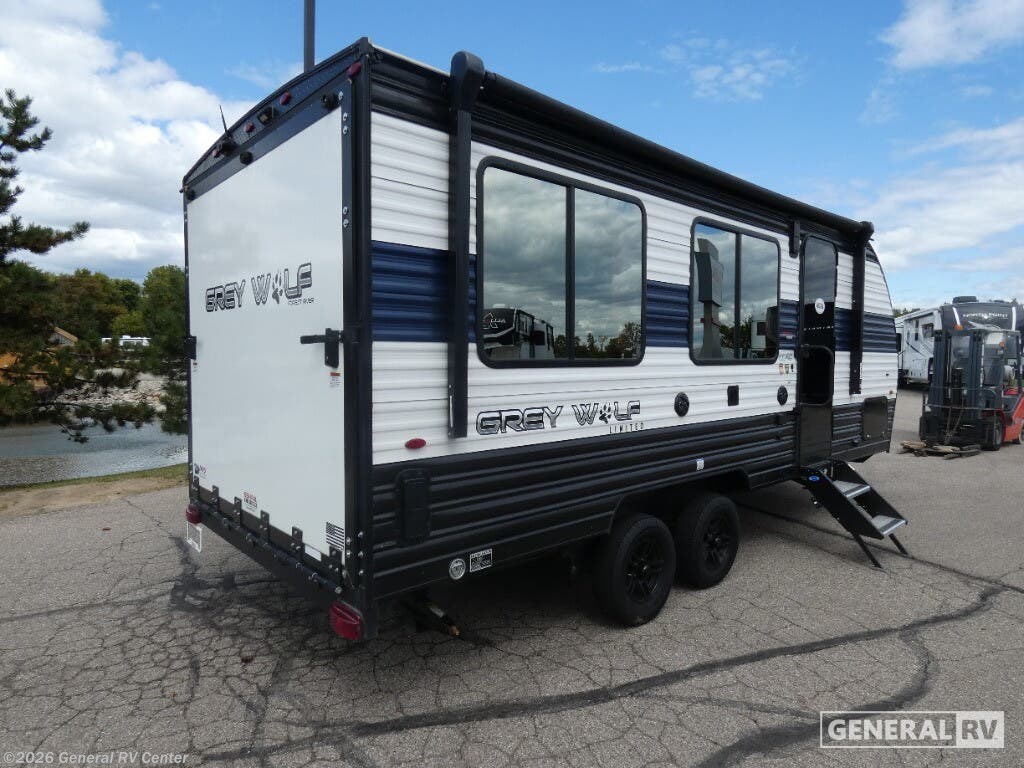 You will undoubtedly love this Cherokee Grey Wolf toy hauler! Because of its ability to have up to 15' 2" of cargo space, you can easily load up the ramp door and head out to your outdoor toy land, and you can bring much more than just your toys since this trailer also comes with exterior storage, a bedside wardrobe, overhead cabinets, an 11-cubic foot refrigerator, and a kitchen pantry. The full bathroom is another feature that is going to allow you to experience a true getaway since you won't need to find public facilities to use while you're gone, and the USB charging stations will allow you to charge your phone inside while you're outside playing. Whether it's a journey that will take you to new locations or a tried-and-true getaway to that favorite and memorable destination, the Forest River Cherokee Grey Wolf travel trailers and toy haulers are going to make the trip worth it every single time! You can travel in confidence with the premium wheel package, seamless roofing membrane with heat reflectivity, Power Gear frame technology with space-saver rail design, and Cherokee back-up camera system. The Cherokee Grey Wolf's interior is highly attractive with its stainless steel kitchen suite package, premium bedding ensemble and comforter, and 8" ceiling-mounted subwoofer with accent lighting. You will also find a black waste tank flush-out kit, an outside shower with hot and cold water, an armored underbelly tank enclosure, a power tongue jack, and an RV grill quick connect.