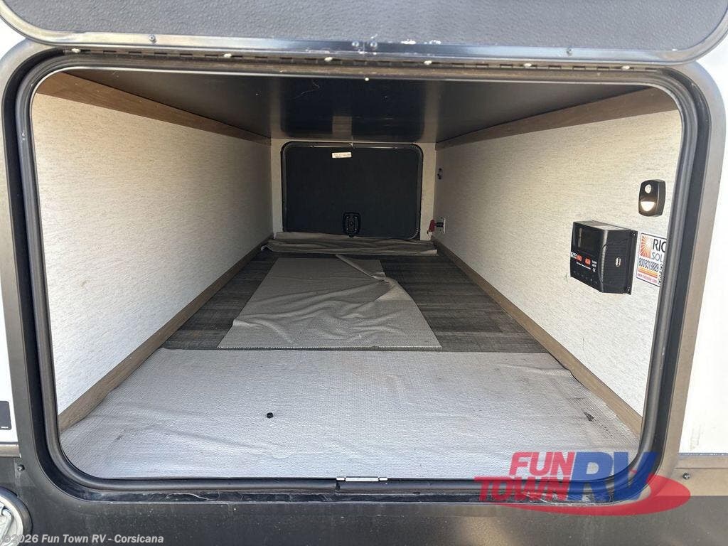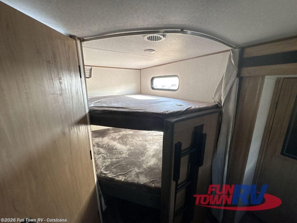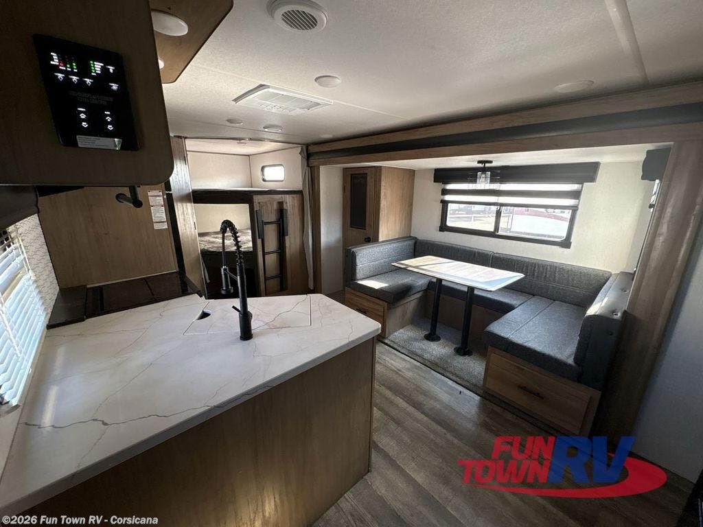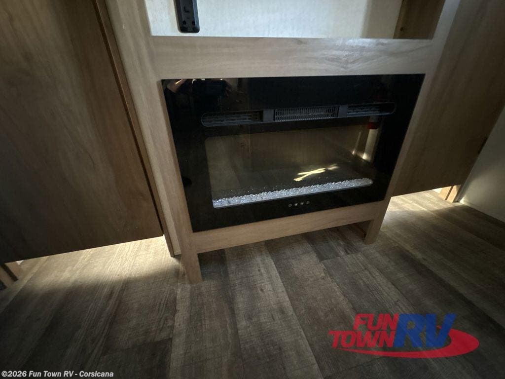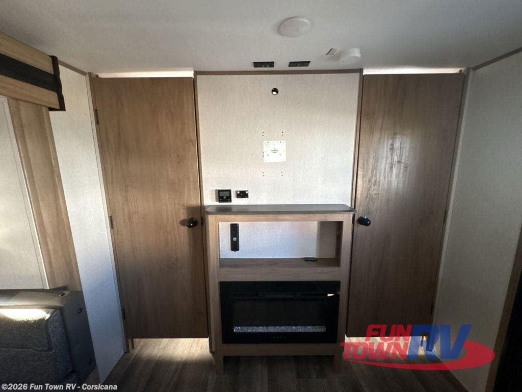 Get ready for fun with your group in this multi-sleeper trailer that offers double-size bunks with a ladder next to a full bathroom which features a second exterior entry door. The camp chef will appreciate a deluxe outside kitchen, and the full pass-through storage will make it easy to keep things neatly tucked away when not in use. Back inside, there is a U-shaped dinette for dining, playing games and additional sleeping space as well. You will also find a walk-in pantry and full kitchen amenities including a farm-style sink and a 12V residential refrigerator. The fireplace is another highlight in the main area, and the double entry bedroom means you won't have to climb over the bed to get to your side.