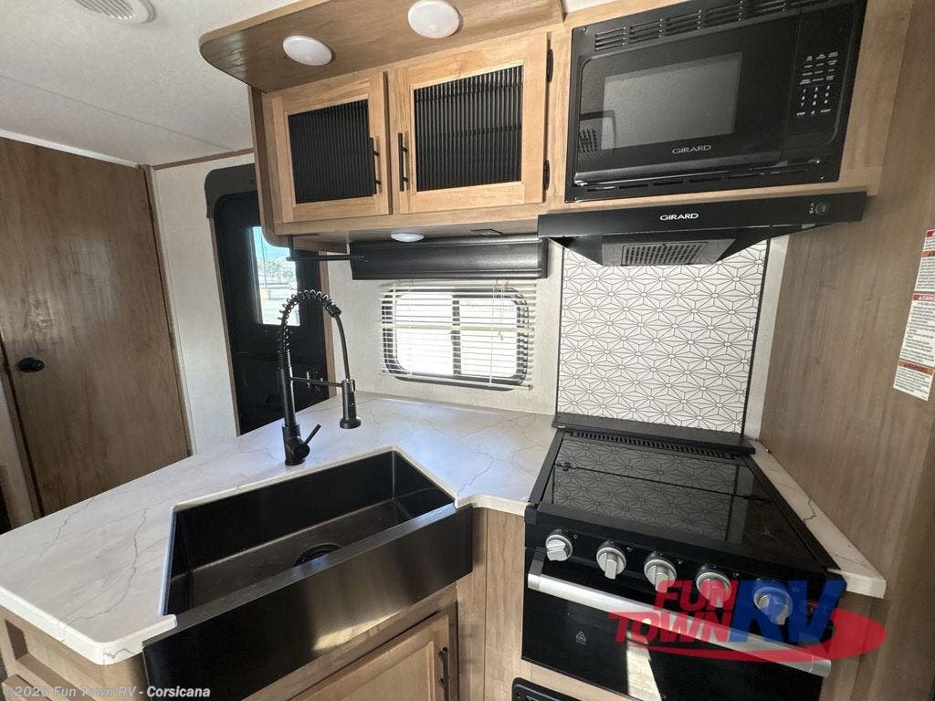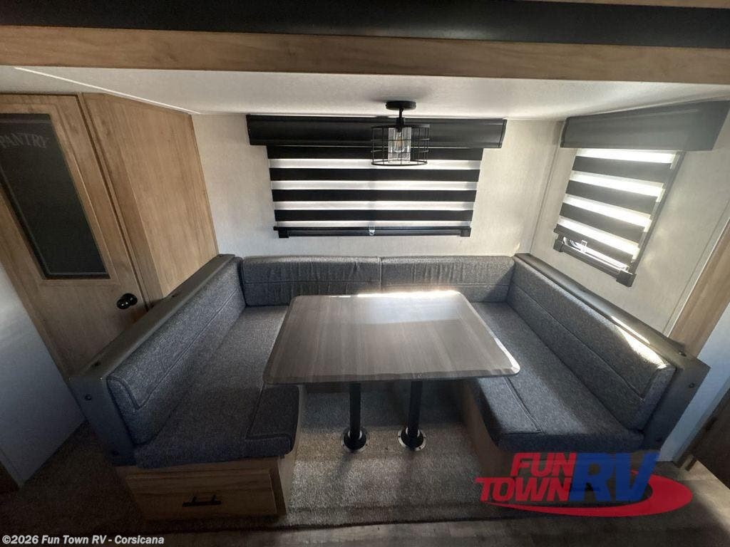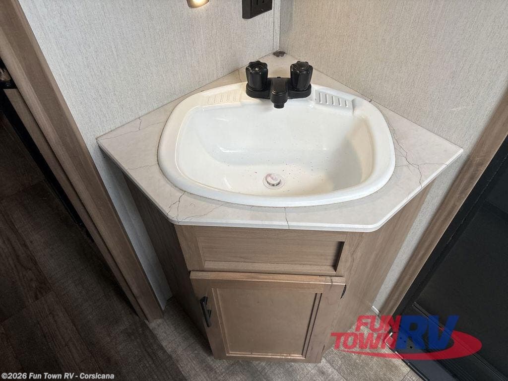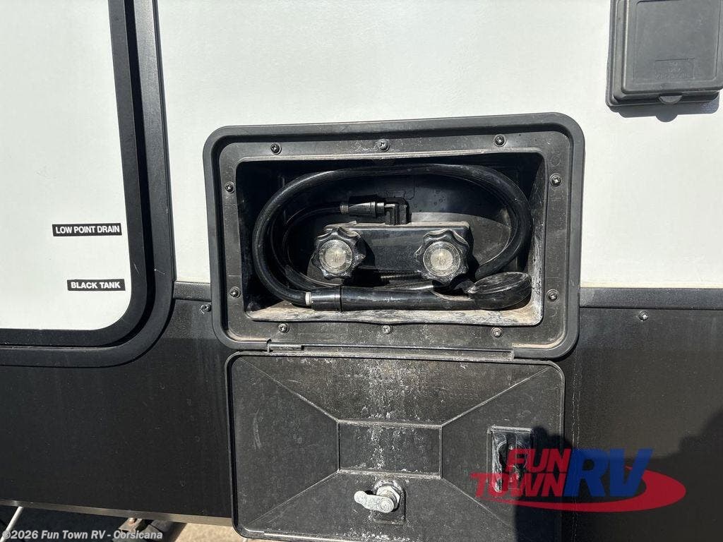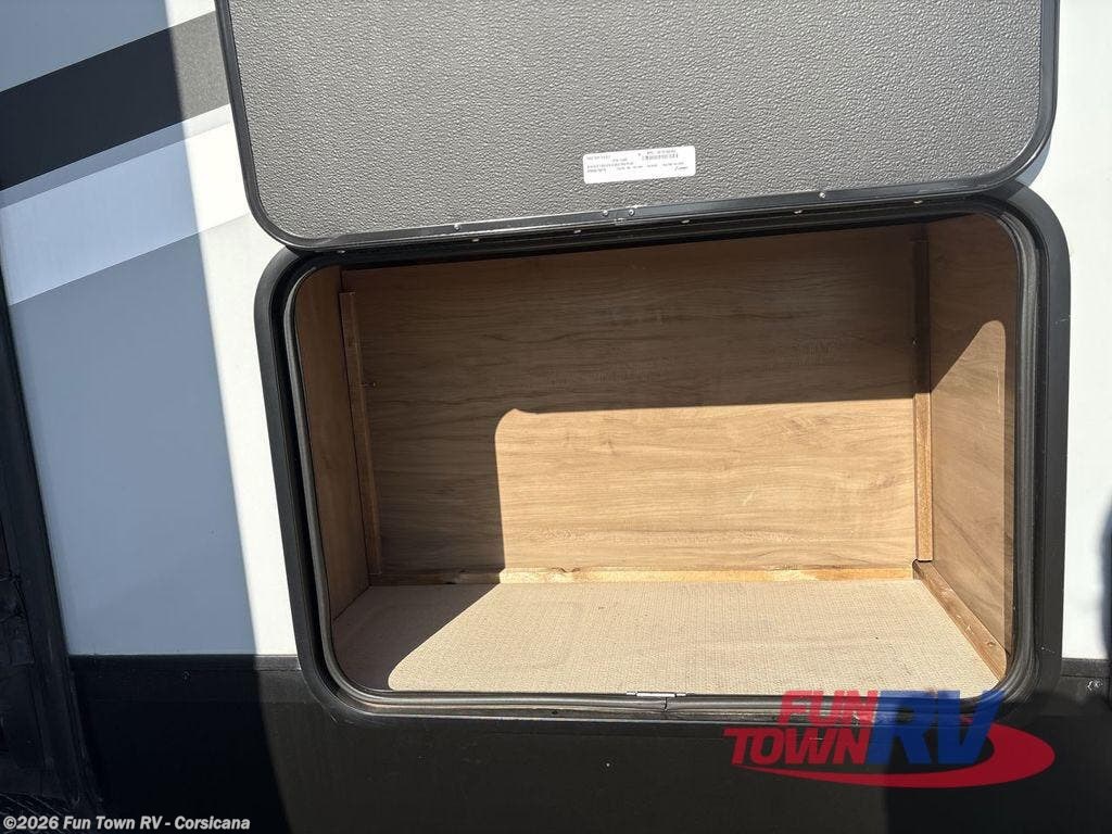 Get ready for fun with your group in this multi-sleeper trailer that offers double-size bunks with a ladder next to a full bathroom which features a second exterior entry door. The camp chef will appreciate a deluxe outside kitchen, and the full pass-through storage will make it easy to keep things neatly tucked away when not in use. Back inside, there is a U-shaped dinette for dining, playing games and additional sleeping space as well. You will also find a walk-in pantry and full kitchen amenities including a farm-style sink and a 12V residential refrigerator. The fireplace is another highlight in the main area, and the double entry bedroom means you won't have to climb over the bed to get to your side.