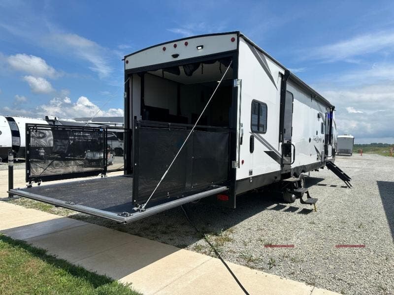 Run with the pack in any one of these Forest River Cherokee Wolf Pack toy haulers! They are affordable and versatile with a 102" widebody design to pack in all of the necessary features for a great adventure with your family and toys. The grey high gloss gel exterior will turn heads on the highway and the LED interior/exterior lights will make life easier. An outside shower with hot and cold water helps to keep the mud outside where it belongs. With an external 30 gallon fuel station, you won't have to worry about your toys being low on fuel. The Platinum package adds extra conveniences like a ramp door patio deck railing system, a Happijac bed lift system, and an industrial rubber garage floor on enclosed garage models. Come find the perfect model for you today!