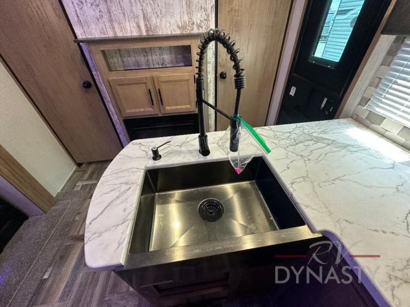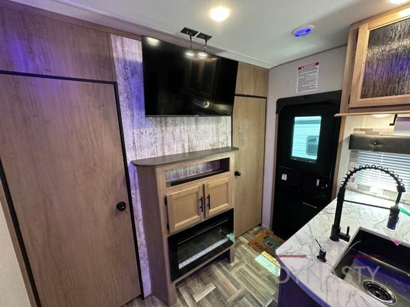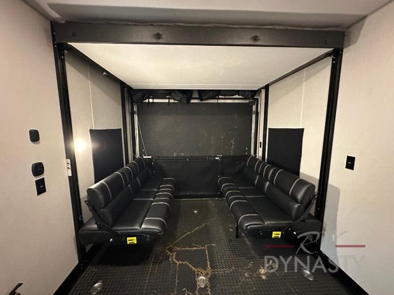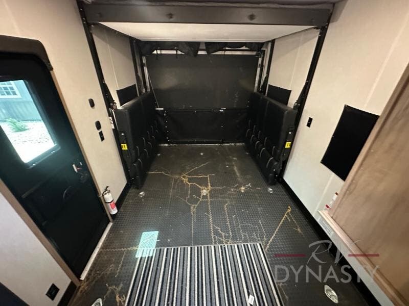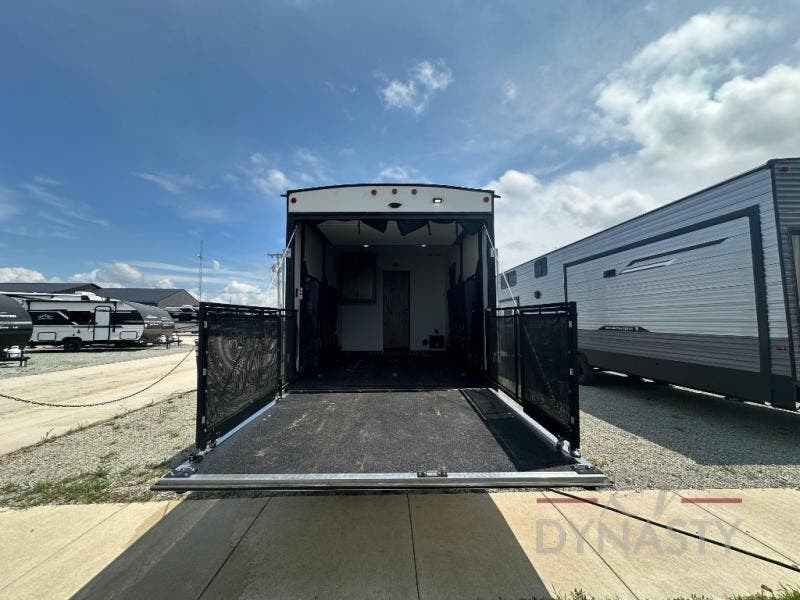 You are going to want this toy hauler for all of your adventures! It features a 12' garage area that has a folding dinette table with a Happijac bed lift system above it and one of the dual entry doors to the unit. The walk-through bathroom leads directly into the kitchen/living area. Here you will find a three burner cooktop to prepare your best meals, a U-shaped dinette to enjoy them at or you can switch it out for the optional party recliner sofa, and an entertainment center with a fireplace for a cozy evening indoors. Enjoy a good night's rest each night on the 67" x 74" Wolf Pack king bed with wardrobes on either side in the front private bedroom!
