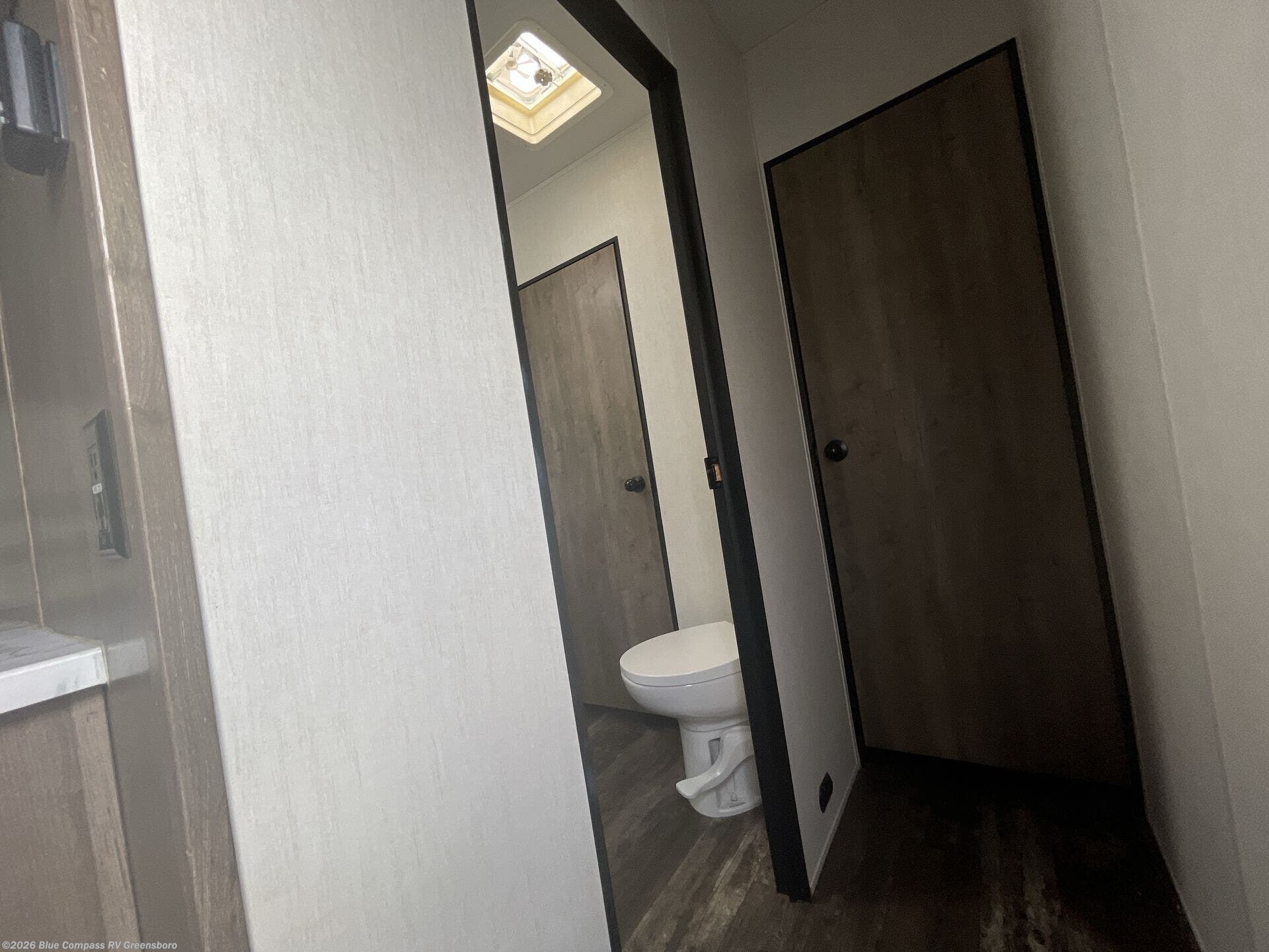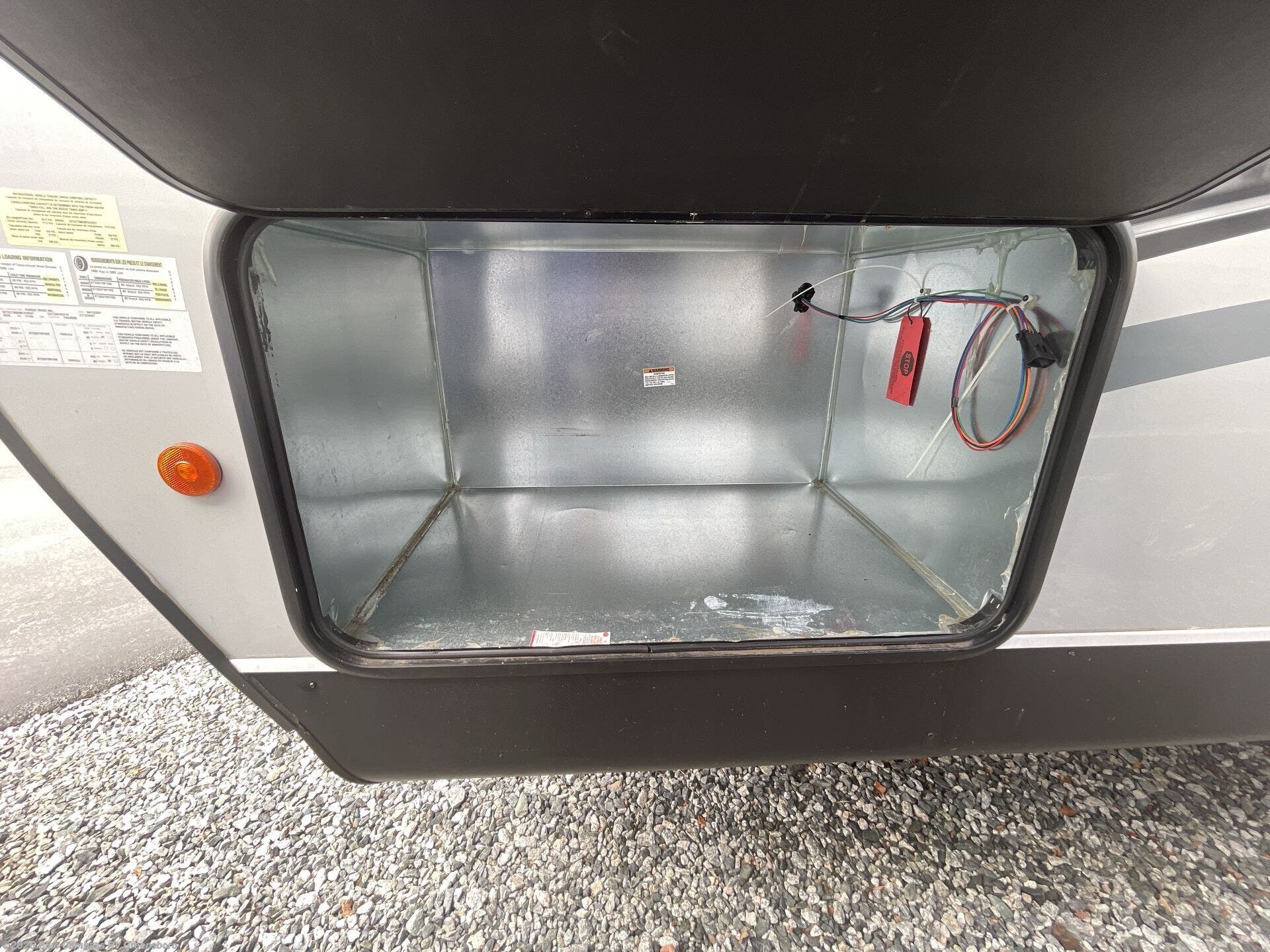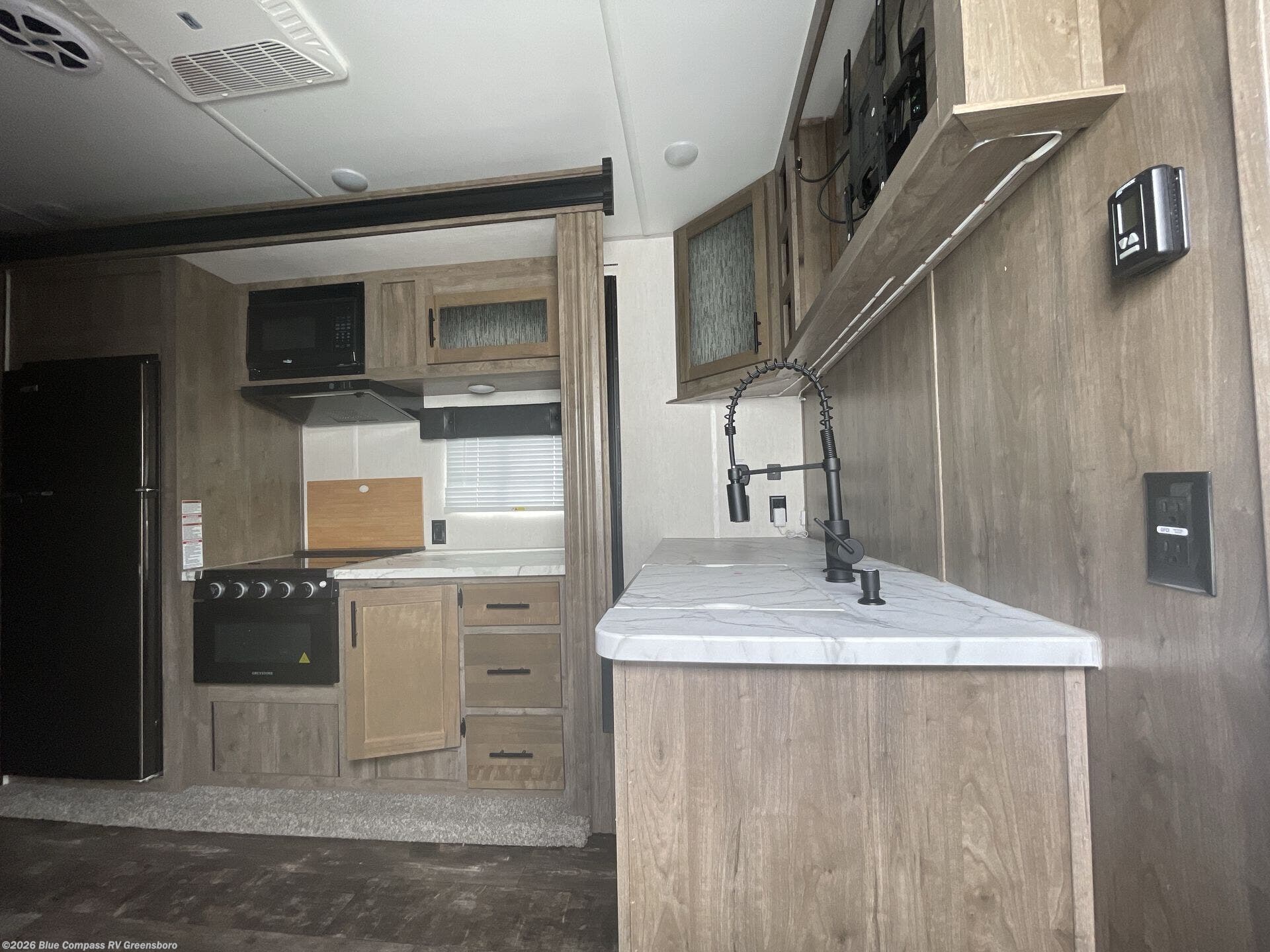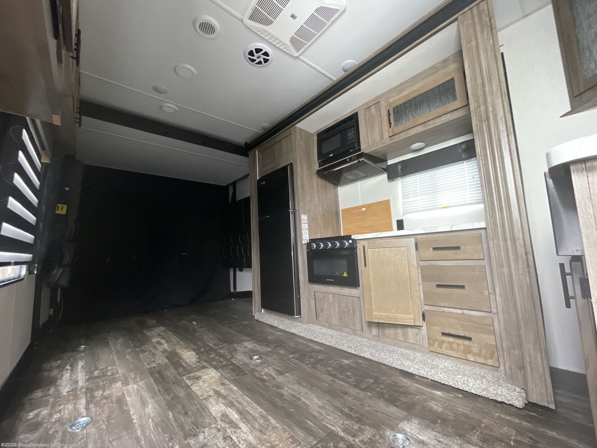 With a 15' garage area in this toy hauler, you will have plenty of room for your off-road toys! The front master suite will have you feeling right at home with a Wolf Pack king bed to lay your head on at night, wardrobes can be found on either side for your clothes, and an entrance into the dual entry bathroom has a radius shower to freshen up in each morning. The kitchen slide features a three burner cooktop, a large 10 cu. ft. refrigerator, countertop space, and overhead cabinets for your cooking essentials. Below the entertainment center is a black stainless steel farm sink to make cleanup easier too. Enjoy your meals at the folding dinette table in the garage area and set up the manual folding bunk system above the dinette when it's time for bed. The 84" x 96" ramp door will not only make it easy to load an unload your toys, but it is also a great place to wind down your nights by turning it into a "party patio" with the patio deck railing system!