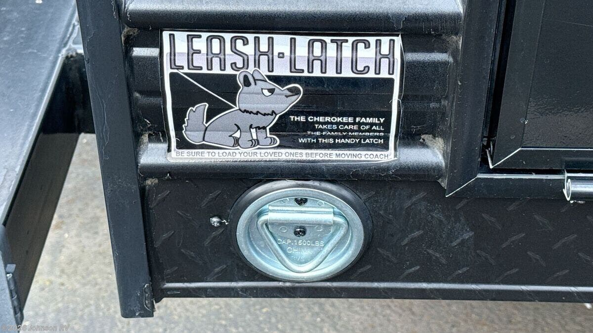 Features Include: Advantage, Camping, Power Awning, Cherokee Sanitizer, Porch Scare Light, LED Lighting, Safety Glass Windows, Night Shades Dining, Seamless Countertop, High-Rise Faucet, Systems Center, Shower Tub Surround, Foot Flush Toilet, 55-Amp Converter, 13.5k AC, 20k Furnace, Hi Flo Water Pump, Spare Tire, Metal Exterior, Wolf Pup Quick Jack, 2-inch Frame Lift, Black Label Edition, Aluminum Wheels, Power Tongue Jack, Battery Minder, Battery Disconnect, Reading Lights, Pillowtop Mattress, Upgrade Bedspread