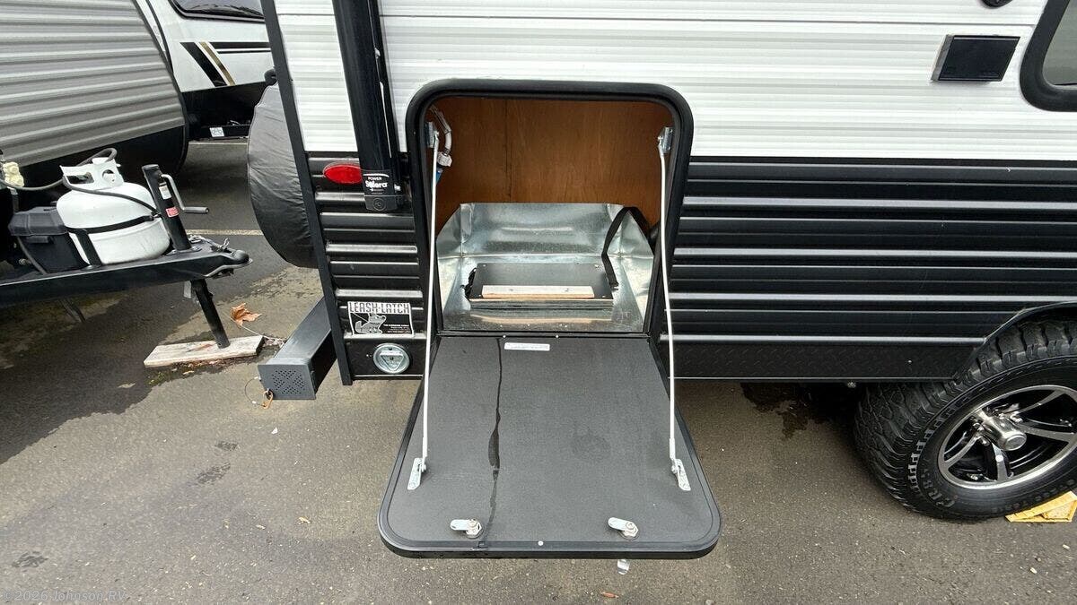 The 2023 Forest River Cherokee Wolf Pup 16FQ is a versatile and compact travel trailer designed for those who love adventure and the great outdoors. This RV is perfect for both seasoned travelers and those new to the RV lifestyle, offering a blend of comfort, convenience, and rugged capability. Exterior Features: - Power Awning: Enjoy the outdoors with a convenient power awning that provides shade and protection from the elements. - Cherokee Stable Step Oversize Landing: Ensures safe and easy entry and exit from the trailer. - Porch Scare Light: Enhances security and visibility around your campsite. - Friction Hinge Blackout Glass Entry Door: Offers privacy and durability. - LED Lighting: Energy-efficient lighting for both interior and exterior. - Safety Glass Windows: Provides clear views and safety. - Off-Road Tire Package: Equipped with durable tires for off-road adventures. - 2-inch Frame Lift: Increases ground clearance for rugged terrains. - Diamond Plate Lower Exterior Walls: Adds durability and protection. Interior Features: - Dinette with Removable Table: Offers flexible dining and lounging options. - Seamless Countertop: Provides a sleek and easy-to-clean surface. - High-Rise Faucet and Deep Stainless Steel Sink: For easy meal prep and cleanup. - 12v 11cf Refrigerator with Travel Lock: Keeps your food fresh and secure during travel. - Flush Mount Range with Cover and Large High Output Microwave: For convenient cooking options. - Solid Wood Cabinet Doors and Designer Cushion Fabric: Adds a touch of elegance and comfort. Electronics and Entertainment: - Systems Center: Centralized control for all your RV's systems. - Cherokee Backup Camera System: Assists with safe and easy maneuvering. - USB Charging Stations: Keep your devices powered up. - TV Antenna with Hookups: Stay entertained with your favorite shows. - Ceiling Mount 200w Subwoofer and Outdoor Speakers: Enjoy high-quality sound both inside and outside. Bathroom Amenities: - Shower Tub Surround: Offers a comfortable bathing experience. - Foot Flush Toilet: Convenient and easy to use. - Bath Fan: Ensures proper ventilation. Mechanical and Utility Features: - Solar Prep and Wiring: Ready for solar panel installation. - Detachable Service Cord and Exterior 110v GFI Receptacle: Provides power options. - 55-Amp Converter, 13.5k AC, and 20k Furnace: Ensures comfort in any weather. - Tankless On Demand Hot Water and Hi Flo Water Pump: Provides efficient water heating and flow. - Outdoor Shower with Hot and Cold Water: Perfect for rinsing off after a day of adventure. Construction and Build: - Power Gear Frame Technology and Space Saver Rail Design: Ensures a sturdy and efficient build. - 14-inch Premium Wheel Package with Nitrogen Filled Tires and Tire Pressure Monitors: Offers a smooth and safe ride. - Smooth Radius Front Profile and Metal Exterior: Enhances aerodynamics and durability. - Seamless Reflectivity Roof Membrane: Provides weather resistance. - 12v Heating Pads on Holding Tanks: Prevents freezing in cold weather. - Wolf Pup Quick Jack and Four Stabilizer Jacks: For easy setup and stability. Additional Features: - Black Label Edition: Includes premium upgrades such as Aluminum Wheels, Power Tongue Jack, Battery Minder, and Battery Disconnect. - Gelcoat Fiberglass Sidewalls and Thermofoil Arctic Insulation: Offers superior insulation and durability. - Hands-Free Baggage Door Catch and Frameless Automotive Window Package: Adds convenience and style. - Reading Lights, Pillowtop Mattress, and Upgrade Bedspread: Ensures a comfortable and restful sleep. The 2023 Forest River Cherokee Wolf Pup 16FQ is a well-equipped travel trailer that combines modern amenities with rugged features, making it an ideal choice for those seeking adventure without sacrificing comfort. Whether you're exploring off the beaten path or enjoying a weekend getaway, this RV is ready to accompany you on your journey. ??