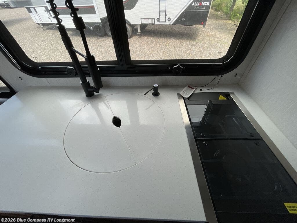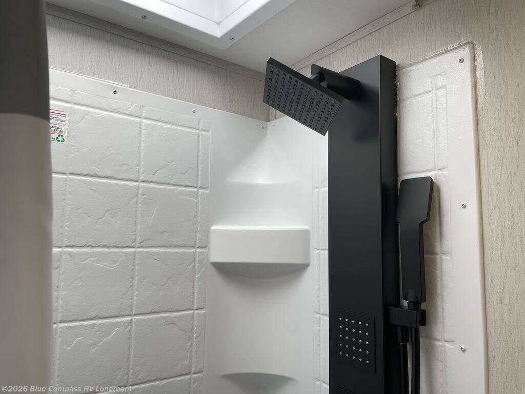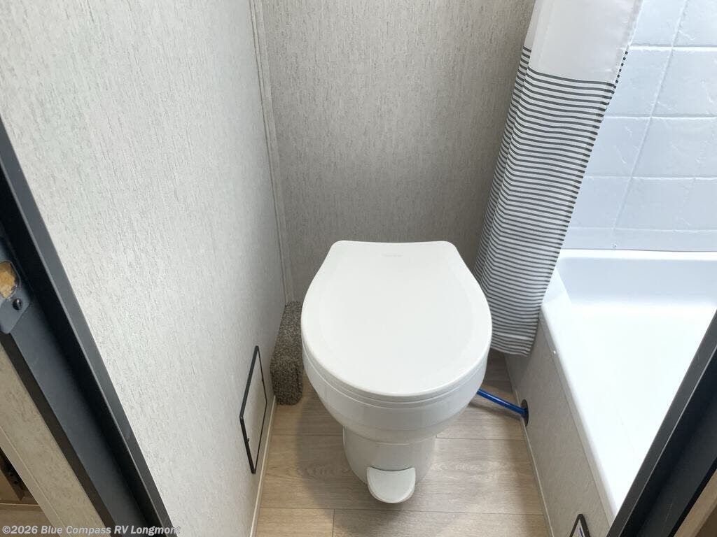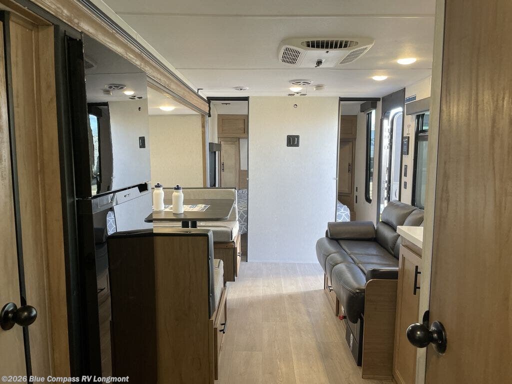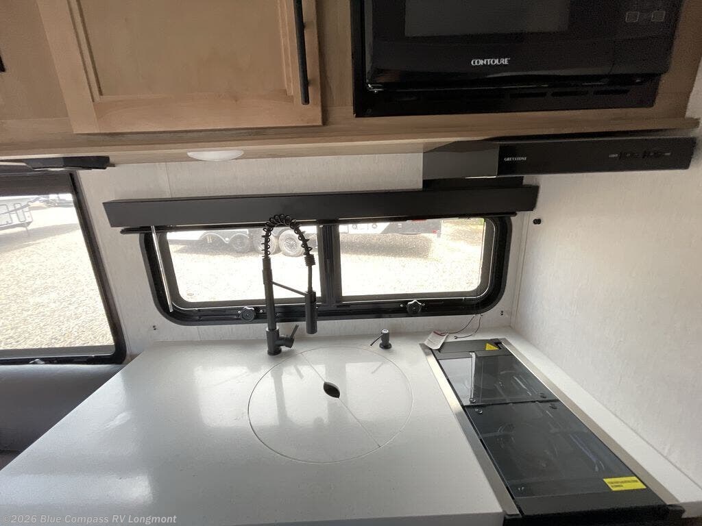Sleeping for nine or ten is made easy in this Wolf Pup Black Label model with large bunks in the rear of the unit, a queen bed up front in the private bedroom with dual sliding entry doors, as well as when using the furniture once converted. The u-shaped dinette allows you to dine comfortably for meals, play games when indoors hanging out, and even use as a bed for two. There are large storage drawers beneath both side seats to store games, extra pots and pans, or whatever you need. The sofa opposite also flips into a convenient bed when needed. Storage is in abundance in this Wolf Pup model with a large storage door that can be accessed inside by flipping up the bunks or from the outside storage plus door. More outside storage can be found up front, and on the inside you will find a large pantry, overhead cabinets, plus wardrobes in the front bedroom for your clothing. The tub/shower has an overhead skylight to let in natural light, provide a bit more head room, and give you a glimpse of your day when you wake. You will also enjoy great views through the large panoramic windows above the dinette and sofa.