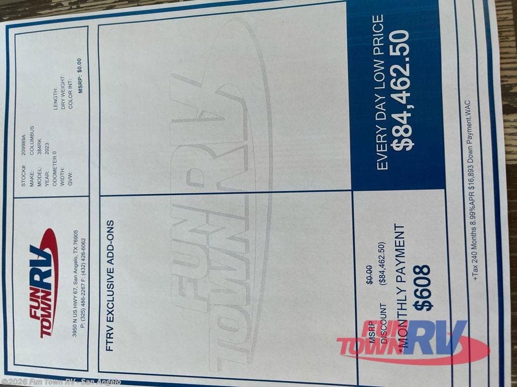 Request More Info on this 2023 Forest River Columbus 384RK Offered for sale by Fun Town RV - San Angelo