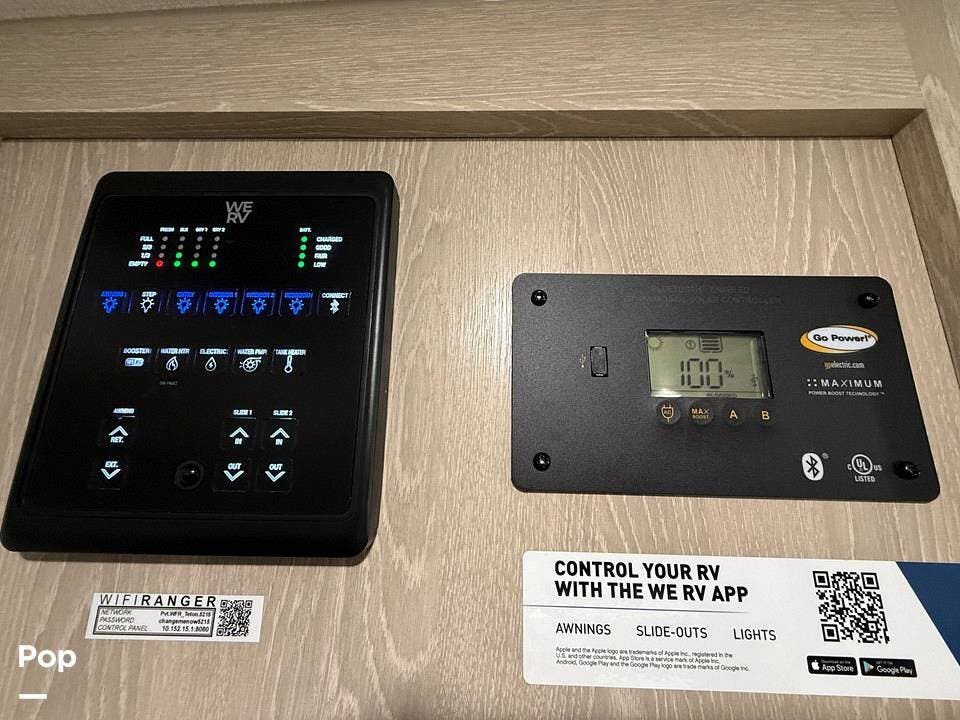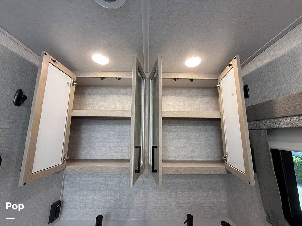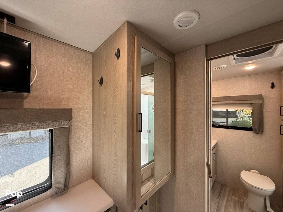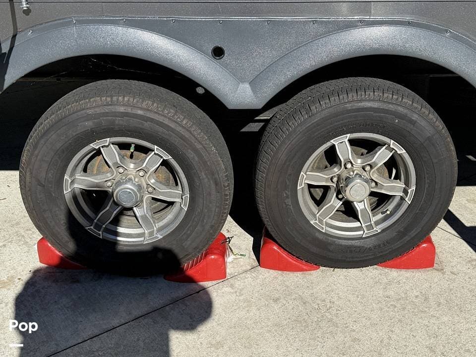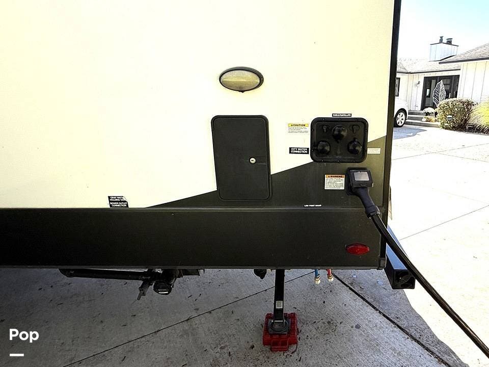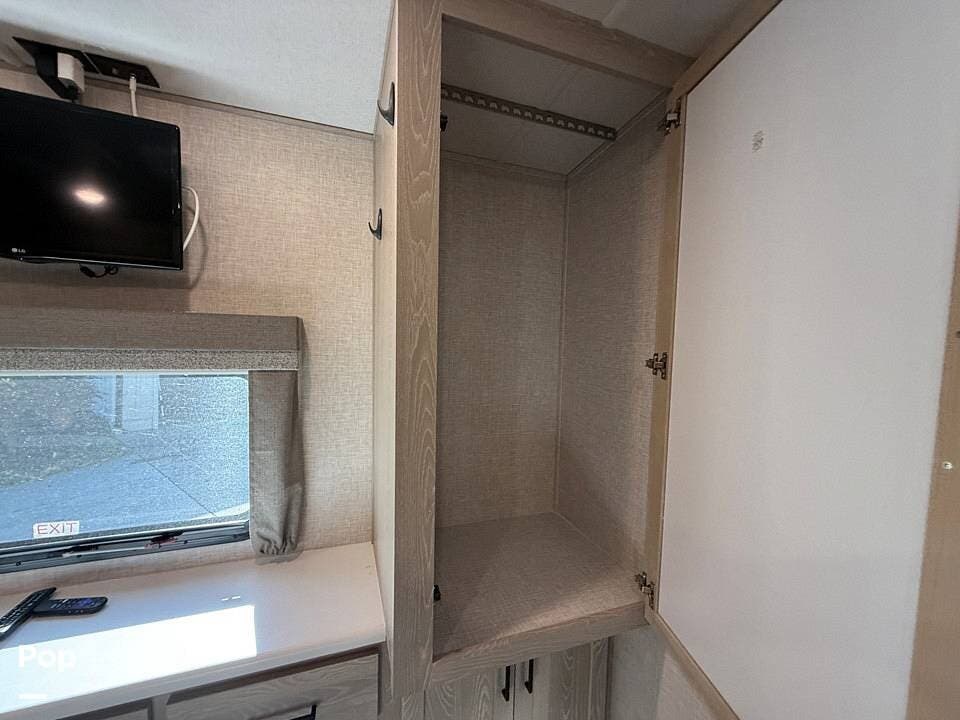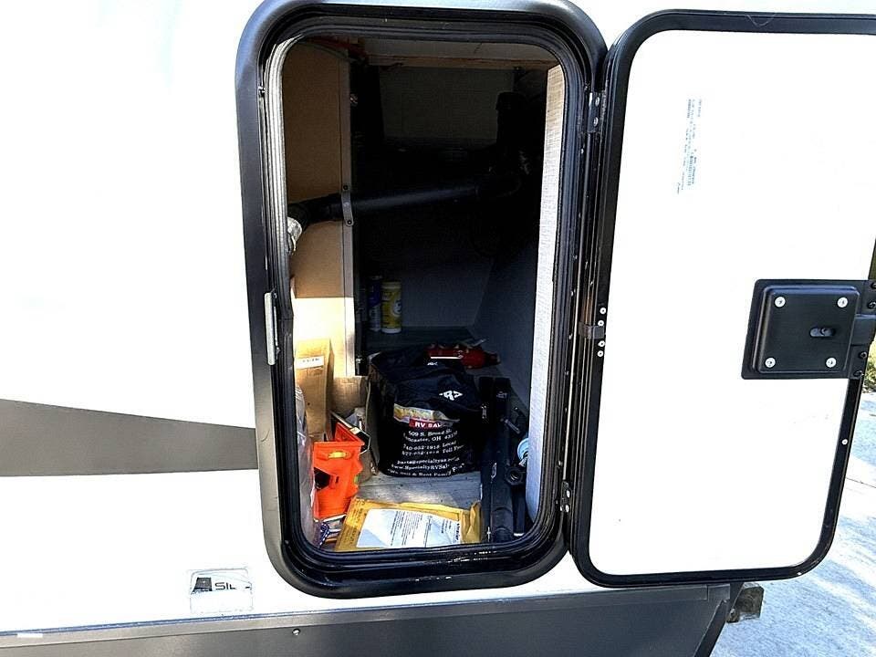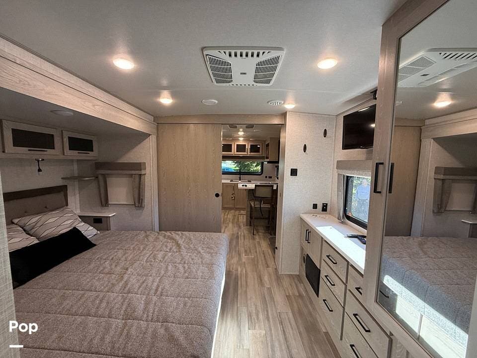 Built for smooth towing and stability, it features Dexter Torflex axles, nitrogen-filled Goodyear Endurance tires, and TPMS prep. With a 200W solar panel, 1000W inverter, 50-amp service, and prewire for a second A/C, it's ready for extended adventures. Strut-assist solid steps and a friction-hinge door provide easy entry.