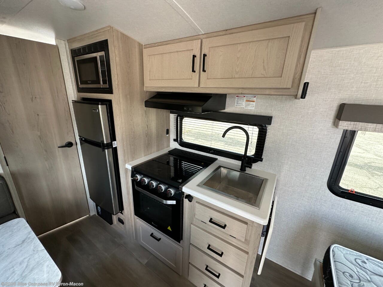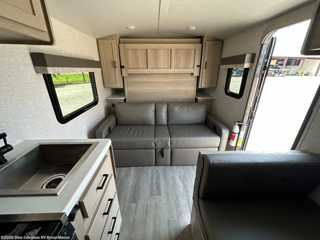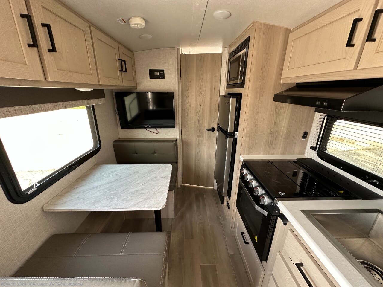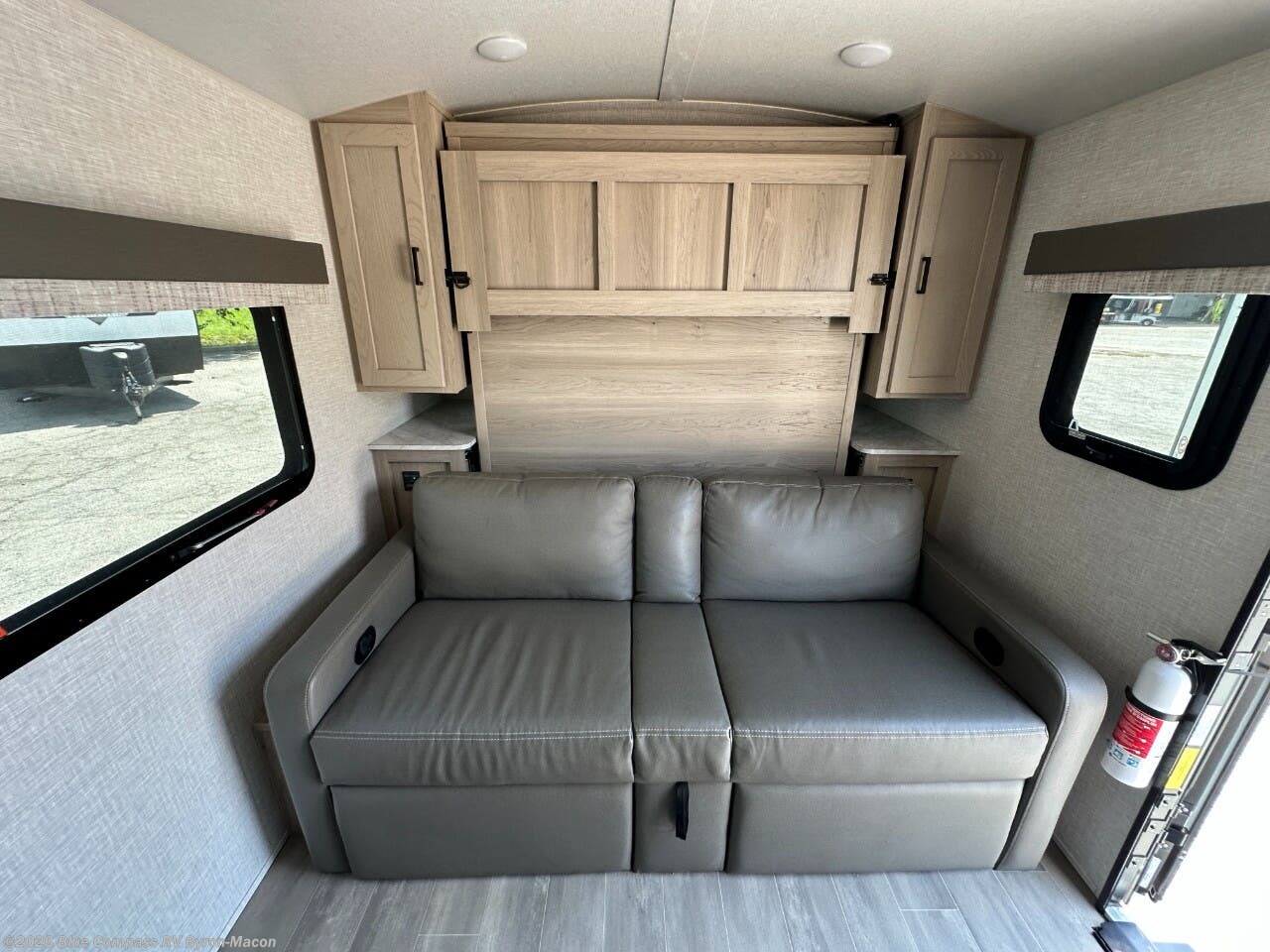 Whether you enjoy staying at the campground for a weekend or longer and/or you enjoy off-grid camping, this 20'2" long trailer gives you lots of interior space and versatility to enjoy each and every trip. From the Murphy bed/sofa combo up front offering sleeping space and seating depending on which you prefer at the time, to the full rear bathroom which also offers linen storage, you will have everything you need. And the kitchen cooktop, microwave and 12V refrigerator allow you to make meals and store leftovers. Two can dine at the booth dinette or you can eat outdoors under the 14' power awning.