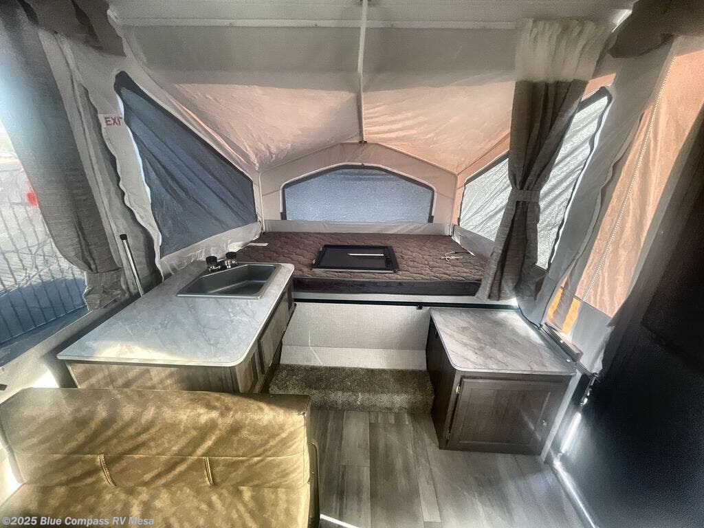 Retire the family tent for one of these Forest River Flagstaff MAC Limited Series folding pop-up campers! They might be light on features, but they don't lack in comfort or quality. Each model comes with a heated mattress on the bunk ends, wood look flooring, and a flip-down galley with storage for dishes and snacks. The carry-out range is super handy to grill juicy burgers while breathing in fresh air under an awning to keep you protected rain or shine.