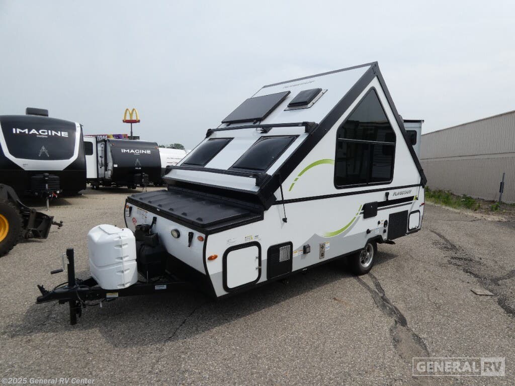 Experience the great outdoors with the 2023 Forest River Flagstaff Hard Side T12RBST. This charming A-frame camper is perfect for adventurers seeking a compact yet comfortable retreat. With a length of just over 18 feet, it's easy to tow and maneuver, making it ideal for both weekend getaways and extended journeys. Inside, you'll find a cozy setup that comfortably sleeps up to four, featuring a full-size flip-up bed and a convertible dinette. The center kitchen is equipped with a compact electric refrigerator, a three-burner cooktop, and a microwave, ensuring you have everything you need to whip up delicious meals on the road. The T12RBST's thoughtful design includes an EZ Reach Storage Trunk, providing ample space for your gear and essentials. Although compact, this camper is built for comfort and convenience, with an automatic heater to keep you warm on chilly nights and a generous 20-gallon fresh water tank for your hydration needs. The exterior griddle is perfect for those who love cooking under the open sky. With its lightweight design and single axle, the Flagstaff Hard Side is a breeze to tow, offering you the freedom to explore without limits. For more information or to see it in person, visit your nearest General RV dealership.