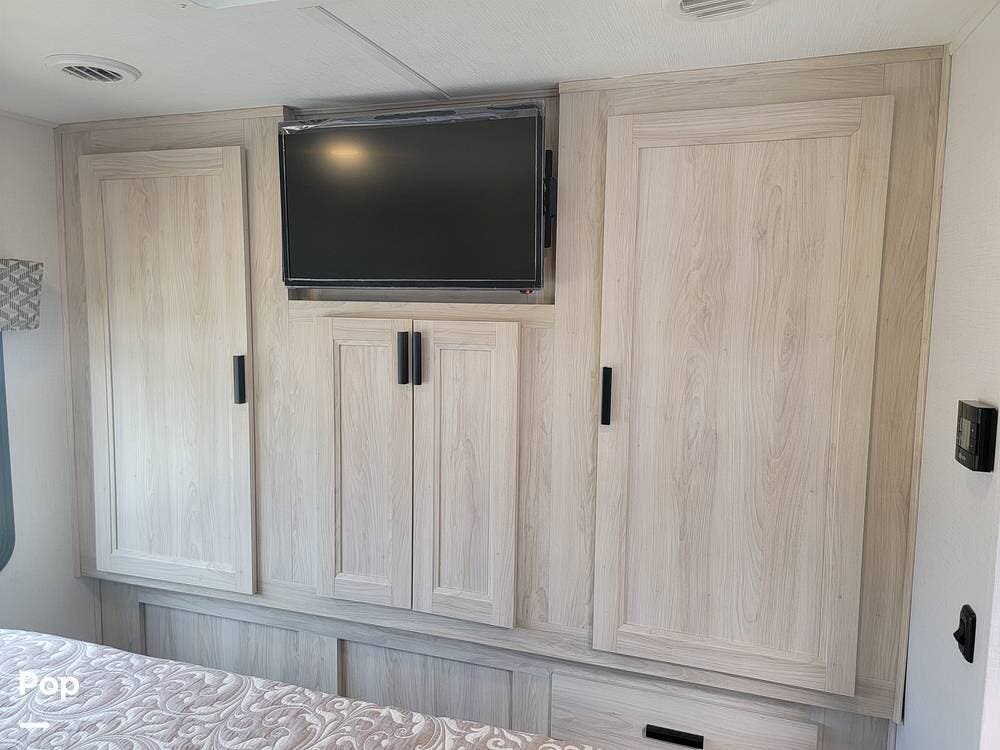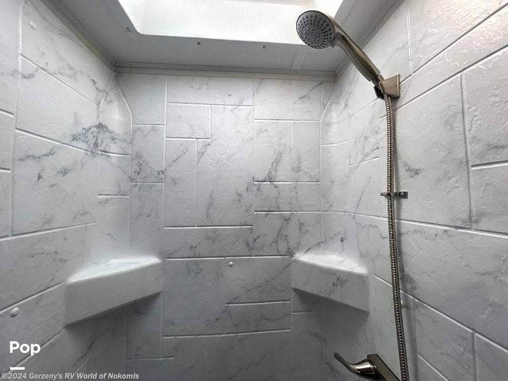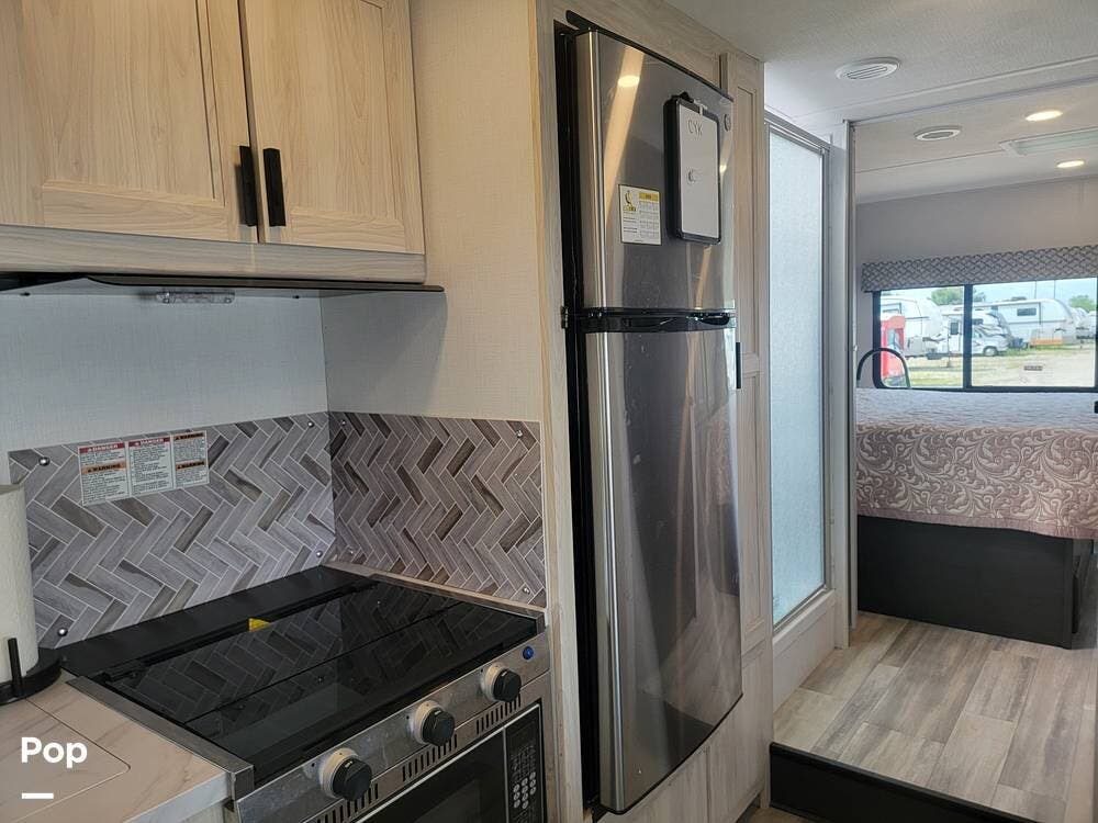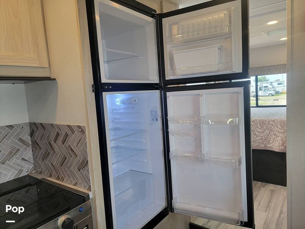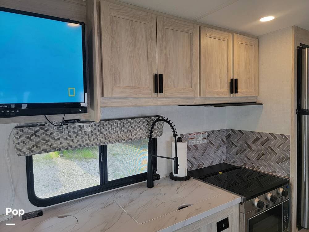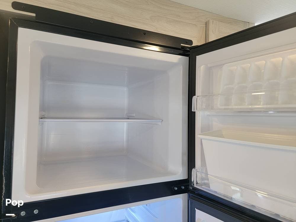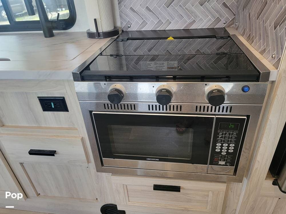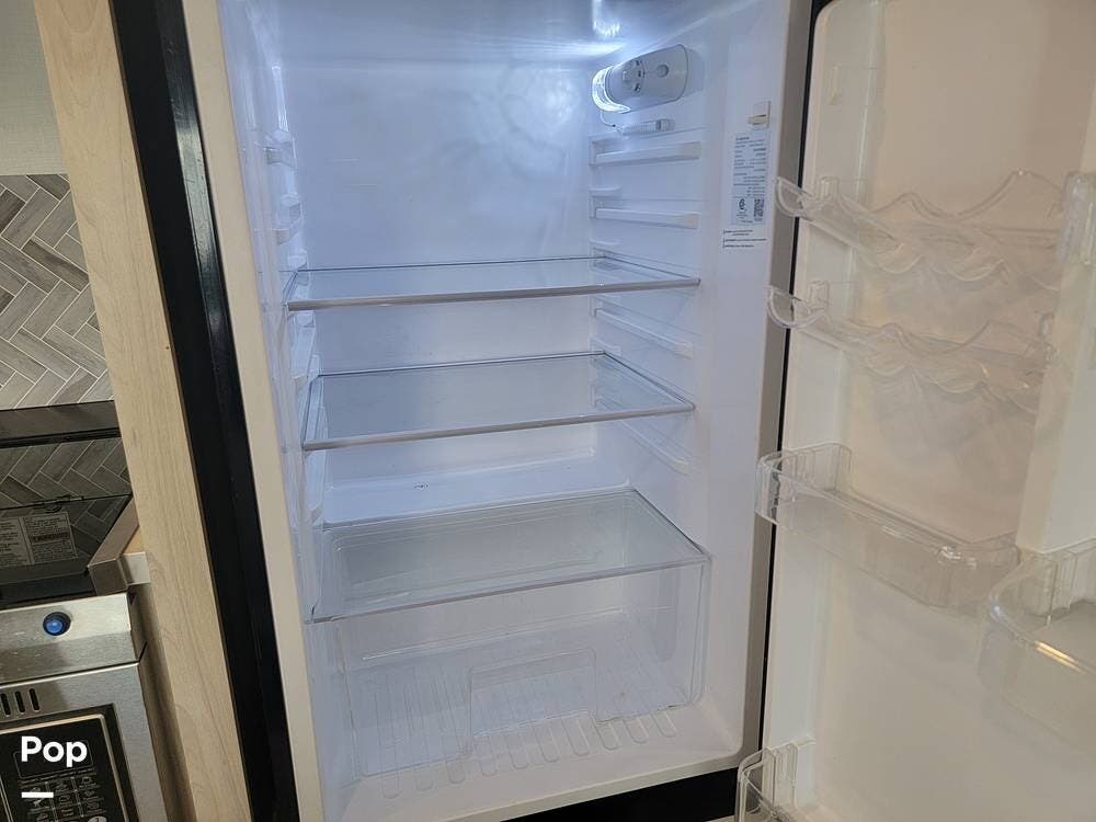 Fully loaded kitchen with 10.7 cu. Features a full-size refrigerator, three-burner range, convection microwave, stainless-steel sink, solid-surface counters, and ample storage. Entertainment-ready with Winegard satellite prep, indoor/outdoor TV hookups, stereo, and exterior speakers.