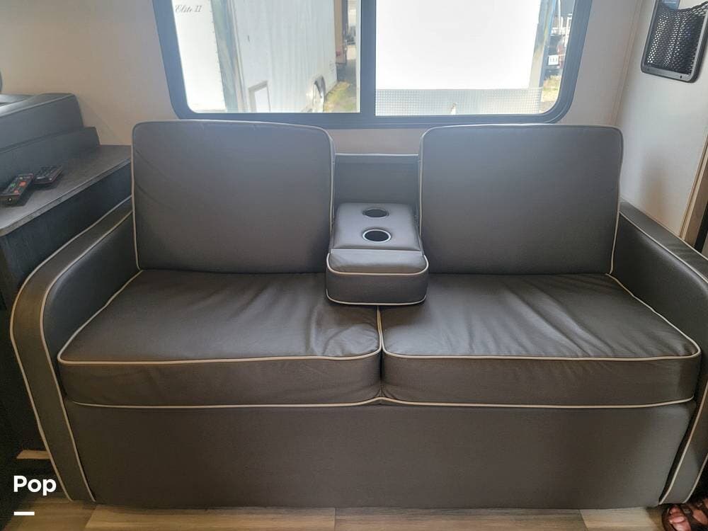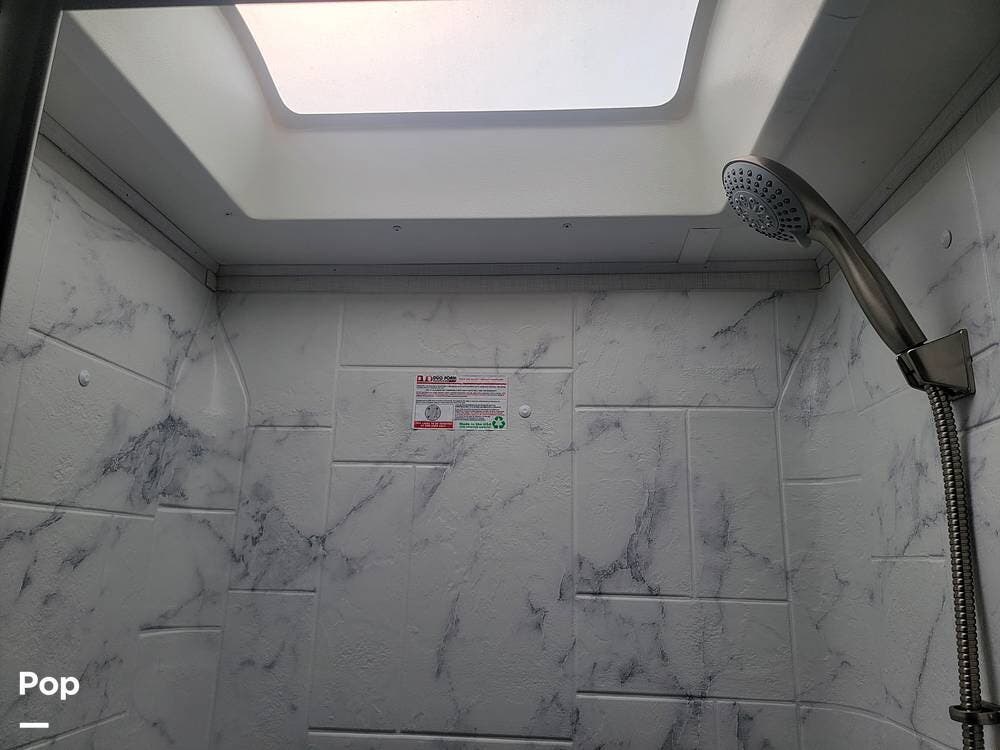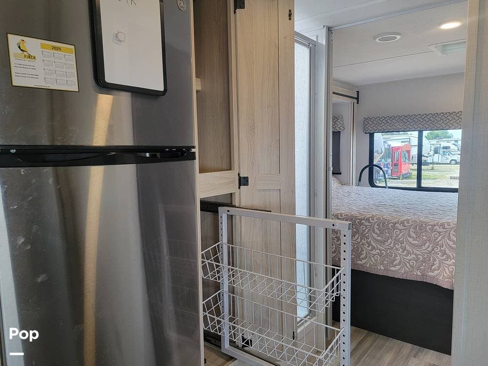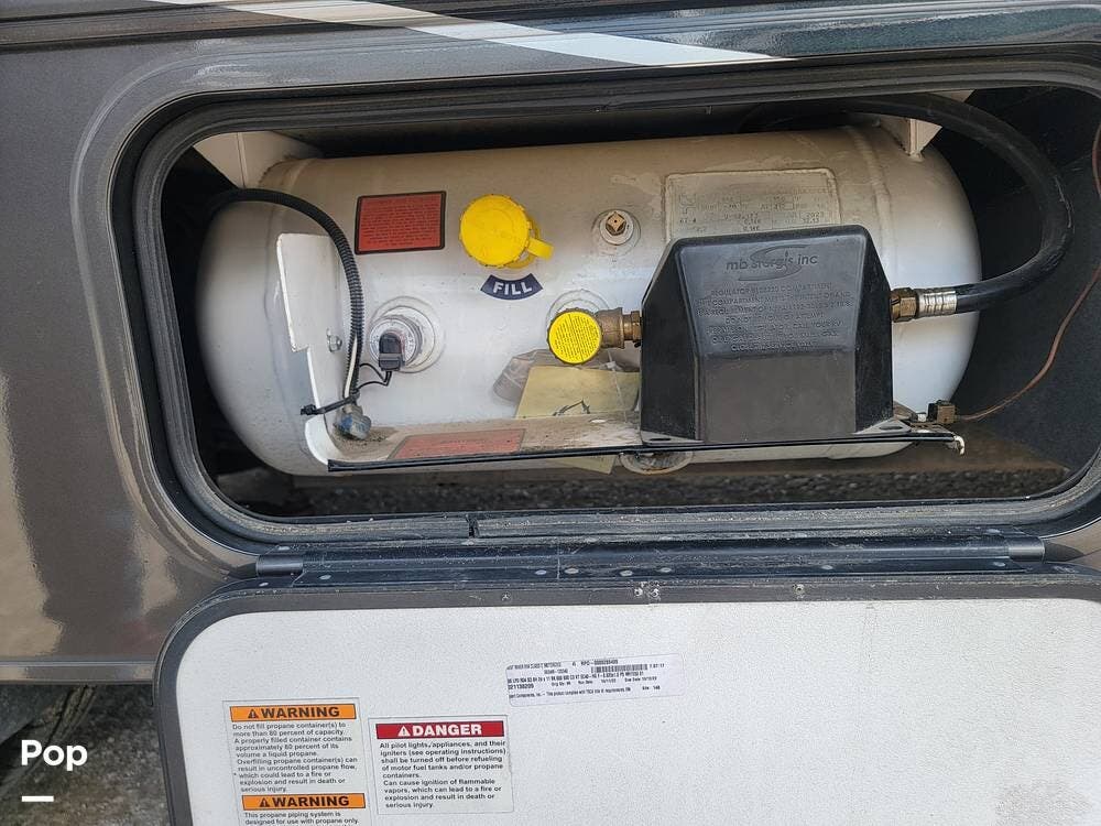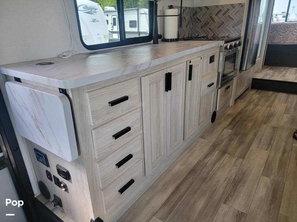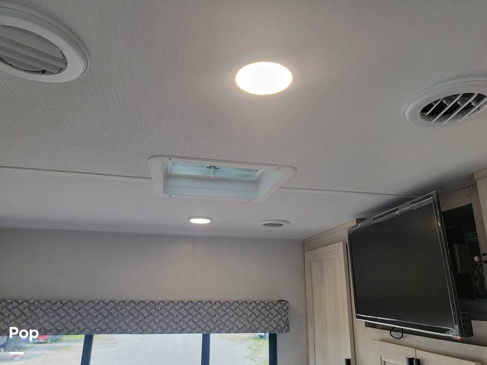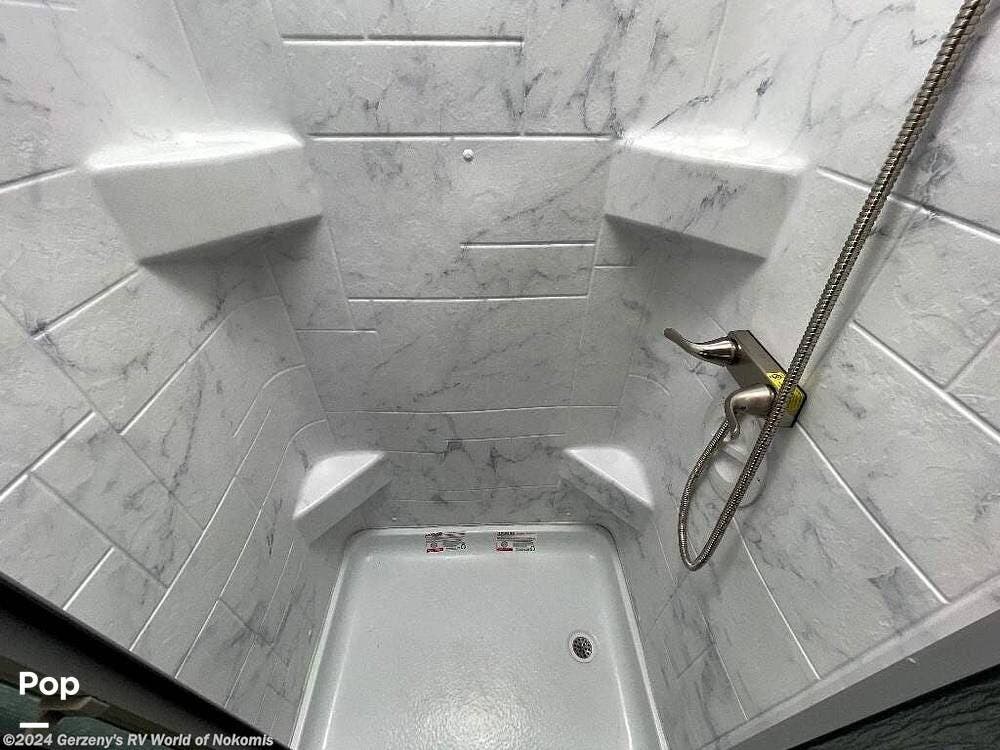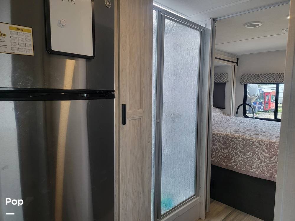 Fully loaded kitchen with 10.7 cu. Features a full-size refrigerator, three-burner range, convection microwave, stainless-steel sink, solid-surface counters, and ample storage. Entertainment-ready with Winegard satellite prep, indoor/outdoor TV hookups, stereo, and exterior speakers.