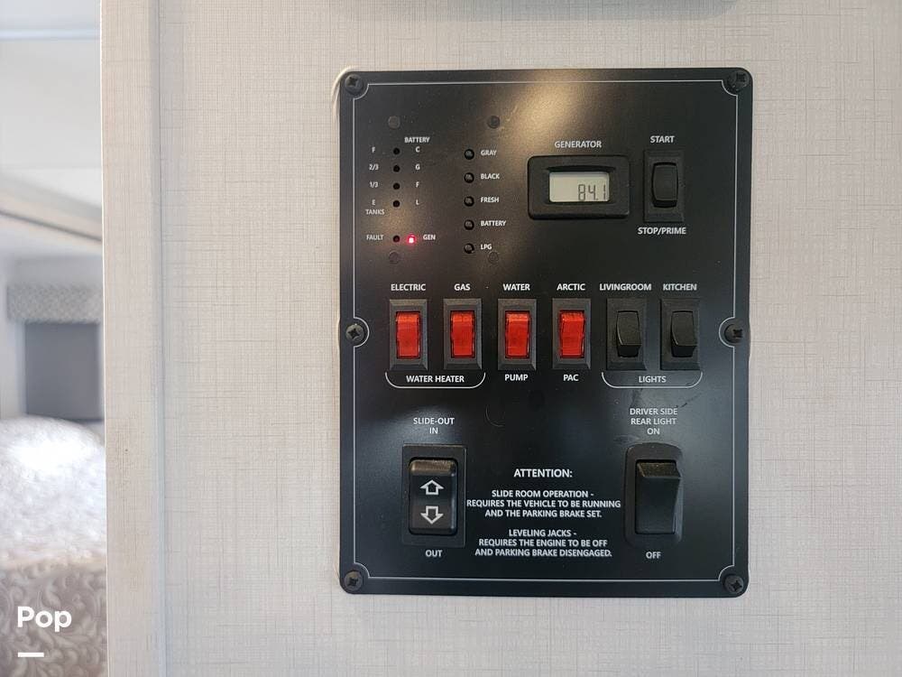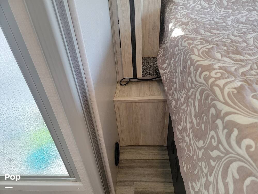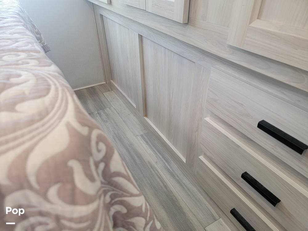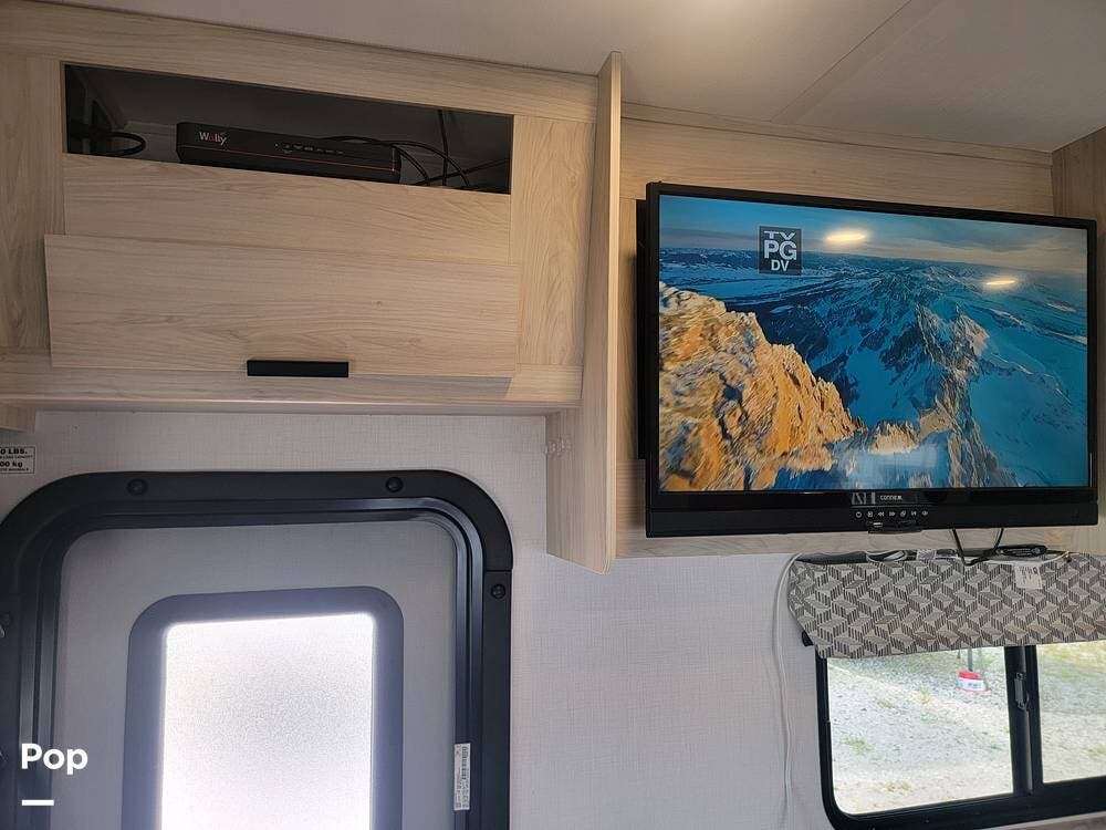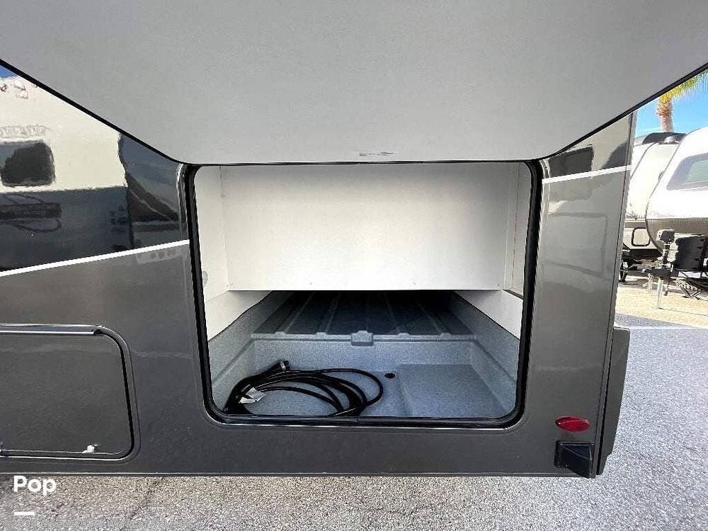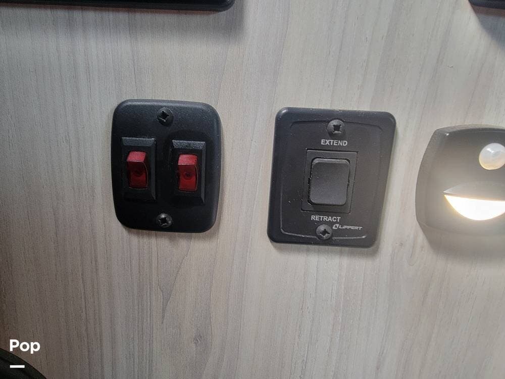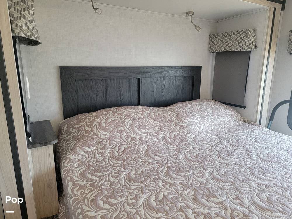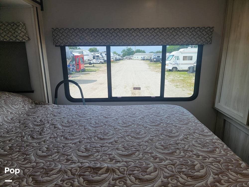 Exterior features include a power awning with LED lights, big storage bays, and an optional outdoor entertainment center. 9-inch touchscreen with Apple CarPlay, Android Auto, backup, and side-view cameras. 7,500 lb. towing capacity--bring your car, boat, or trailer.