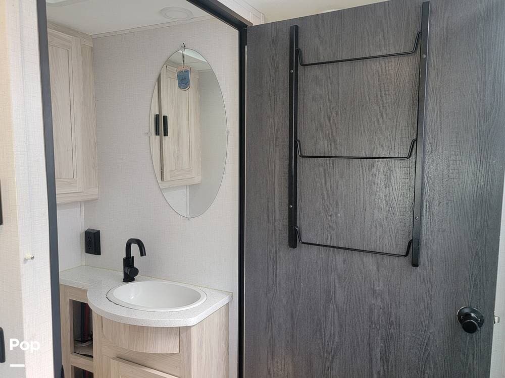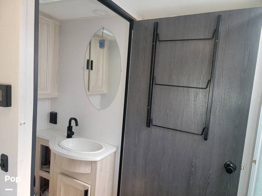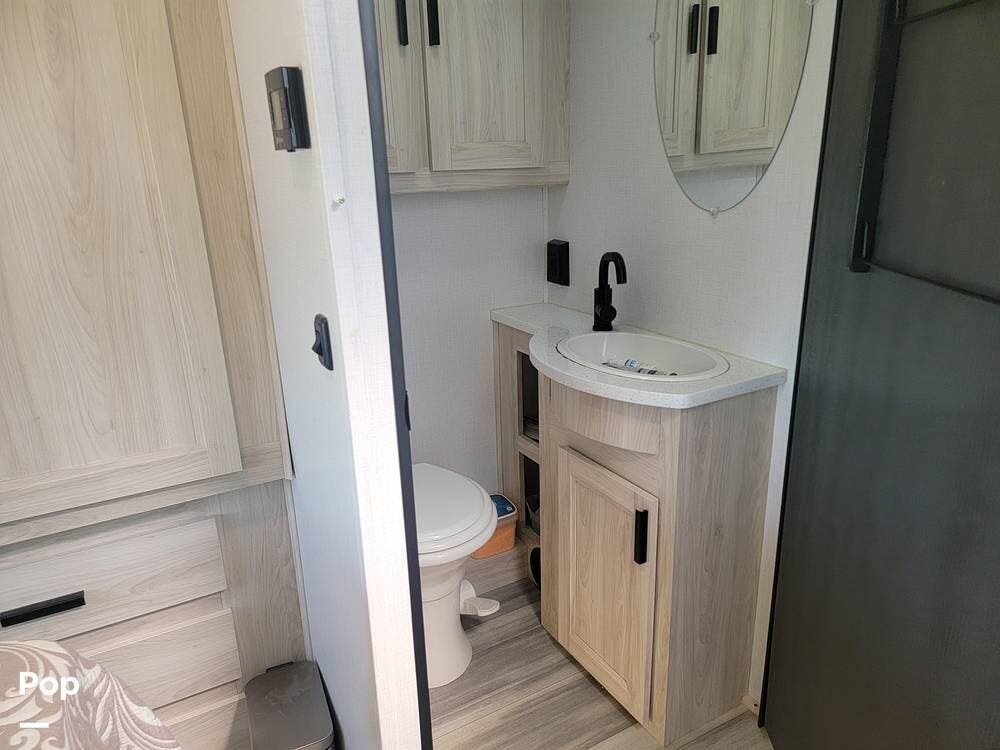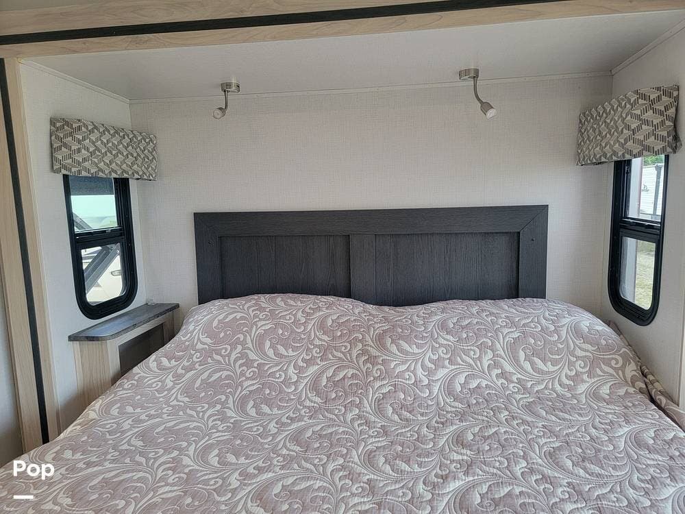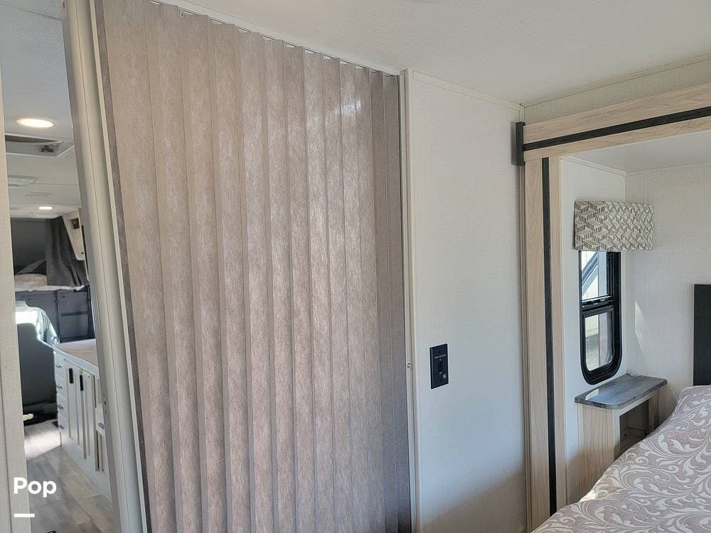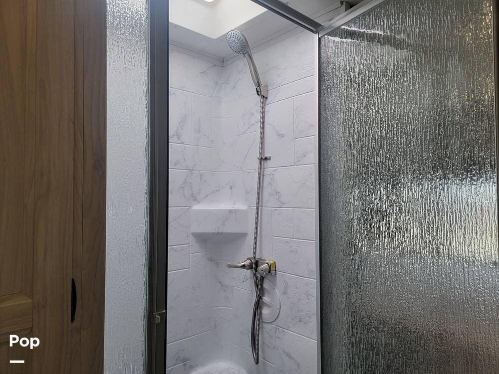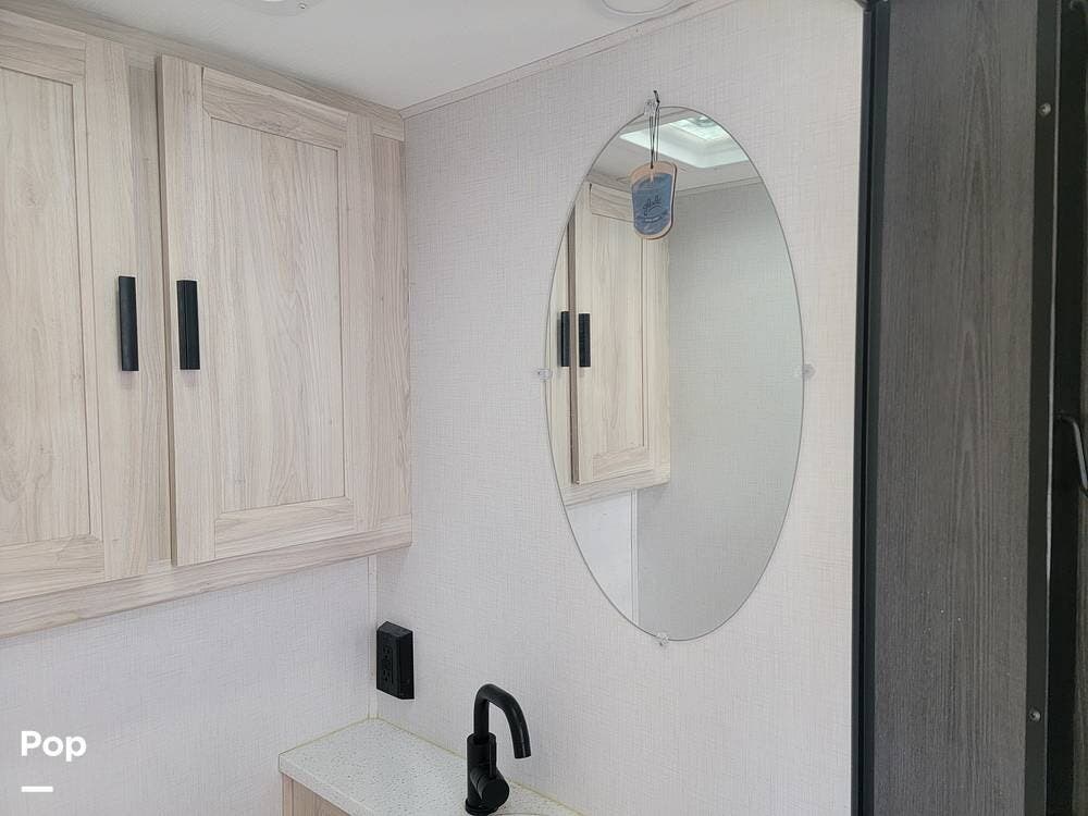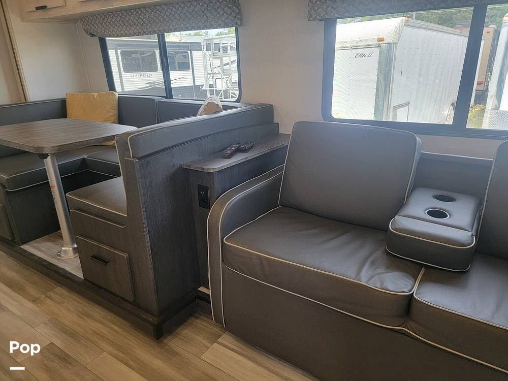 Exterior features include a power awning with LED lights, big storage bays, and an optional outdoor entertainment center. 9-inch touchscreen with Apple CarPlay, Android Auto, backup, and side-view cameras. 7,500 lb. towing capacity--bring your car, boat, or trailer.