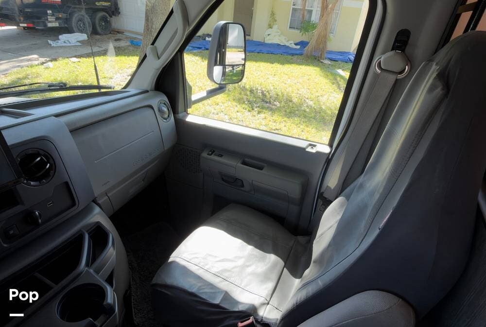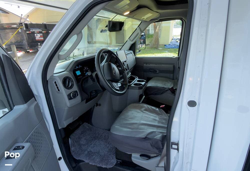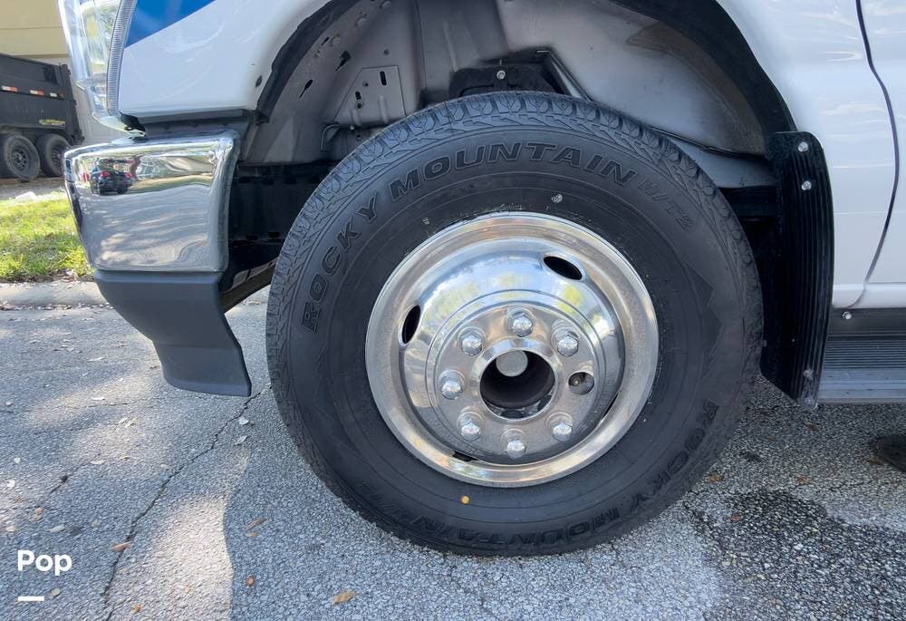 Outside, you've got a power awning with LED lights, rear storage, an Onan 4.0kW generator, and solar prep on the roof. Built on a Ford E-450 chassis with the 7.3L V8 and a 55-gallon fuel tank, it's ready to tow up to 7,500 lbs.