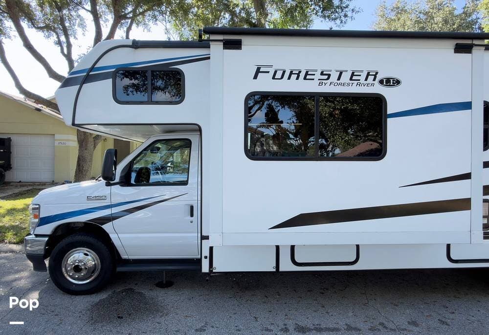 The 2023 Forester LE Series 3251DS is a Class C motorhome built by Forest River on a Ford E-450 chassis with a 7.3L Triton V8 engine