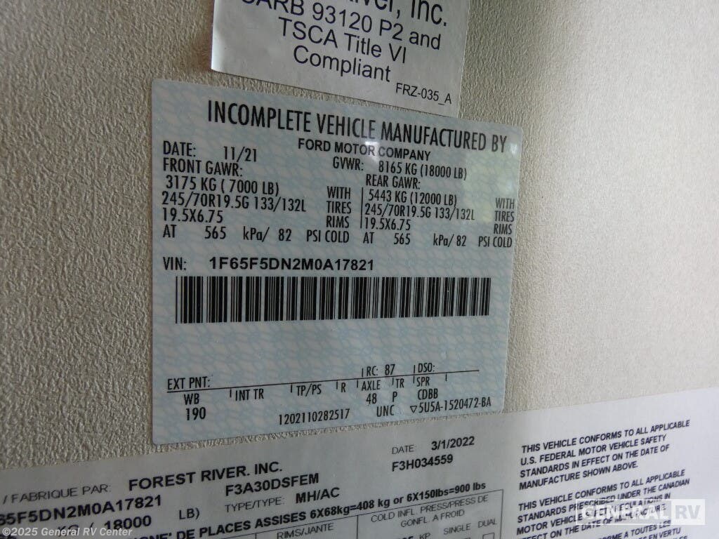 Forest River FR3 Class A gas motorhome 30DS highlights: Separated Bathroom 40" LED 12V TV Power Cab Bunk King-Size Bed Exterior 32" 12V TV Passenger Work Station Whether you travel with your spouse, grandkids or friends, this FR3 Class A gas motorhome allows you to travel in style with plenty of additional sleeping choices from the power overhead bunk to the furniture once they are set up a night. You can dine at the wrap-around booth dinette, relax on the hide-a-bed sofa, and make full meals in the kitchen which also includes a residential microwave and countertop extension. The separated bathroom allows someone to take a shower while another freshens up in the sink and toilet room, or maybe you decide to close this area off within the bedroom. Every night you can sleep like a king while watching the 32" LED 12V TV in the bedroom, and maybe you decided to add the washer/dryer option to keep everything clean while on the road. With each FR3 Class A gas motorhome by Forest River, you will find an easy-to-drive coach with a spacious interior allowing you to gather with friends and family with convenience and style found throughout! Each is built with vacuum-bonded construction, a one-piece fiberglass roof with extended rain spouts, a steel firewall and A-pillar extension, Bi-LED headlamps and lower LED fog lights, and grey Rotocast storage boxes with drains. Inside, you will enjoy black hardware, appliances, plumbing fixtures, and a glass shower door frame. You will also find a stainless steel kitchen sink with a bamboo cutting board and roll-up dryer, heavy-duty full-extension ball bearing drawer guides, dual-access dinette storage with doors, and nightstands with charging stations to keep your cellphones ready for whatever is next. Make your selection today!