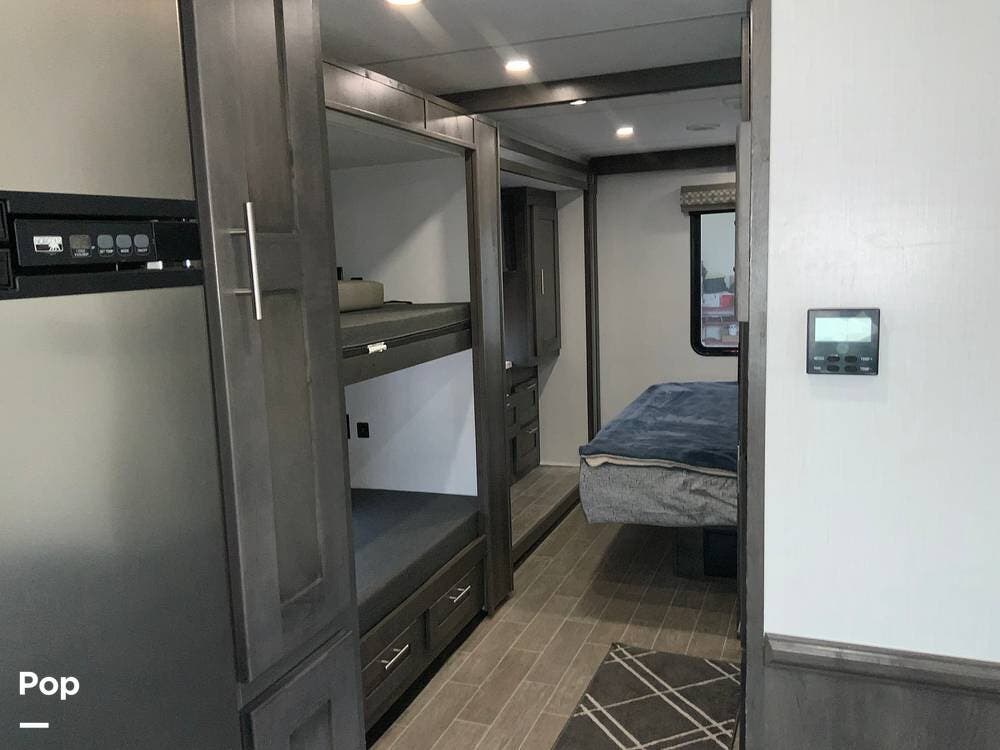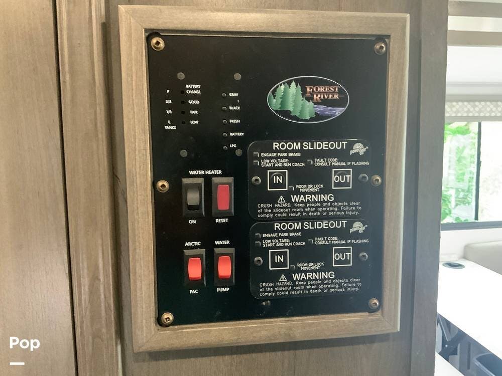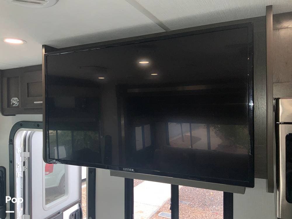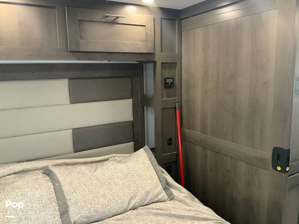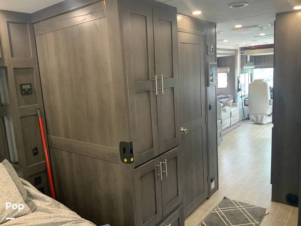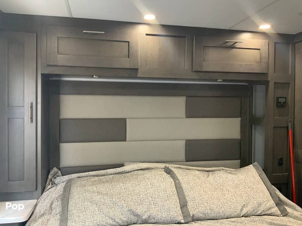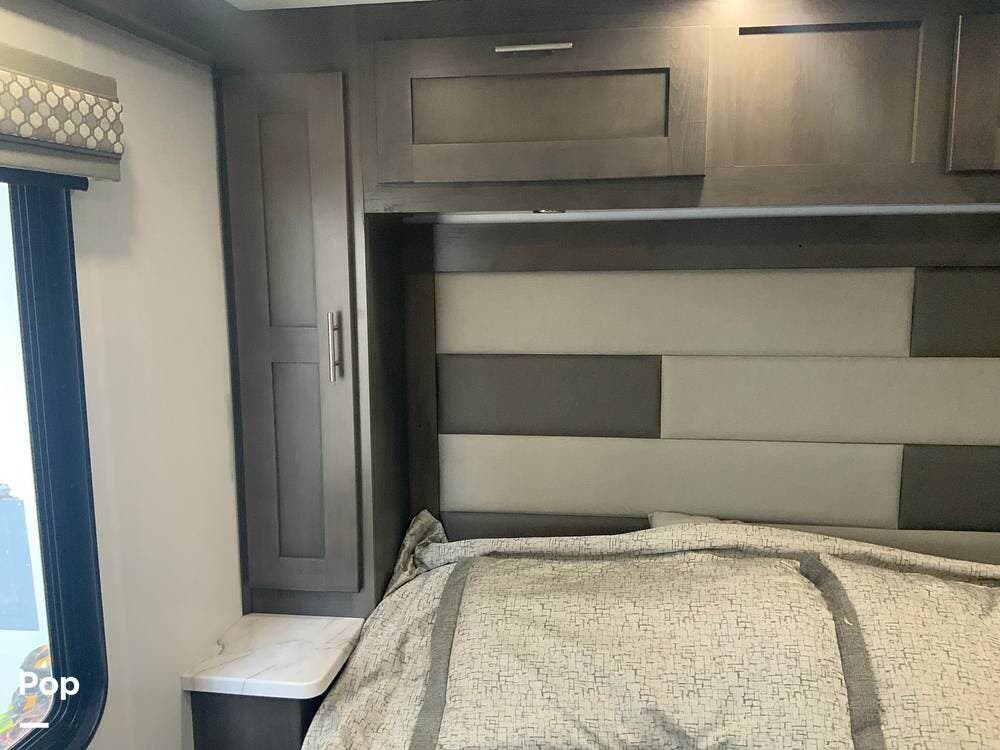 Another standout feature is the integrated technology and connectivity throughout the RV. The coach includes a touchscreen control panel for lighting, tank monitoring, and climate control, as well as a backup and side-view camera system for safer maneuvering.