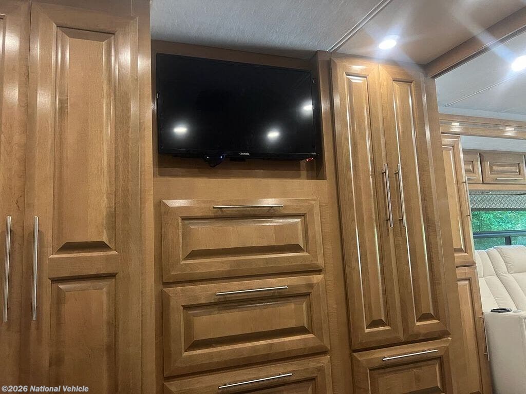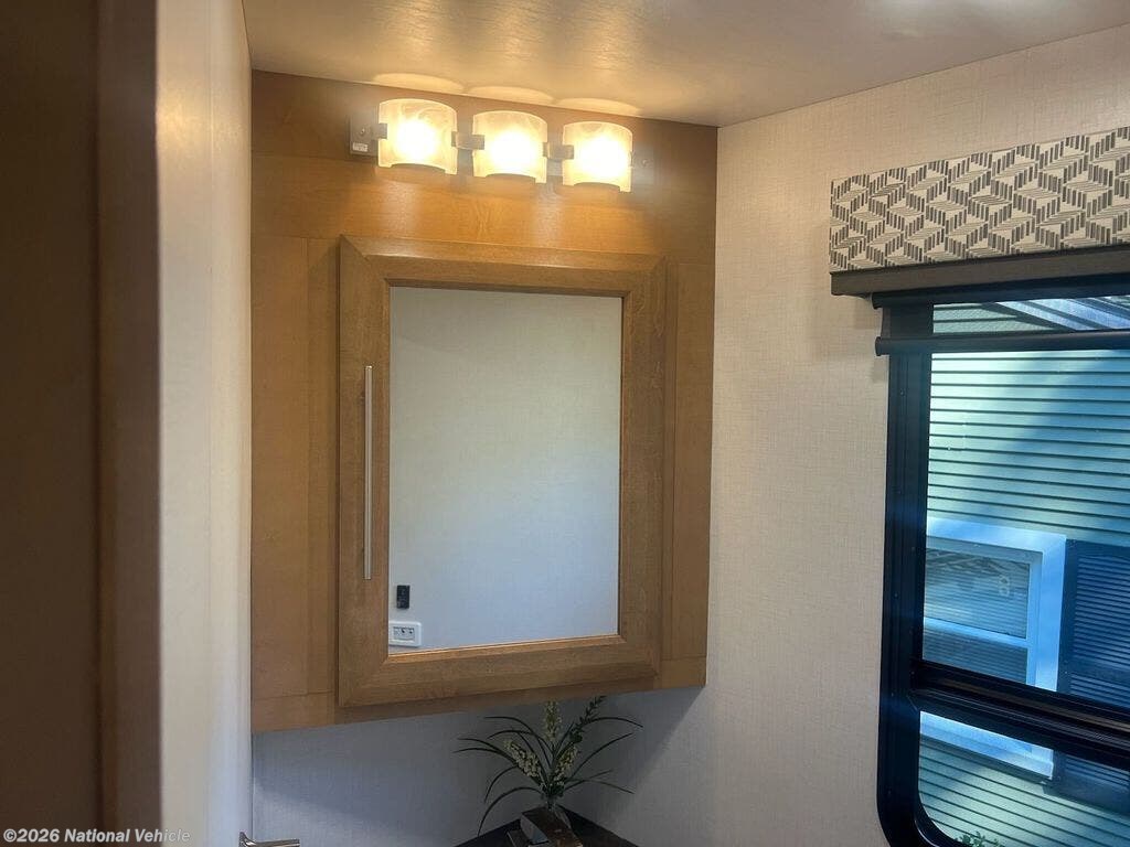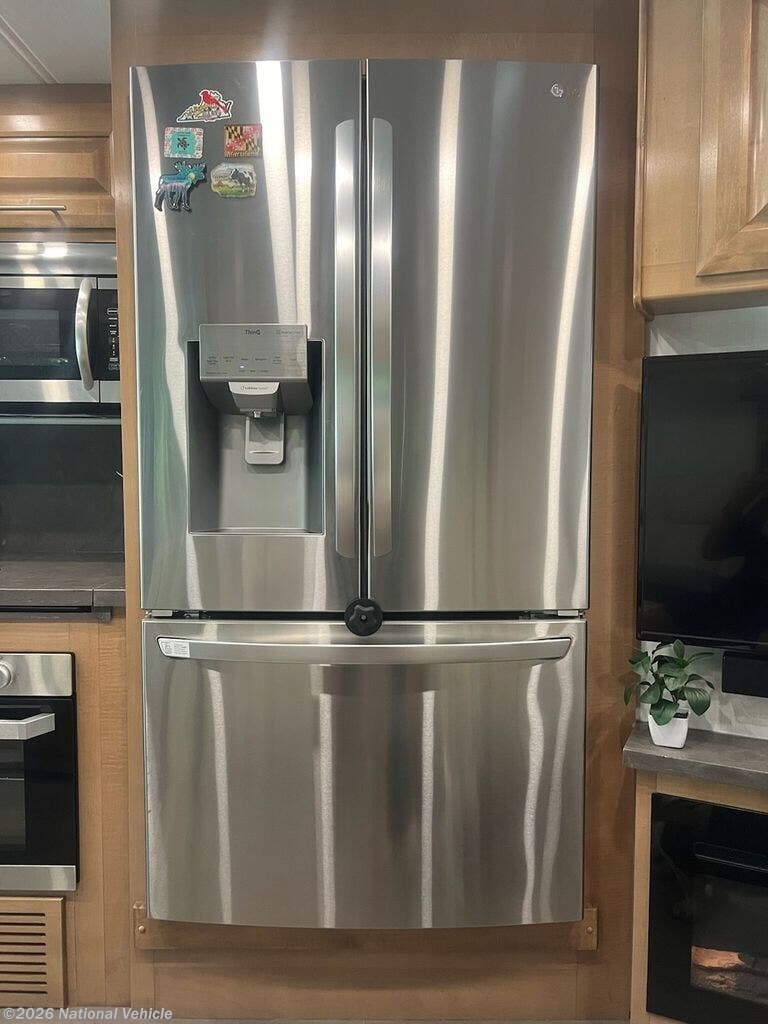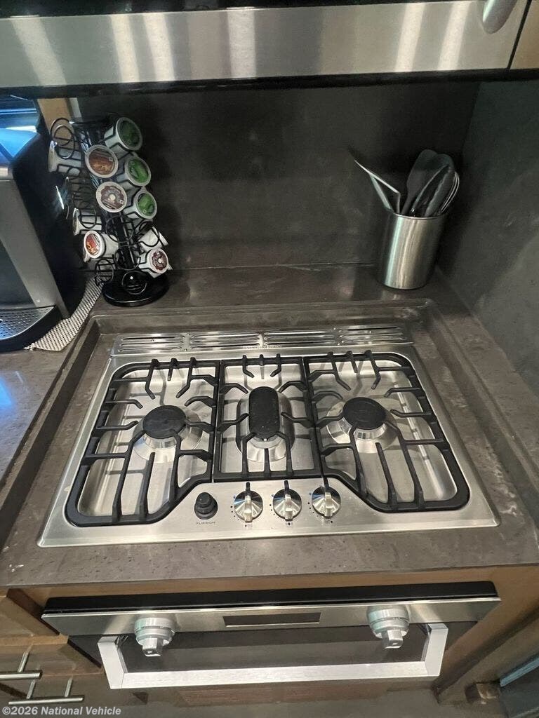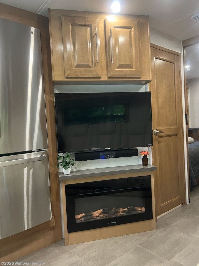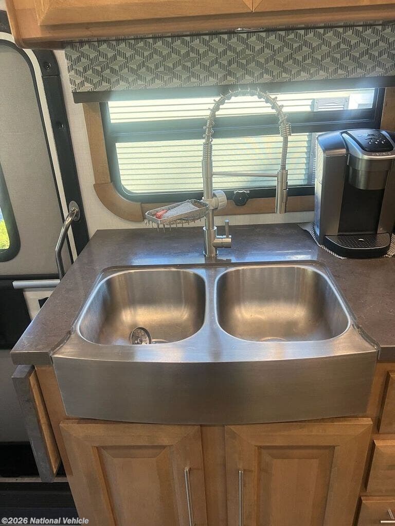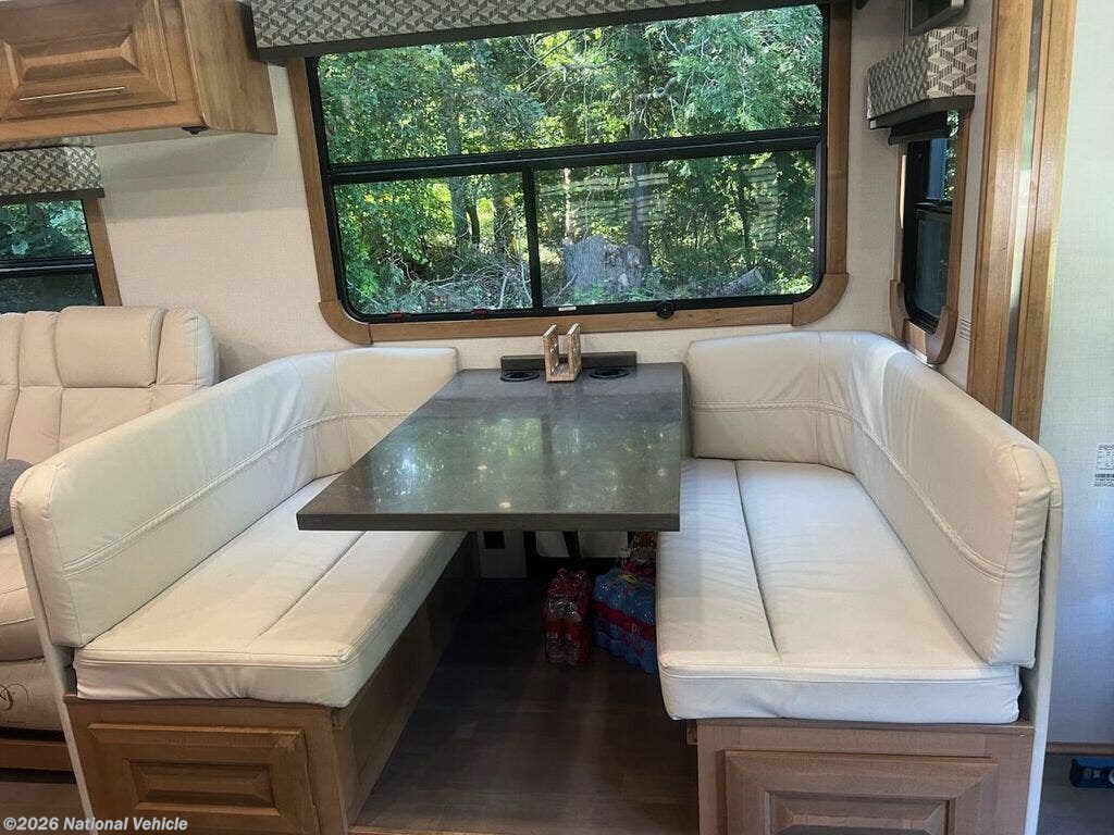 Comfort and convenience is found all throughout this motorhome! Starting with the full rear master bath that has a 42" x 30" shower with a seat and a dual sink vanity, plus it leads into the private bedroom. Inside the bedroom is a 72" x 80" king bed slide with overhead cabinets across from a dresser with overhead cabinets and a 32" LED TV, a wardrobe, and another wardrobe that is prepped to add an optional stackable washer and dryer. The half bathroom is conveniently near the fully equipped kitchen so you can get back to creating your best home cooked meals fast. Relax in true comfort each night by either playing games at the booth dinette or on the theater seating that comes with power recline, heat, and massage!
