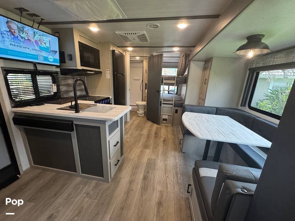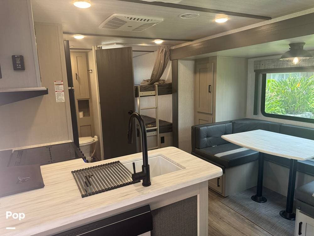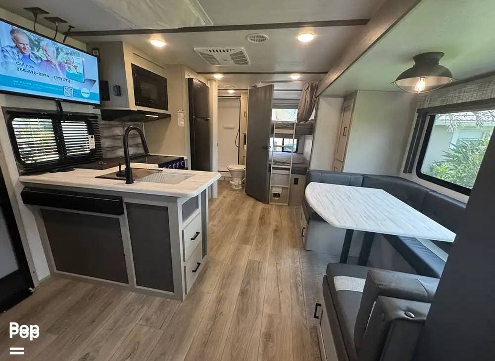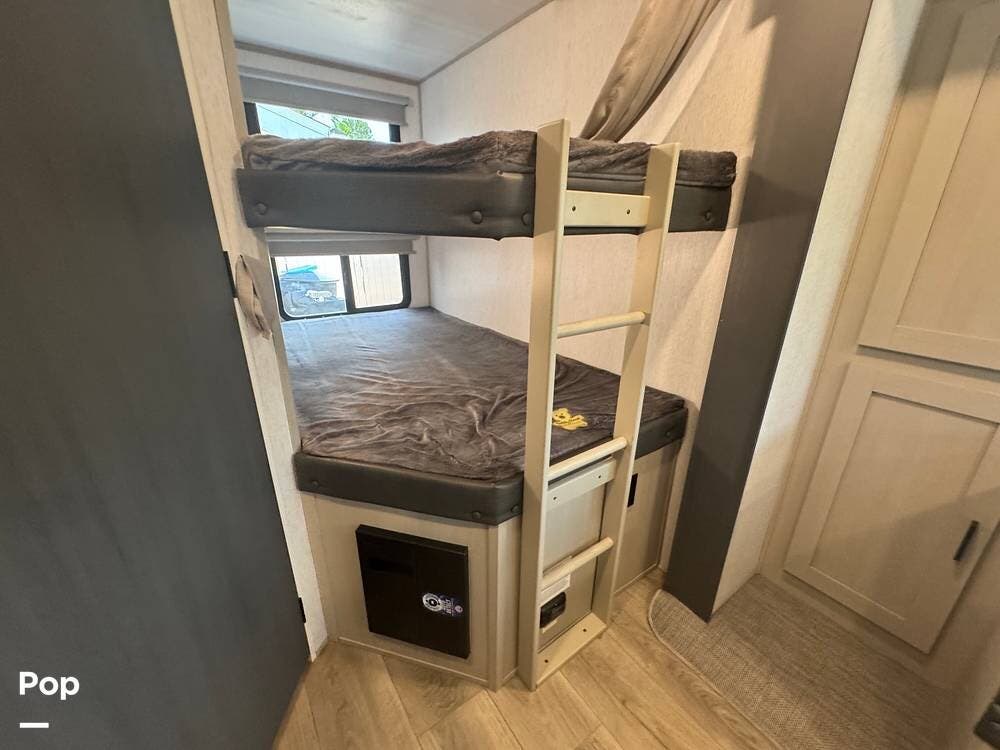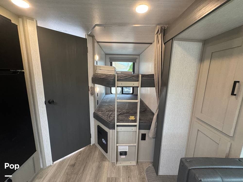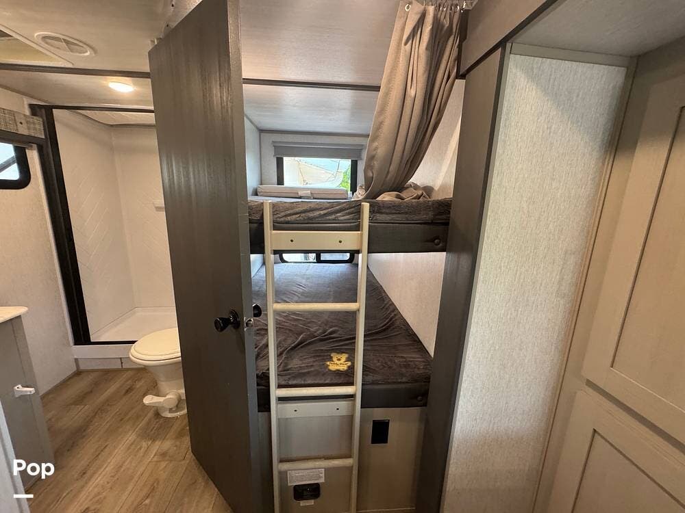 Clean and Well Maintained 2023 Wildwood Heritage 20BHHL Bunkhouse Model. Upgrades include 15K BTU AC, Solar, Soft/Start and Much More!