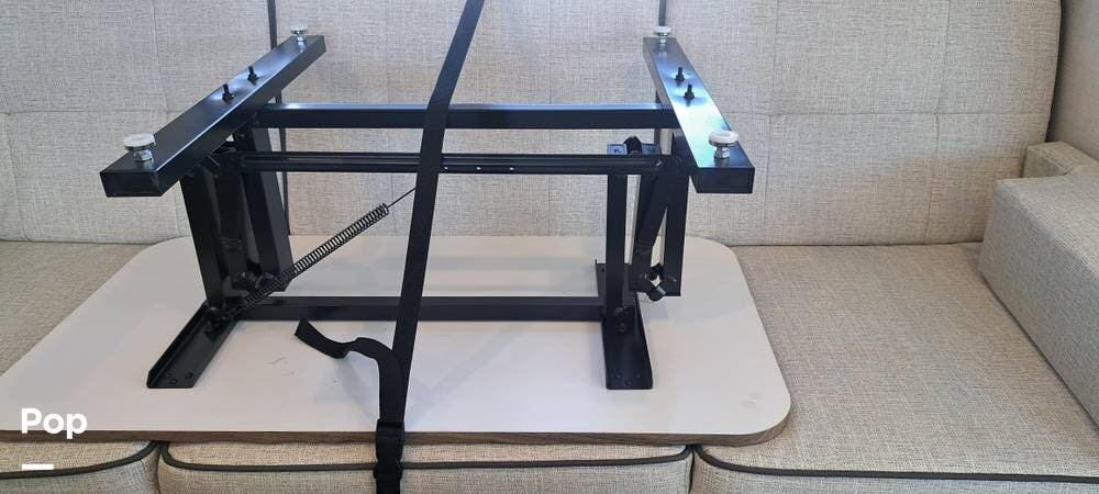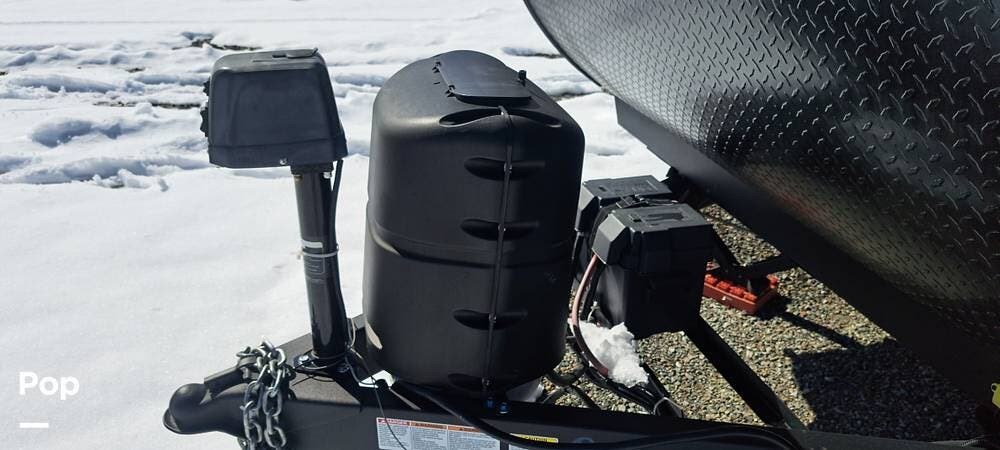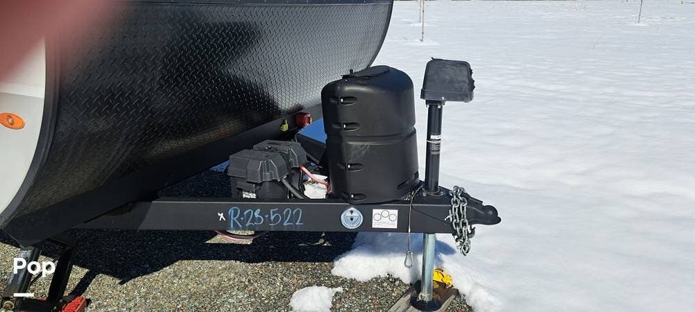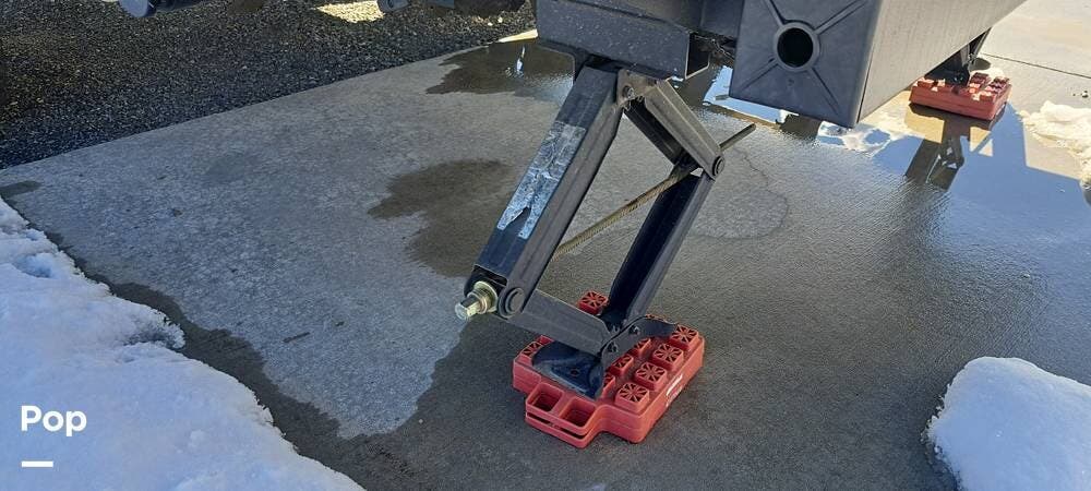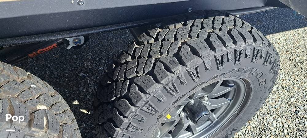 There's a power hitch jack, roof access ladder, 16-foot awning, several stabilizing jacks, a 200-watt solar panel, and 2000 inverter.