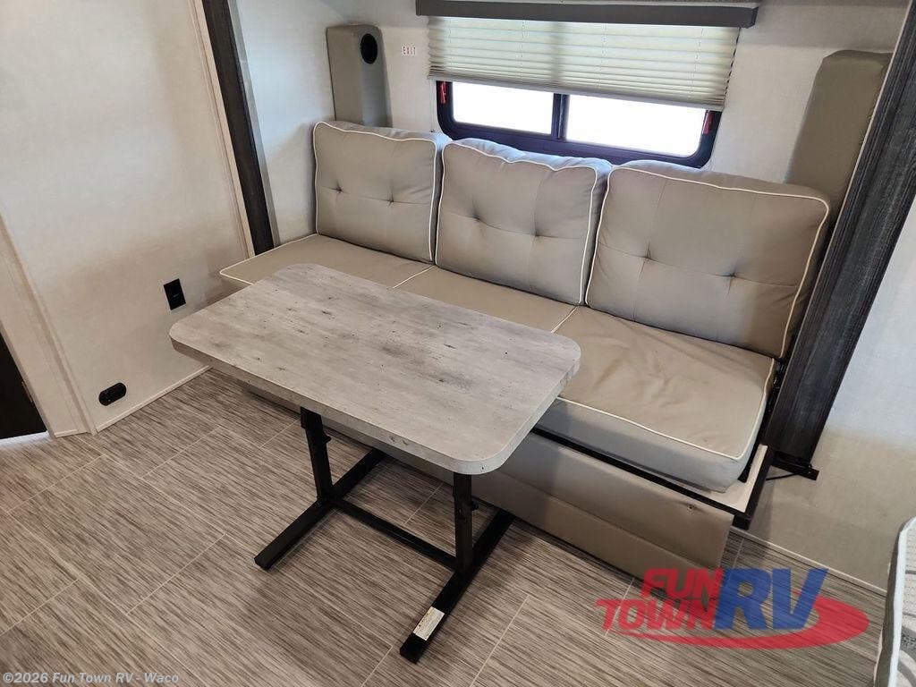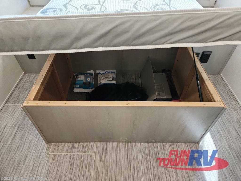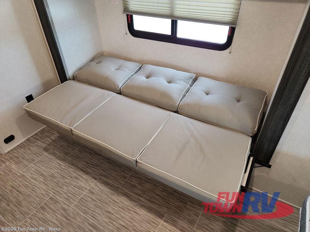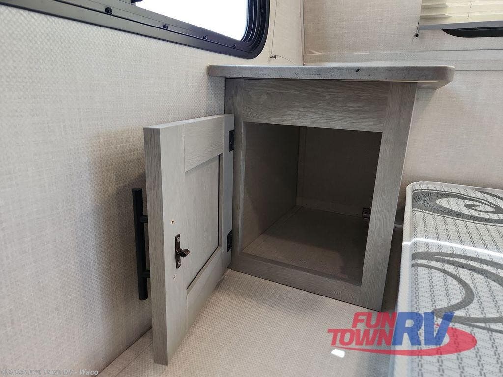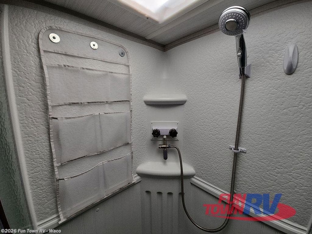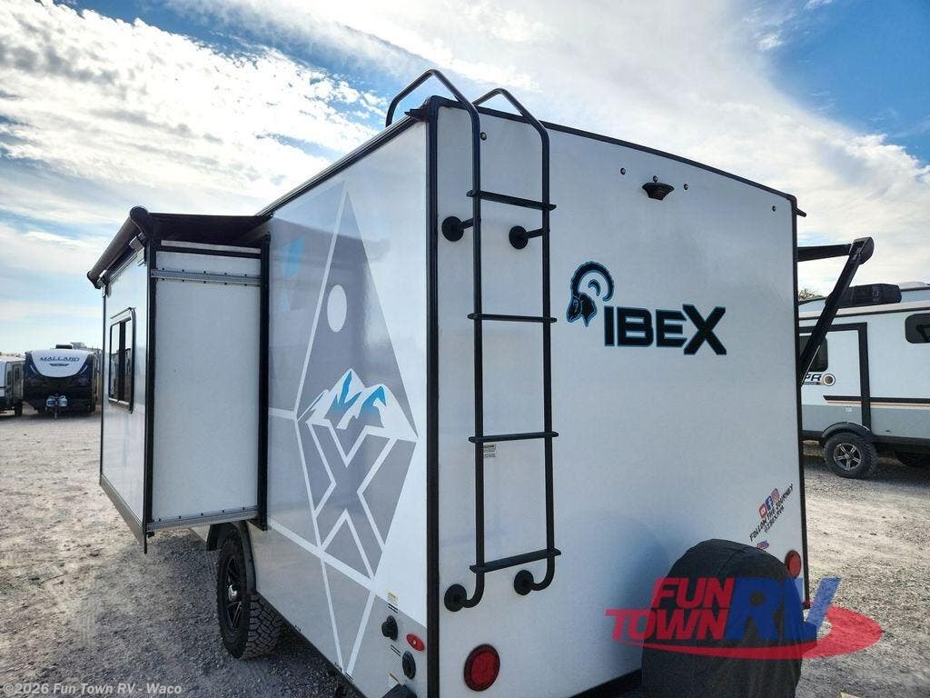 Searching for a smaller trailer that is easy-to-tow, packed with features and can easily be stored at your home? This IBEX has a 23' exterior length, a residential queen bed up front with super storage underneath, a slide out sofa with a table to relax and dine at, and a rear corner full bathroom with a radius shower. You can cook for yourself with full kitchen amenities plus there is storage for your food in the pantry and refrigerator. Along the exterior the 14' awning offers a covered outdoor living area, the pass-through compartment offers a place to stow the larger camping gear, and you might like to add the optional Unplugged Package that comes with premium lithium-ion batteries, an easy view control panel, a high efficiency A/C, and more!