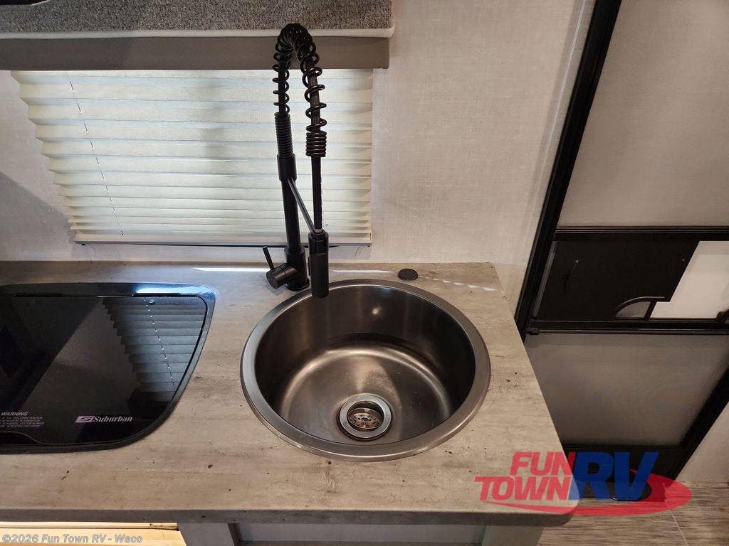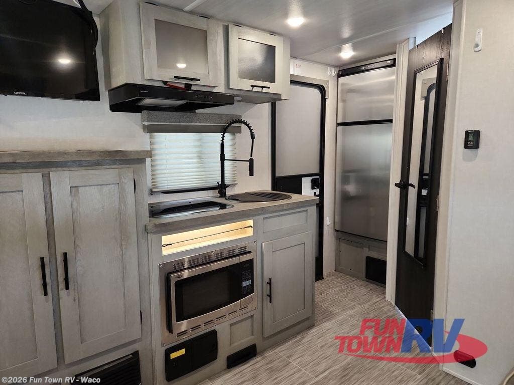 With any IBEX travel trailer or toy hauler by Forest River, the interior offers stainless steel appliances for style, seamless countertops for durability and easy care, and a largest-in-class refrigerator for more cold storage. The Azdel construction and PVC roof will help extend the life of your unit, and the all terrain tires and increased ground clearance means you can go more places. A JBL wireless Bluetooth audio system also comes standard so you can listen to your favorite tunes, along with Rhino-Rack RTV tracks to keep your gear secure!