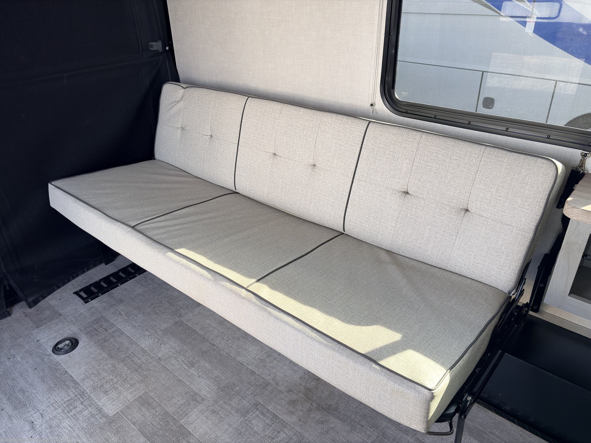 Fold and Tumble Sofa, Overhead Cabinetry, Queen Bed